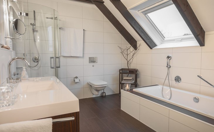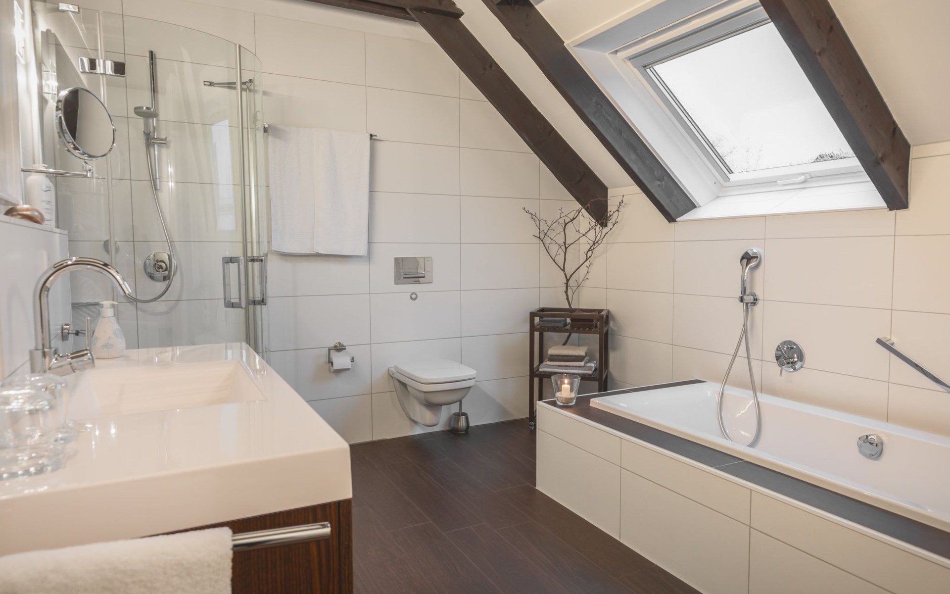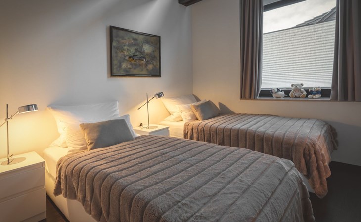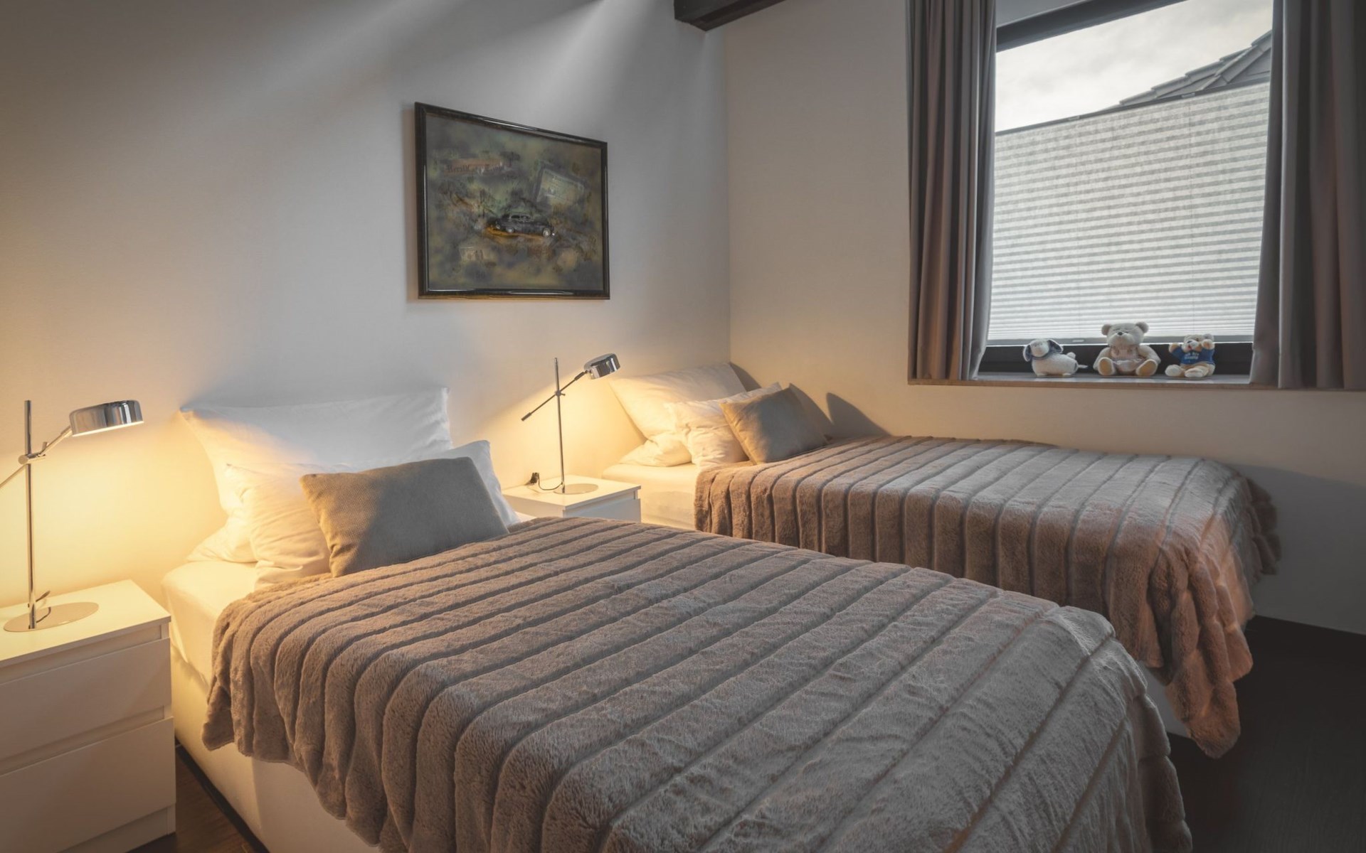 Im Inneren erwartet Sie eine spitzenmäßige Ausstattung, die keine Wünsche offen lässt. Die Küche präsentiert sich in strahlendem Weiß mit Hochglanzoberflächen und ist mit allem ausgestattet, was Sie zum Zubereiten leckerer Menüs benötigen: von Geschirr und Besteck über vielfältige Kaffeezubereitungsmöglichkeiten bis hin zu modernen Geräten wie Spülmaschine, Ceranfeld, Backofen und Mikrowelle. Direkt nebenan sorgen Waschmaschine, Trockner sowie Bügeleisen und -brett für zusätzlichen Komfort. Der Wohnbereich mit seiner weißen Ledercouch, einem Ess- und Stehtisch samt Stühlen und Hockern sowie einer erstklassigen Unterhaltungsausstattung lädt zum Verweilen ein. Die drei Schlafzimmer bieten mit ihren hochwertigen Boxspringbetten, schicken Einrichtungsdetails und moderner Technik einen exklusiven Rückzugsort.