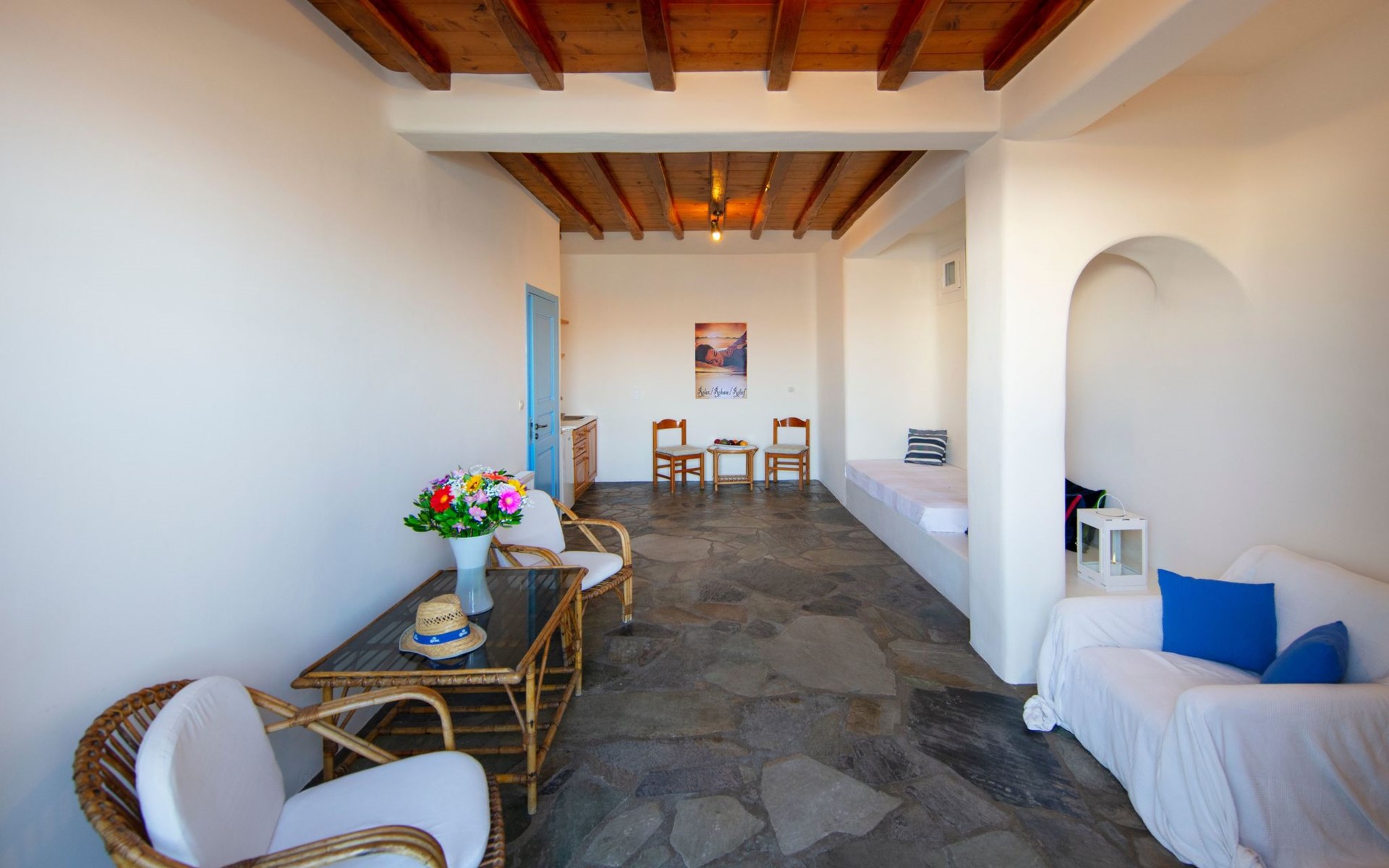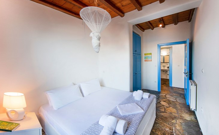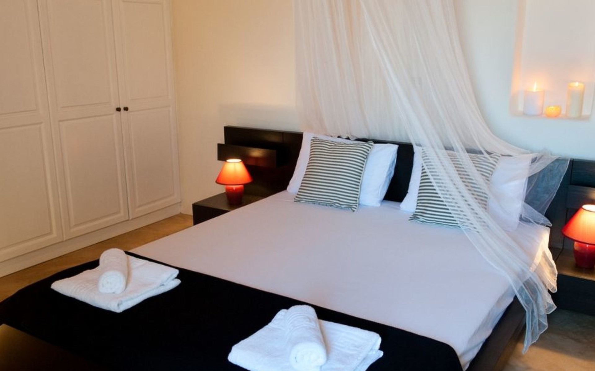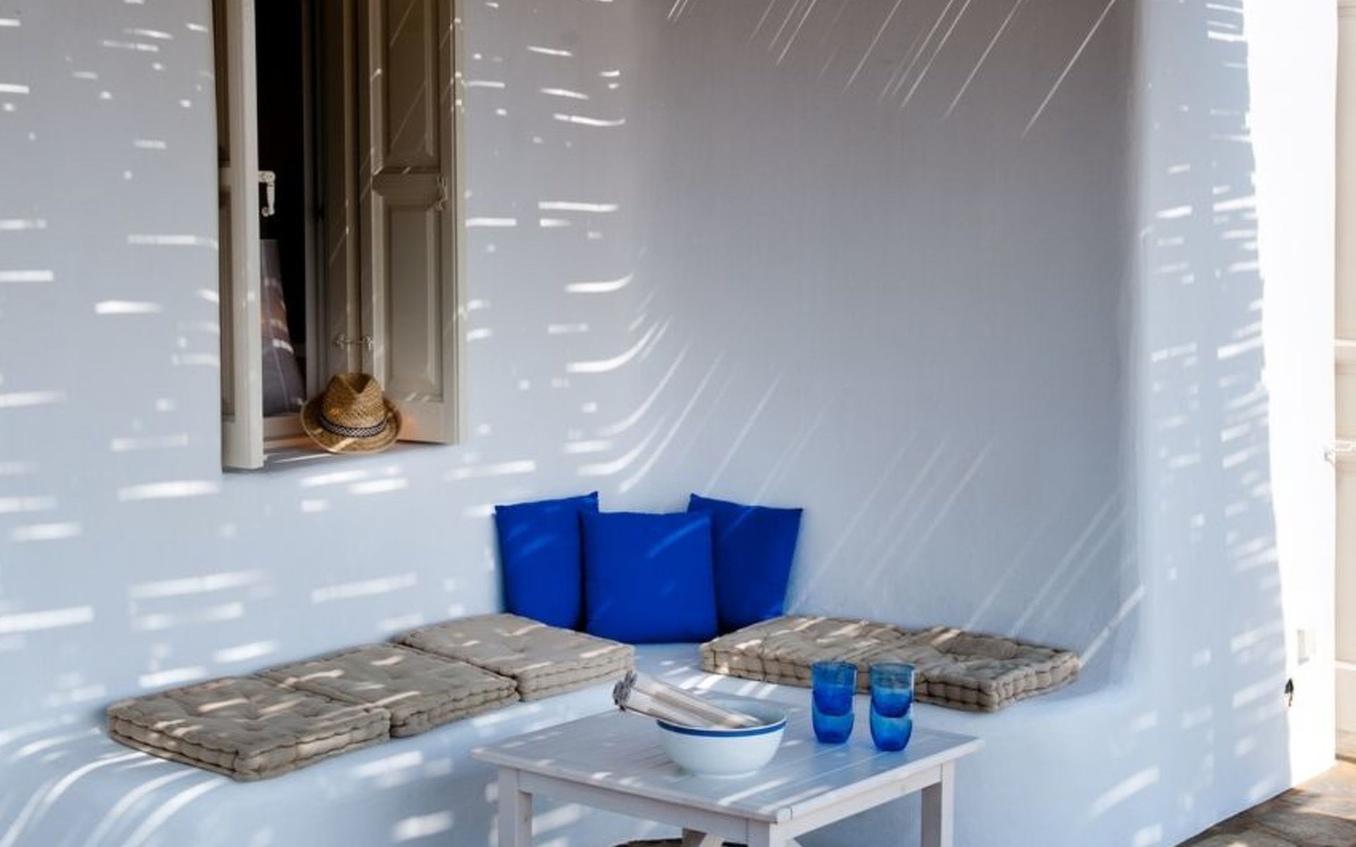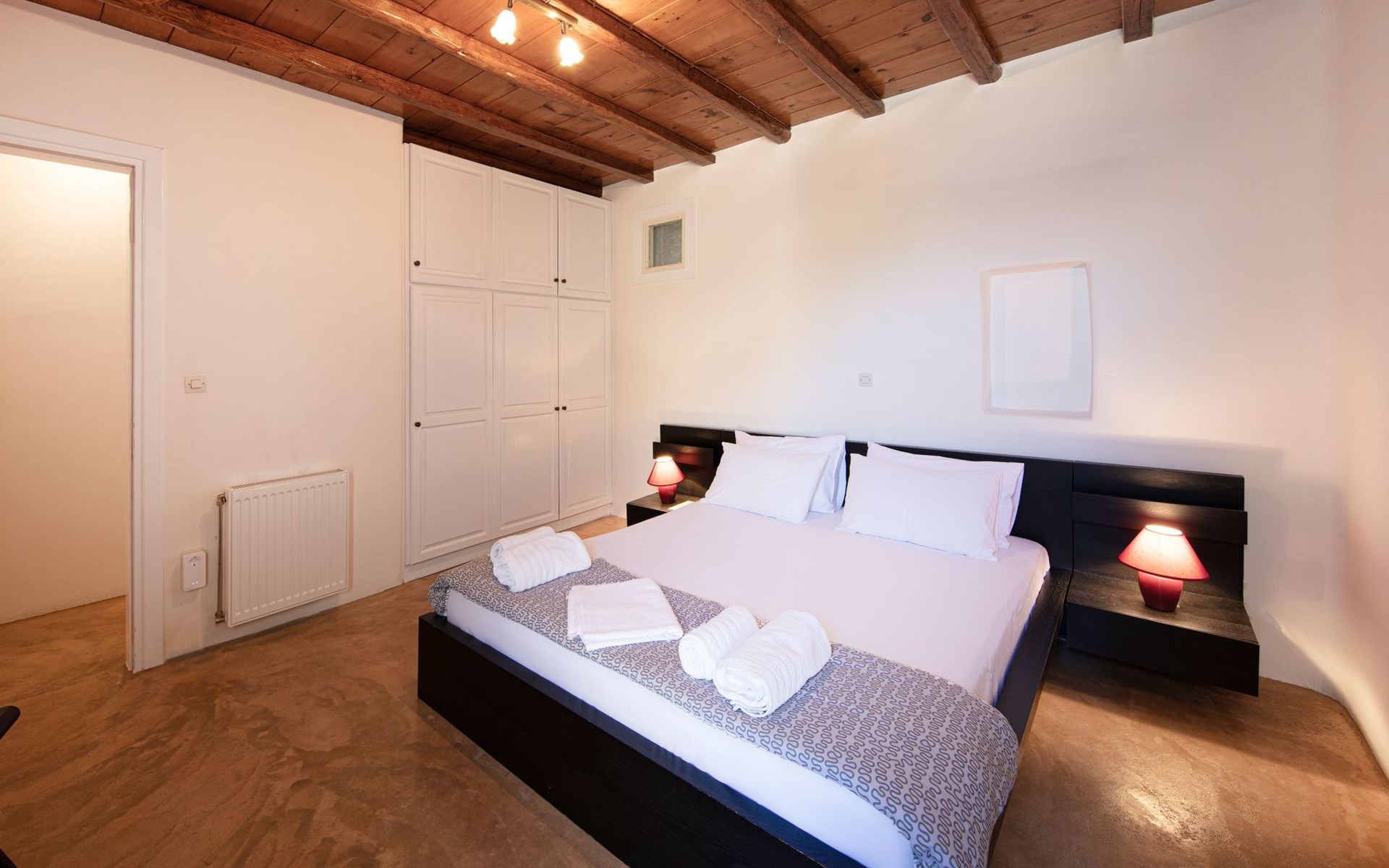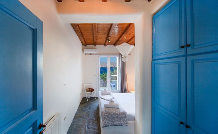 Der Stil dieser Villa ist exquisit: die glattkantige Architektur verleiht dem Äußeren des Gebäudes ein reines Aussehen, während das Innere nüchtern und mit Flair verschönert ist. Das Innere des Hauses ist komplett eingerichtet und besteht aus drei Ebenen. Auf der mittleren Ebene befinden sich ein sehr komfortables Wohnzimmer und eine große Küche mit offenem, informellem Esszimmer, sehr funktionell und schön gestaltet. Dort befindet sich auch das Hauptschlafzimmer mit seinem Badezimmer. Auf der oberen Ebene befinden sich drei Schlafzimmer (zwei Schlafzimmer mit Doppelbett und ein Schlafzimmer mit zwei Einzelbetten), die hell und geräumig sind und einen spektakulären Blick auf das Meer haben. Die untere Ebene der Villa hat einen separaten Eingang und umfasst ein Schlafzimmer mit einem Stein-Doppelbett, ein Schlafzimmer mit einem halben Doppelbett, ein Wohnzimmer mit einem Stein-Einzel-Bett, eine kleine Küche und ein Badezimmer.