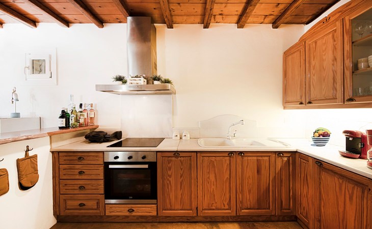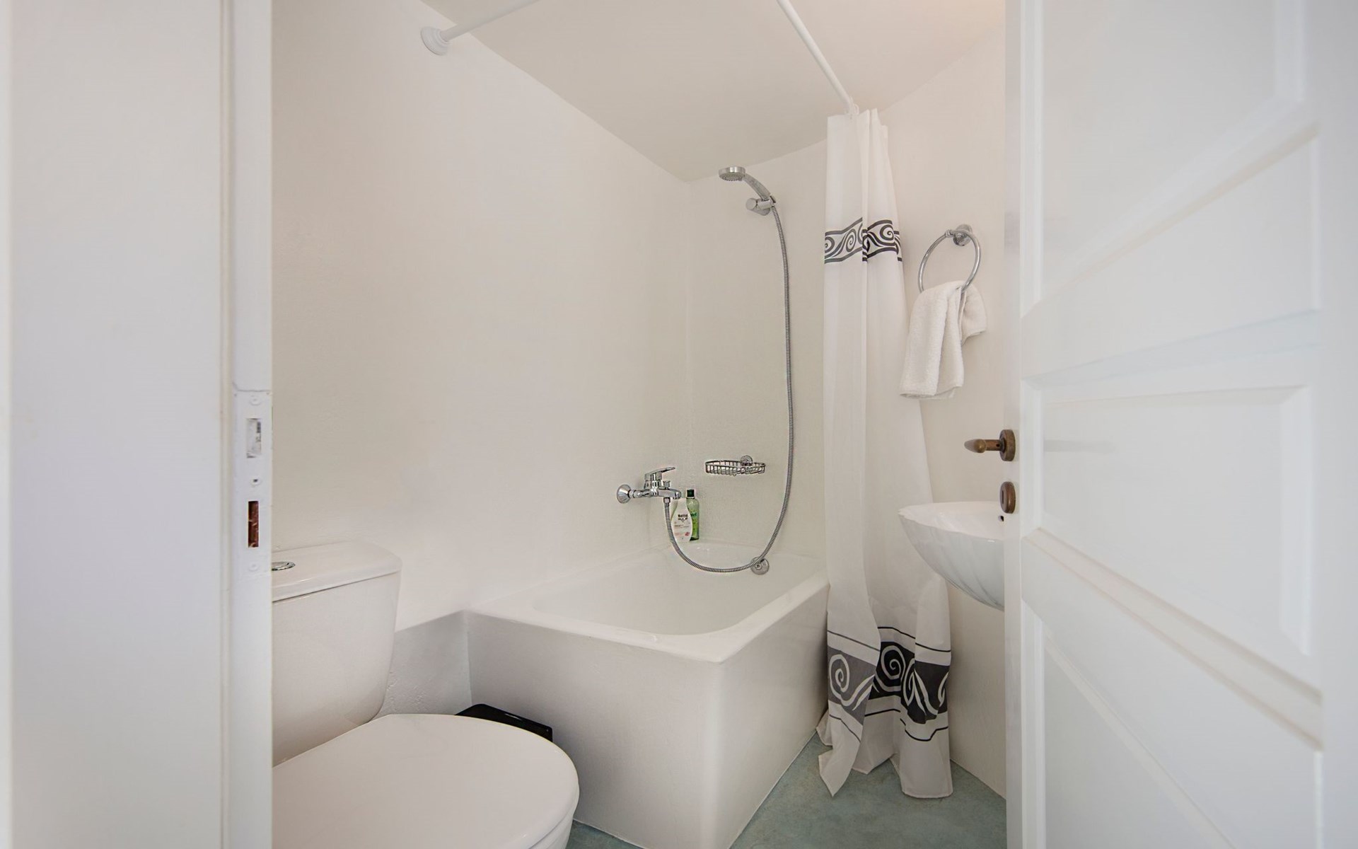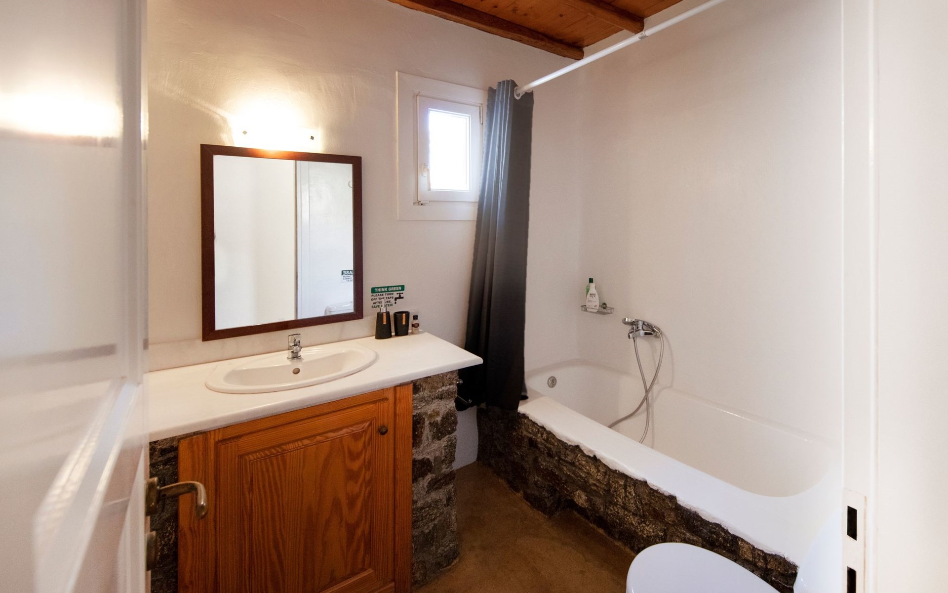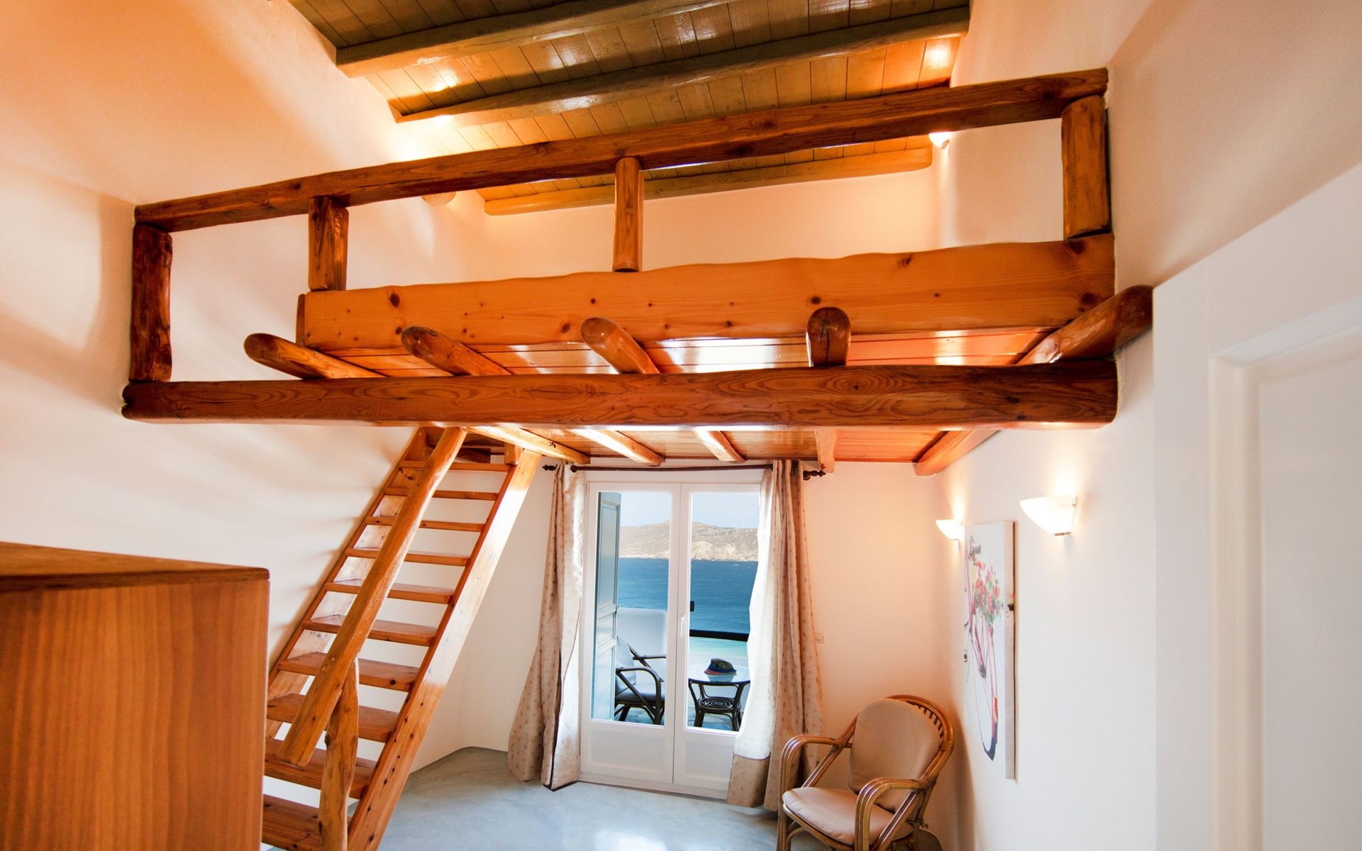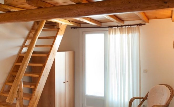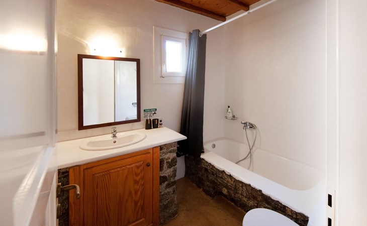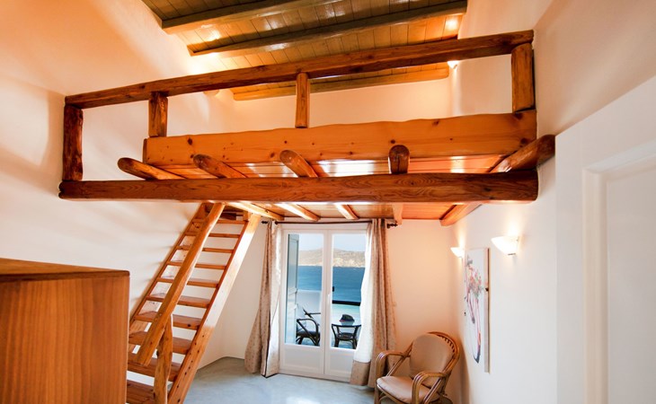 Der Stil dieser Villa ist exquisit: die glattkantige Architektur verleiht dem Äußeren des Gebäudes ein reines Aussehen, während das Innere nüchtern und mit Flair verschönert ist. Das Innere des Hauses ist komplett eingerichtet und besteht aus drei Ebenen. Auf der mittleren Ebene befinden sich ein sehr komfortables Wohnzimmer und eine große Küche mit offenem, informellem Esszimmer, sehr funktionell und schön gestaltet. Dort befindet sich auch das Hauptschlafzimmer mit seinem Badezimmer. Auf der oberen Ebene befinden sich drei Schlafzimmer (zwei Schlafzimmer mit Doppelbett und ein Schlafzimmer mit zwei Einzelbetten), die hell und geräumig sind und einen spektakulären Blick auf das Meer haben. Die untere Ebene der Villa hat einen separaten Eingang und umfasst ein Schlafzimmer mit einem Stein-Doppelbett, ein Schlafzimmer mit einem halben Doppelbett, ein Wohnzimmer mit einem Stein-Einzel-Bett, eine kleine Küche und ein Badezimmer.