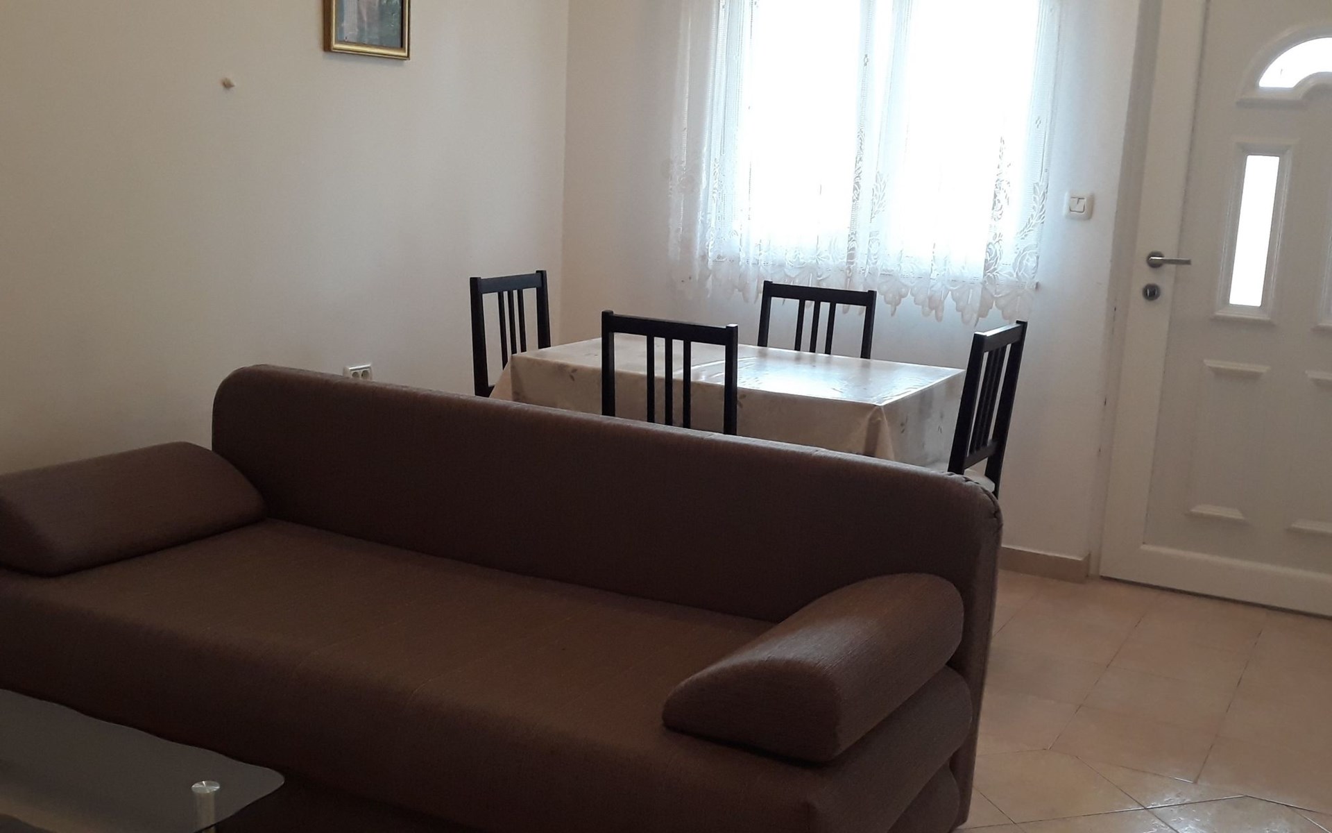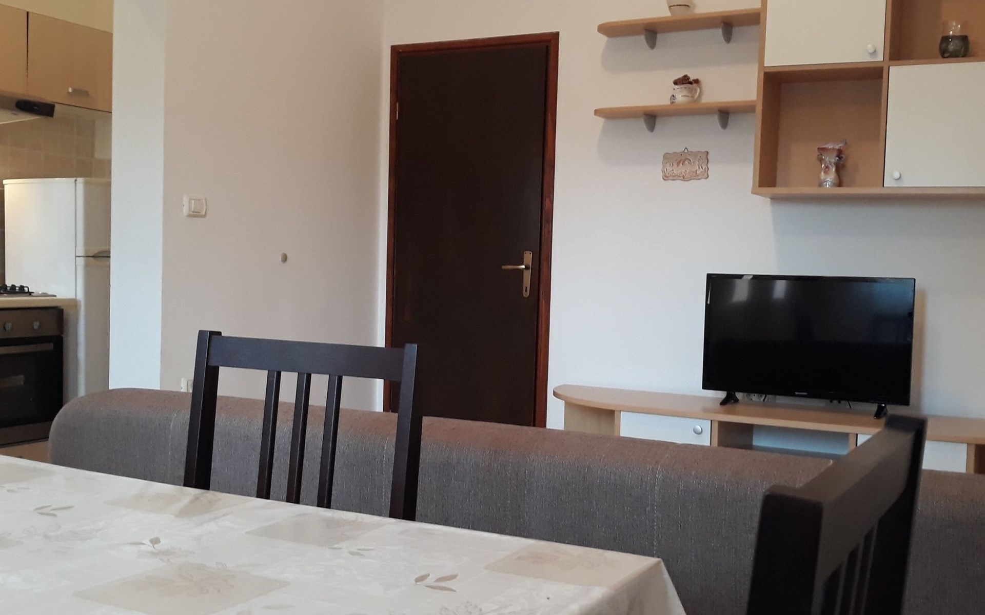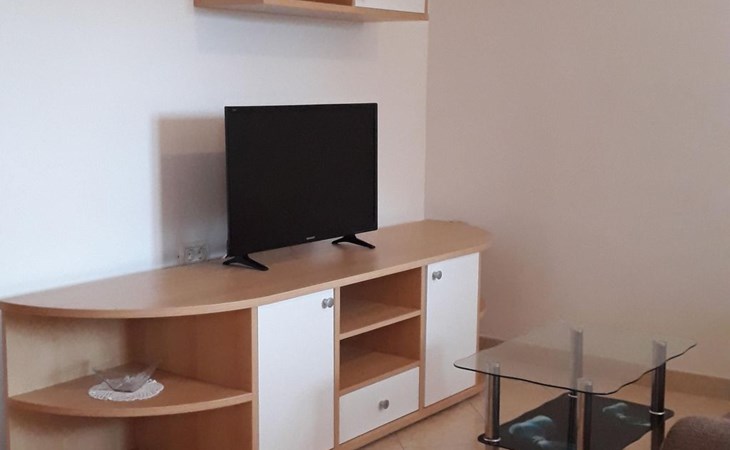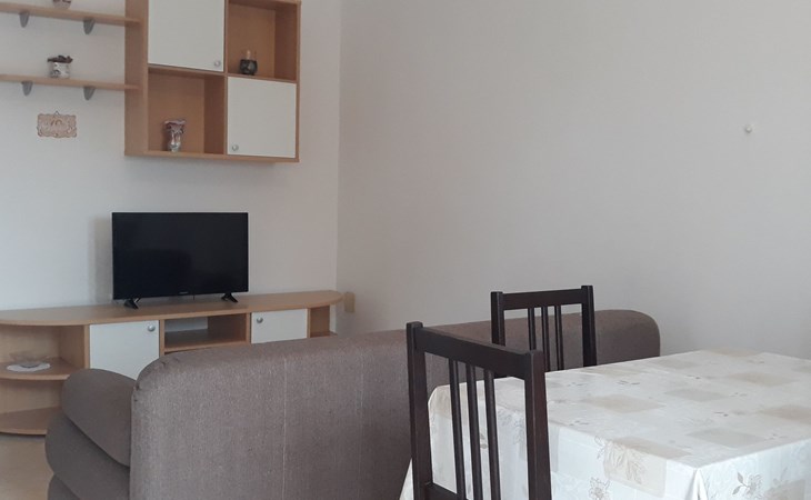 Das Wohnzimmer hat ein Schlafsofa (155 x 200 cm) für maximal zwei Personen.