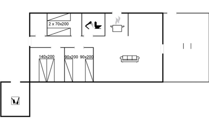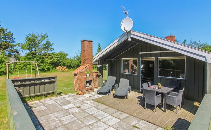 Einfamilienhaus, Baujahr 1979. 800 m vom Meer. Zur Alleinbenutzung: naturbelassenes Grundstück 1'800 m2. Terrasse (15 m2), Kinderspielplatz (Schaukel). Im Hause: Trampolin, Waschmaschine, Wäschetrockner. Lebensmittelgeschäft 300 m. Der Besitzer akzeptiert keine Jugendgruppen.