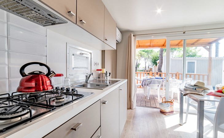 Grosses, kinderfreundliches Feriendorf "Camping Village Cavallino". 260 Häuser im Ferienresort. Im Ortsteil, 4.3 km vom Zentrum von Cavallino-Treporti, 12 km vom Zentrum von Lido di Jesolo, 7 km vom Zentrum von Punta Sabbioni (boat to Venice), 20 m vom Meer, direkter Zugang zum Strand. Zur Mitbenutzung: Grundstück 10 ha mit Bäumen, 3 Schwimmbäder (saisonale Verfügbarkeit: 23.Mai. - 15.Sep.). Kinderbecken, Rutschbahn, Aussendusche, Sprudelbad, Tischtennis, Kinderspielplatz. In der Anlage: Empfang, Restaurant, Wireless LAN, Sauna (extra). Massage (extra). Wellnessbereich zur Mitbenutzung (extra) Tischtennis, Einkaufsmöglichkeit, Waschmaschine (zur Mitbenutzung, extra), Fahrradverleih. Frühstück Vollpension Halbpension möglich (extra). Supermarkt 3.3 km, Bushaltestelle 900 m, Sandstrand 20 m. Bitte beachten: Animation. Geeignet für Familien. Badekappenpflicht. Während der Winter-Öffnung der Ferienanlage (06.12.24-31.03.2025) ist nur der Wellness-Bereich geöffnet (im März nur am Wochenende). Nächstes Restaurant im Hotel gegenüber (selber Besitzer, Restaurant Sabbioni im Green Park Hotel).