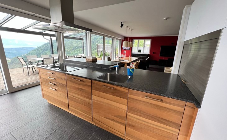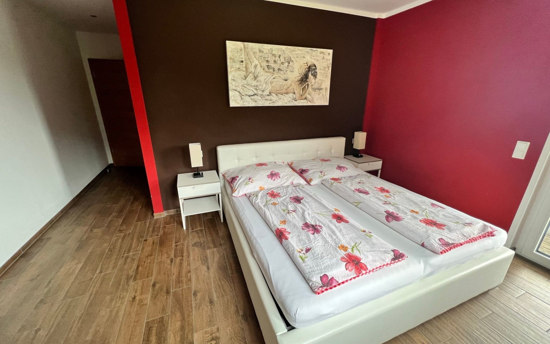 Mit circa 300m² Wohnfläche, verteilt auf zwei separaten, aber verbundenen Appartements, bietet diese Ferienunterkunft Platz für bis zu 12 Personen. Sie besteht insgesamt aus sechs Schlafzimmern, zwei offenen Wohnräumen mit jeweiliger Kochinsel, drei Badezimmern und zwei Gäste-WCs. Fünf Schlafzimmer verfügen über je ein Doppelbett (180x200cm), ein Schlafzimmer ist mit einem Ausziehbett (180x200cm) ausgestattet, welches sich ebenfalls für zwei Personen eignet. Alle drei Badezimmer verfügen über eine Dusche, ein Waschbecken und einen Föhn, wobei eines zusätzlich mit einer Toilette ausgestattet ist. Zwei Badezimmer verfügen über keine Toilette, diese befinden sich aber in den direkt neben den Badezimmern liegenden Gäste-WCs. Es stehen Ihnen zwei Waschmaschinen, die sich jeweils in einem Bad befinden, zur Verfügung. Die Wohnräume sind jeweils mit einem Fernseher, einer Couch und weiteren Sitzgelegenheiten ausgestattet. Zudem befinden sich je ein Kamin mit Sichtfenster in den Wohnräumen der einzelnen Appartements, welche Sie sehr gerne nutzen dürfen. Das dafür zu benötigende Brennholz wird Ihnen kostenlos zur Verfügung gestellt. Die jeweiligen offenen Wohnräume beinhalten zudem Kochinseln, welche unter anderem mit je einem Indukutionsherd, einem Backofen, einer Mikrowelle, einem Kühl- und Tiefkühlschrank, einer Spülmaschine, einem Smoothiemaker sowie einer Kapsel Kaffeemaschine, Filtermaschine und Wasserkocher ausgestattet sind. Jedes Zimmer verfügt über eine Fußbodenheizung mit Temperatursteuerung.