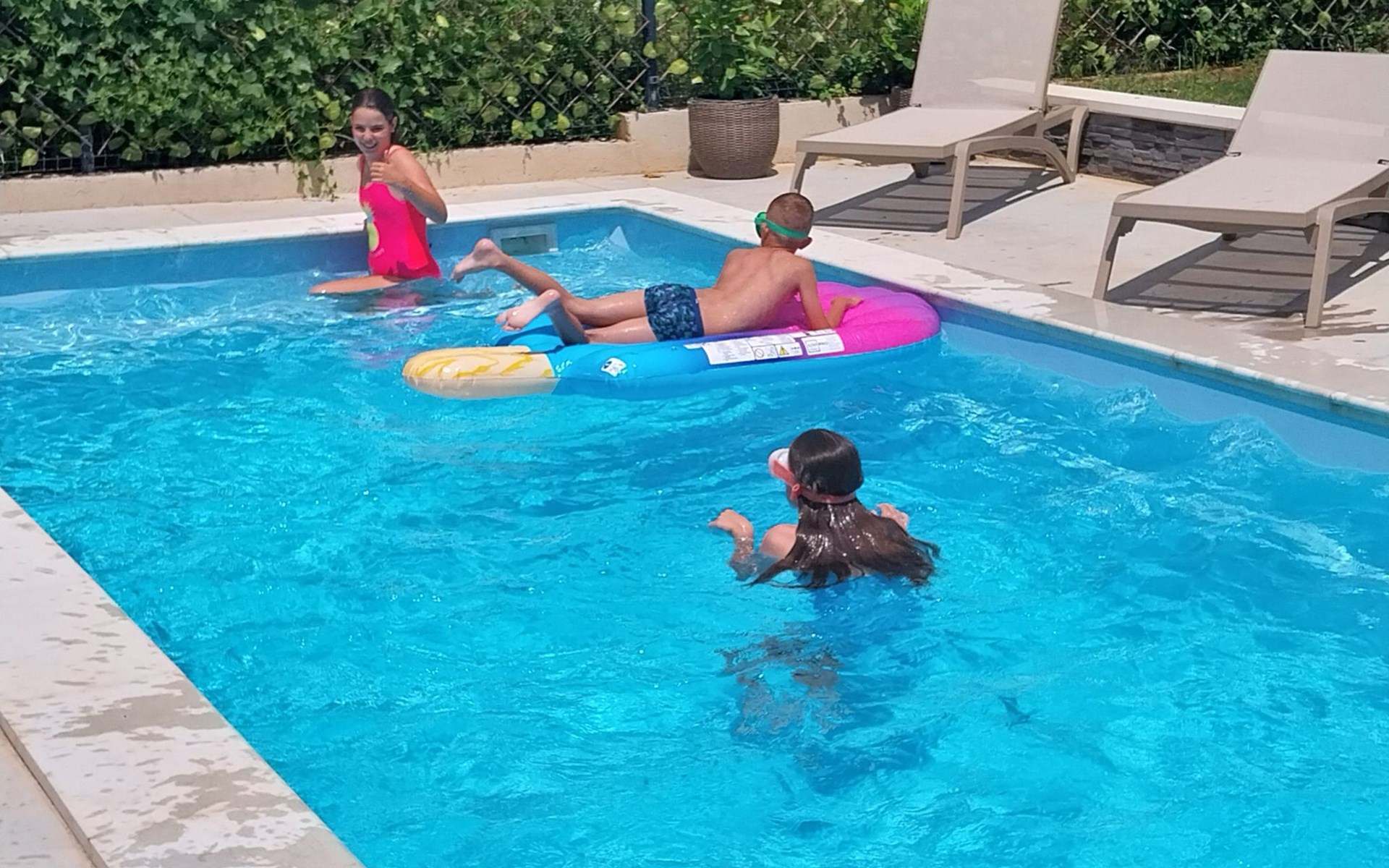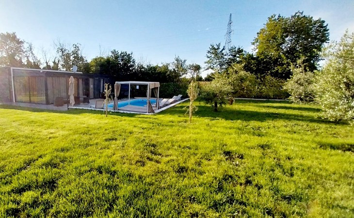 Vom Wohnzimmer aus gelangen Sie auf eine geräumige Terrasse, auf der Sie einen Tisch für geselliges Beisammensein und Essen, bequeme Liegestühle zum Entspannen und einen erfrischenden Pool vorfinden. Im Innenbereich befinden sich ein Jacuzzi und eine Massageliege, die zu Ihrer Entspannung und Ihrem Vergnügen beitragen.