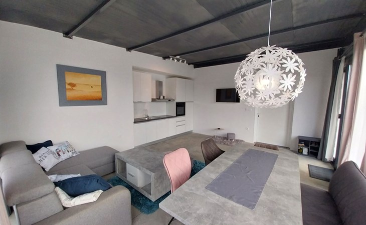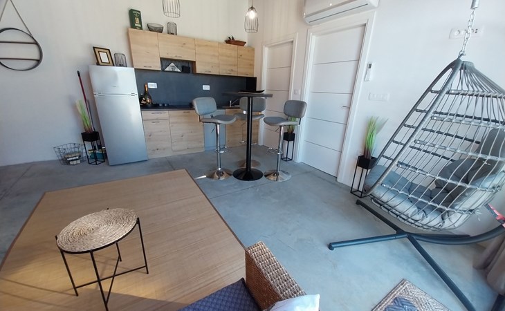 Die erste Wohneinheit verfügt über ein geräumiges Wohnzimmer, das mit einer voll ausgestatteten Küche und einem Essbereich verbunden ist und direkten Zugang zu einer überdachten Terrasse hat, die zum Entspannen im Freien einlädt. In diesem Bereich befinden sich drei elegant eingerichtete Schlafzimmer und ein modernes Bad.