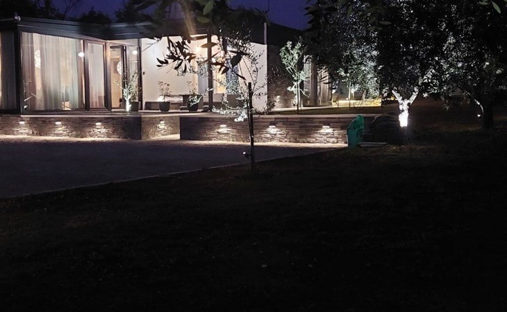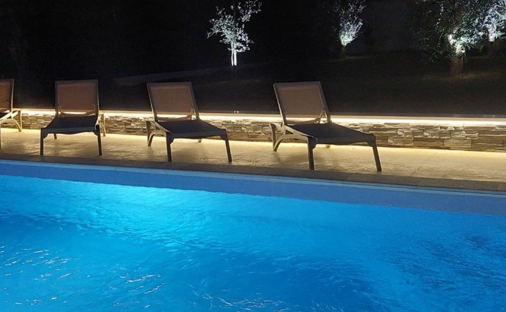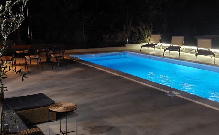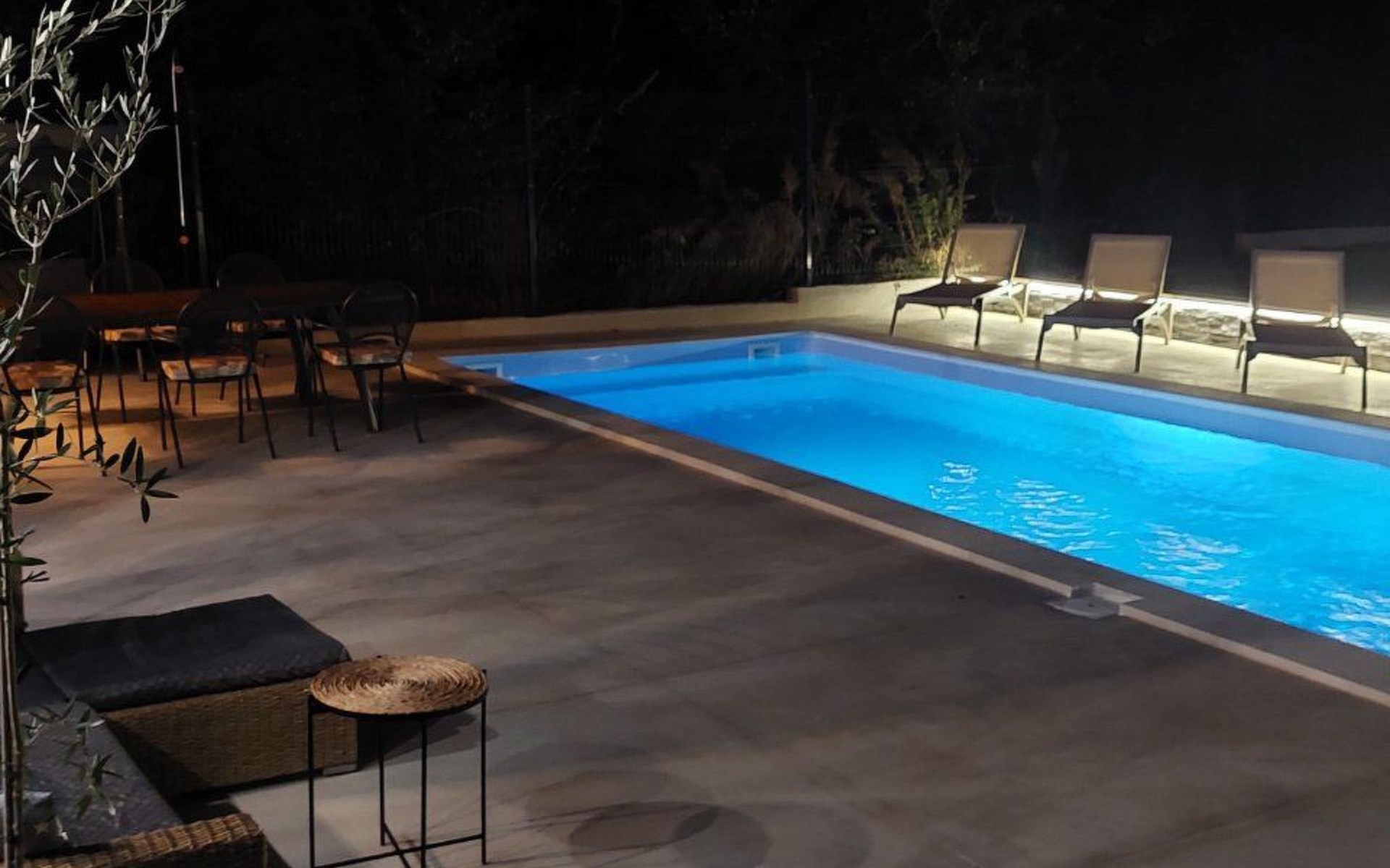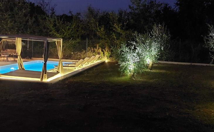 Wenn die Sonne langsam untergeht, genießen Sie die Ruhe des Gartens, in dem es nach mediterranen Kräutern und Olivenbäumen duftet, während Sie beobachten, wie der Himmel langsam in goldene Farbtöne versinkt.