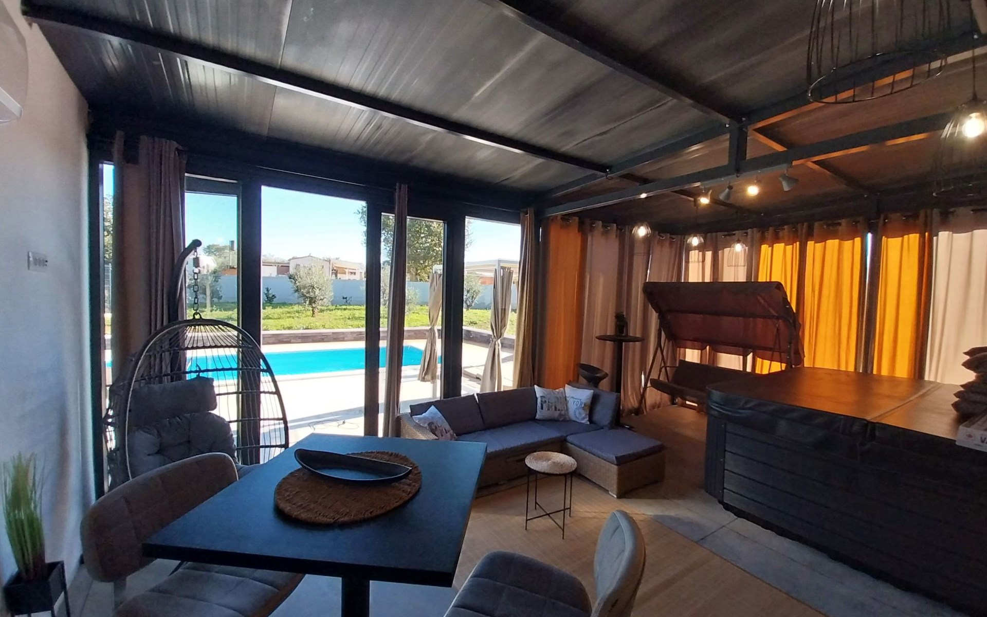 Im zweiten Teil der Villa erwartet Sie ein Heiligtum der Entspannung - ein Whirlpool und eine Massageliege für Momente, die nur Ihnen gewidmet sind, für tiefe Gespräche und unbeschwerte Abende. Jeder Winkel dieses Hauses strahlt Wärme und Sorgfalt aus, mit Annehmlichkeiten, die Ihren Aufenthalt unvergesslich und voller Freude machen.