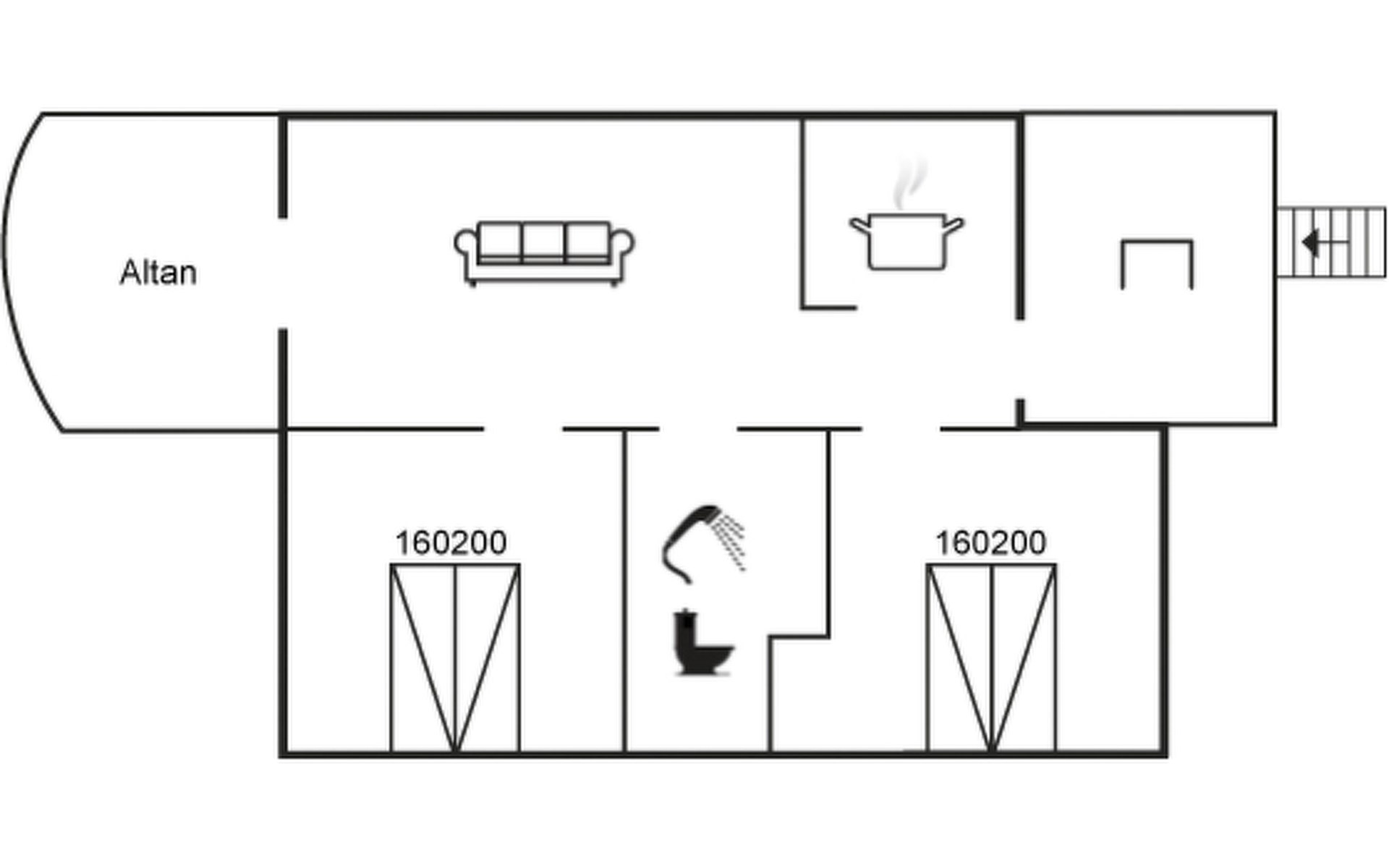 Feriendorf, Baujahr 1990. 100 m vom Meer. Lebensmittelgeschäft 3.7 km. Der Besitzer akzeptiert keine Jugendgruppen.