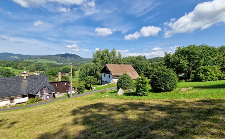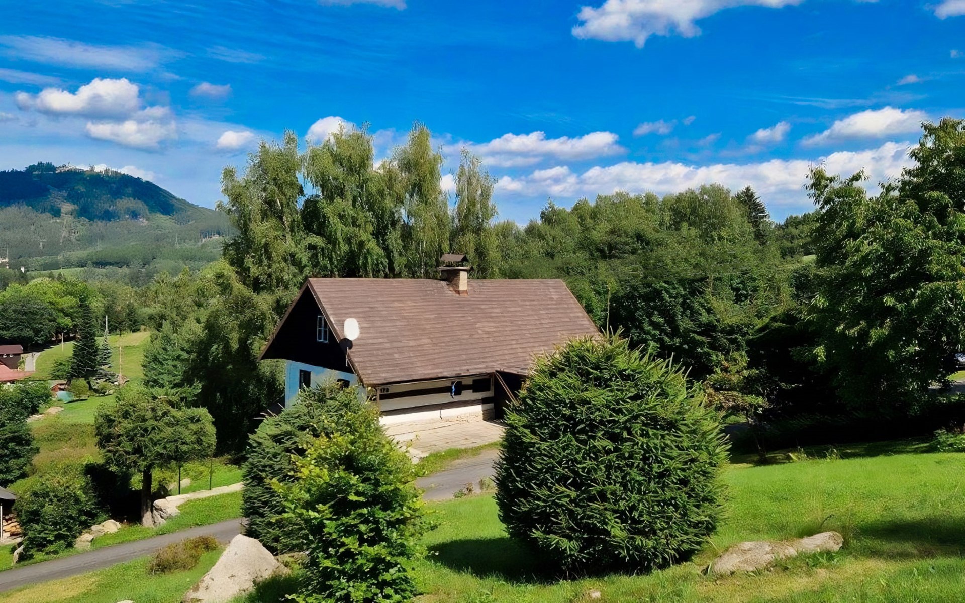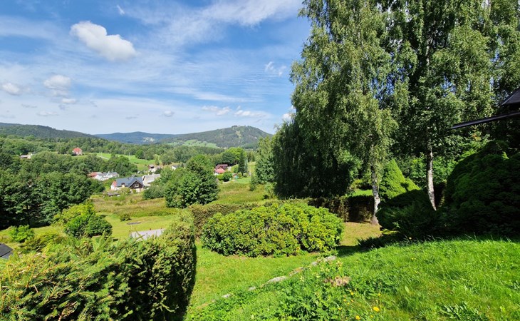 Haus, umgeben von Bäumen. Ruhige, sonnige Lage auf einem Hügel, 1 km vom Skigebiet. Zur Alleinbenutzung: Bäumen, Naturgarten. Gartenmöbel, Feuerstelle. Im Winter bitte Schneeketten mitbringen. Parkplatz (für 3 Autos). Lebensmittelgeschäft 2 km, Supermarkt 4 km, Restaurant 2 km, Bäckerei 3 km, Café 2 km, Bushaltestelle "Smržovka Zvonková" 500 m, Bahnstation "Smržovka střed" 1 km. Skilift 1 km, Skiverleih 1 km, Skischule 1 km. Nahe gelegene Sehenswürdigkeiten: Černá Studnice 4 km, Finkův kámen 3.5 km, Špičák Tanvald 6 km, Malý Špičák Tanvald 5 km, Světlý vrch 7 km, dinopark(pl)30km, termy Cieplickie 45 km. Bekannte Skigebiete sind gut erreichbar: Filip Smržovka 1 km, Rejdice 12 km, Špičák 5 km. Bekannte Seen in der Umgebung sind gut erreichbar: Souš 12 km, Jablonec n/Nisou 8 km. Wandergebiete: Protržená přehrada 12 km, vodopády Černá Desná 13 km, Mariánská hora 8 km.