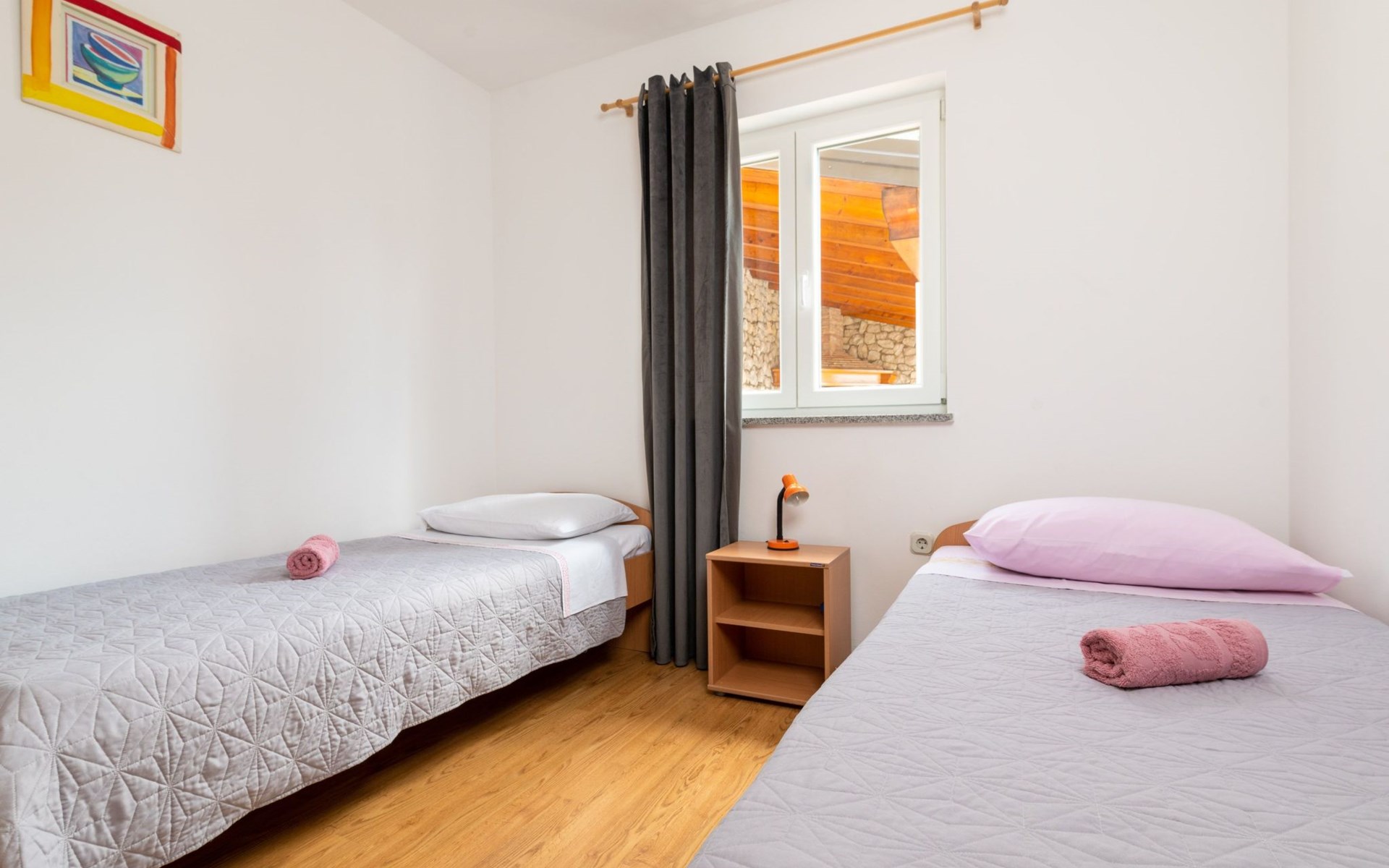 Suchen Sie ein Ferienhaus mit Pool and einem schönen sonnigen Hang an einem besonderen Ort für bis zu 12 Personen? Da wird Sie das Haus Maria begeistern. Am Südhang gelegen in Brovnje liegt das schöne Haus Marija. Der Gast mietet hierbei das gesamte Haus mit Grundstück, welches aus 3 Wohnungen mit eigenem Eingang besteht. Jede Wohnung hat zwei Schlafzimmer mit jeweils einem Wohnzimmer und Bad. Ein Schlafzimmer hat ein 1.60m x 2.00m Doppelbett und das andere hat jeweils zwei Einzelbetten mit jeweils einem 90cm Bett, was sich bestens für Kinder geeignet. Das Wohnzimmer hat eine gut ausgestattete Küche, was den grossen Vorteil bringt, dass die Gäste in den jeweiligen Wohnungen, unabhängig sein können. Im Erdgeschoss befindet sich ein gemeinschaftlicher Aufenthaltsraum zum Grillen, Essen und Spass zu haben, optimal zu einer Saison wo die Abendstunden eher kühler werden. Ausserdem auch ein Fitnessraum um danach die Kalorien wieder loszubringen. Zum anderen befindet sich im Erdgeschoss eine Wohnung.Durch die Treppe, erreicht man die anderen zwei Wohnungen, ebenfalls mit jeweils einem eigenen Eingang. Die beiden oberen Wohnung bieten zusätzlich einen Malerischen Ausblick auf das Meer und die untere Ostküste Istriens, daher lässt es sich dort auf dem Balkon wunderbar den Sonnenuntergang geniessen und den Tag ausklingen lassen. Das Haus eignet sich hervorragend für Urlauber die mit 2-4 Familien einen unvergesslichen Urlaub verbringen können. Oder aber auch eine kleinere oder grössere Gruppe von Freunden die nach einem langen Wiedersehen, mal zusammen eine gute Zeit haben wollen.