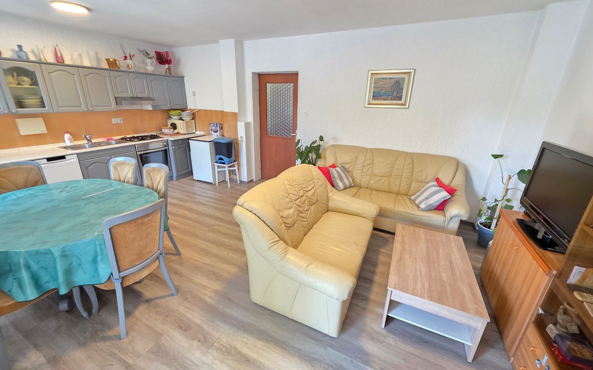Dank der erstklassigen Lage der Wohnung sind Sie nur 400 Meter vom unberührten Strand und dem glitzernden Meer entfernt, was Tage voller Sonnenbaden, Schwimmen und Wassersport verspricht. Nach einem kurzen Spaziergang von 800 Metern erreichen Sie das nächstgelegene Stadtzentrum, wo Sie in die lokale Kultur eintauchen, in malerischen Lokalen speisen oder einkaufen gehen können. Für den täglichen Bedarf gibt es in einem Umkreis von 300 Metern ein Lebensmittelgeschäft.