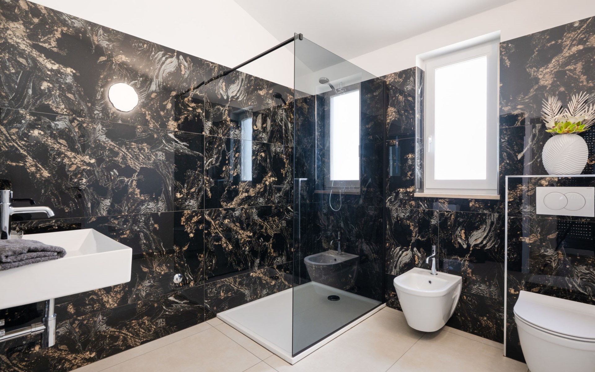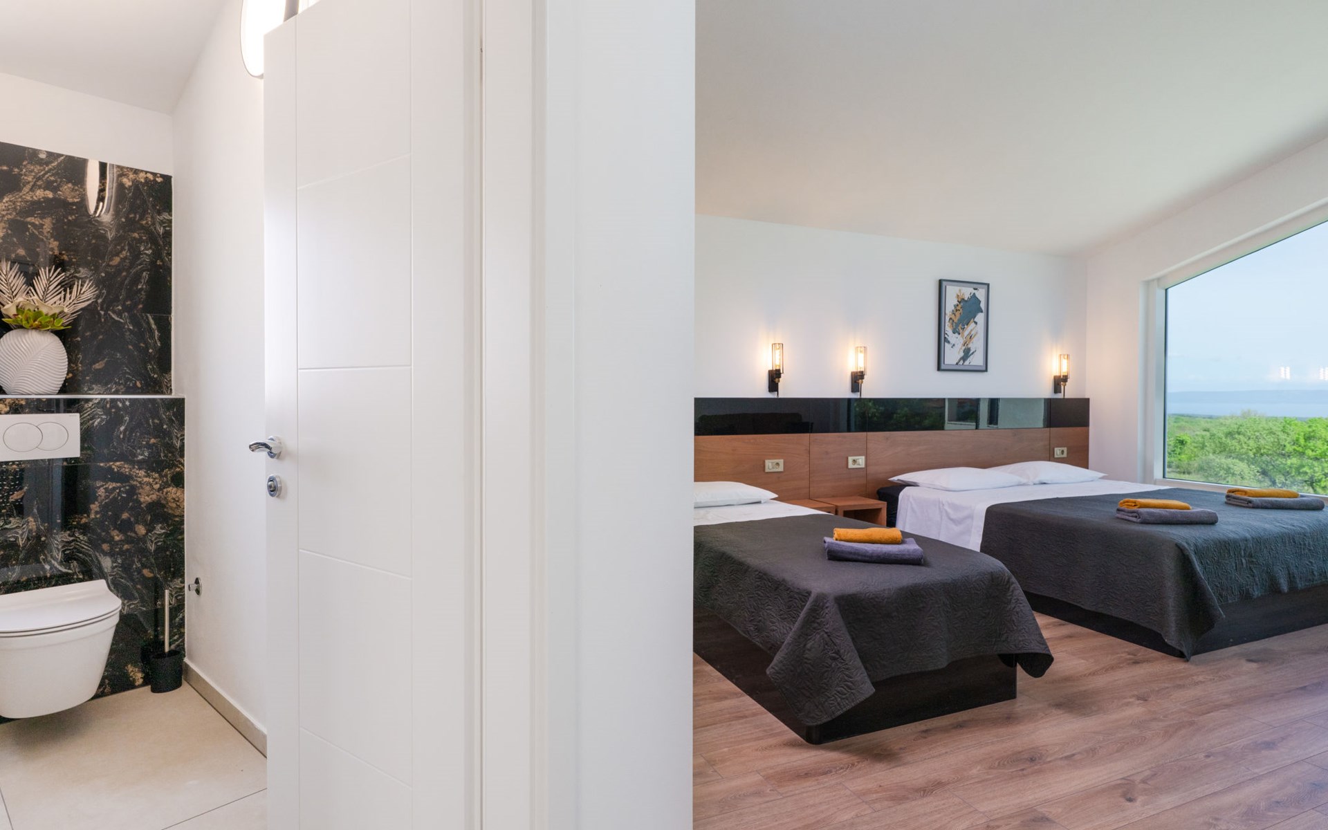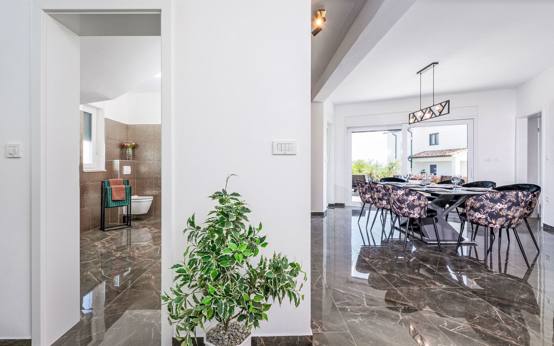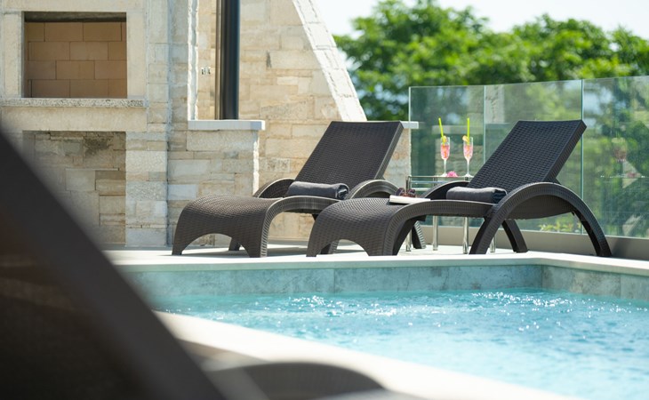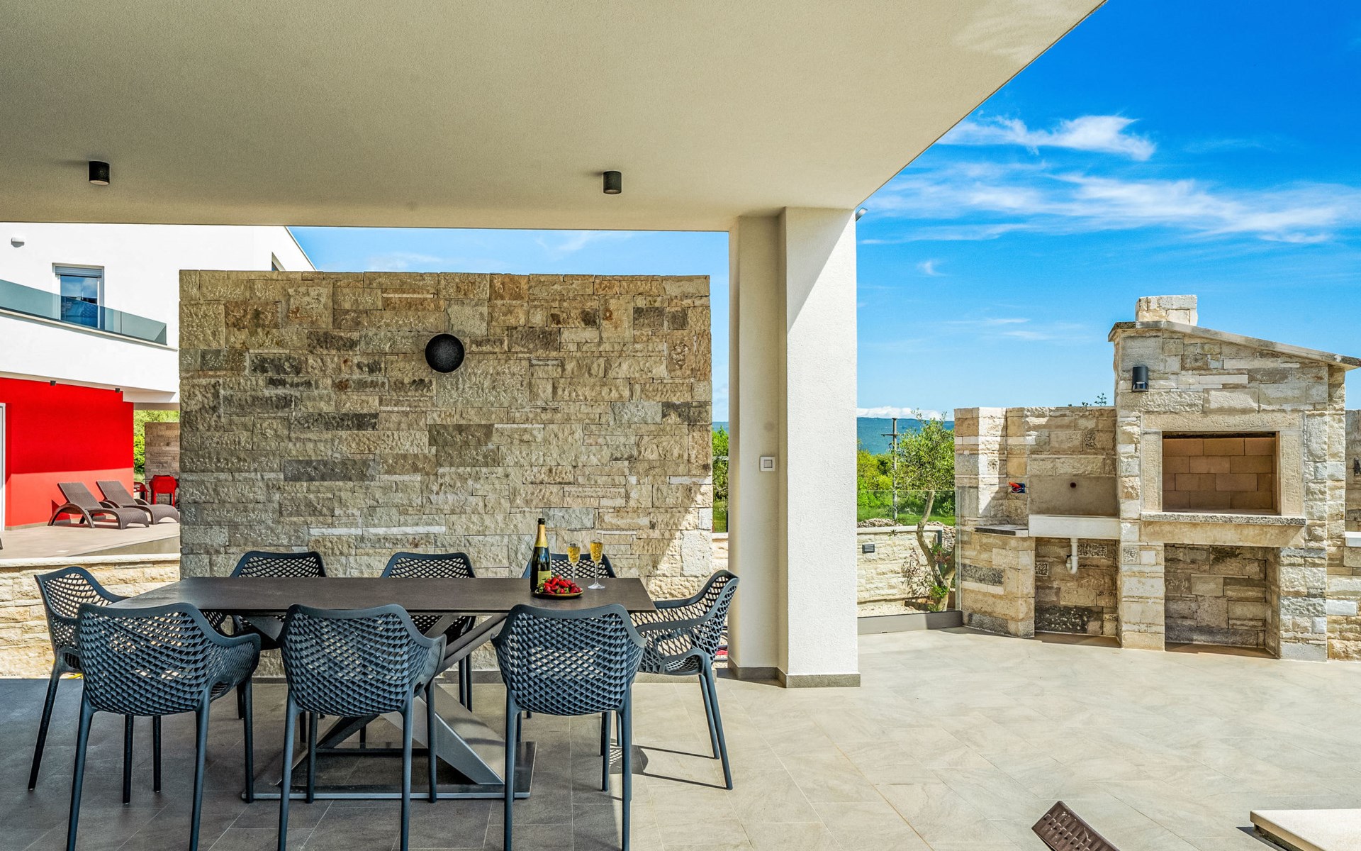 Krnica 22 km von Pula: Moderne, schöne Villa "Lu". Ruhige, sonnige Lage, 2.5 km vom Meer, 2.5 km vom Strand. Zur Alleinbenutzung: Grundstück 700 m2 (eingezäunt), Garten mit Blumen und Bäumen, Schwimmbad eckig (8 x 3 m, 28 m2, 140 cm tief, saisonale Verfügbarkeit: 01.Jan. - 31.Dez.) mit Innentreppe. Aussendusche, Terrasse (20 m2), Gartenmöbel, Grill, Poolpflege durch den Besitzer/Gärtner. Im Hause: Internetzugang, Waschmaschine. Parkplatz (für 2 Autos) beim Haus auf dem Grundstück. Einkaufsgeschäft, Restaurant 200 m, Bushaltestelle 500 m, Kieselstrand 5 km, Felsstrand 2.5 km, Hallenbad 5 km. Tennis 5 km, Reitstall 6 km, Sportzentrum 5 km, Wanderwege ab Haus 3 km, Radweg 3 km.