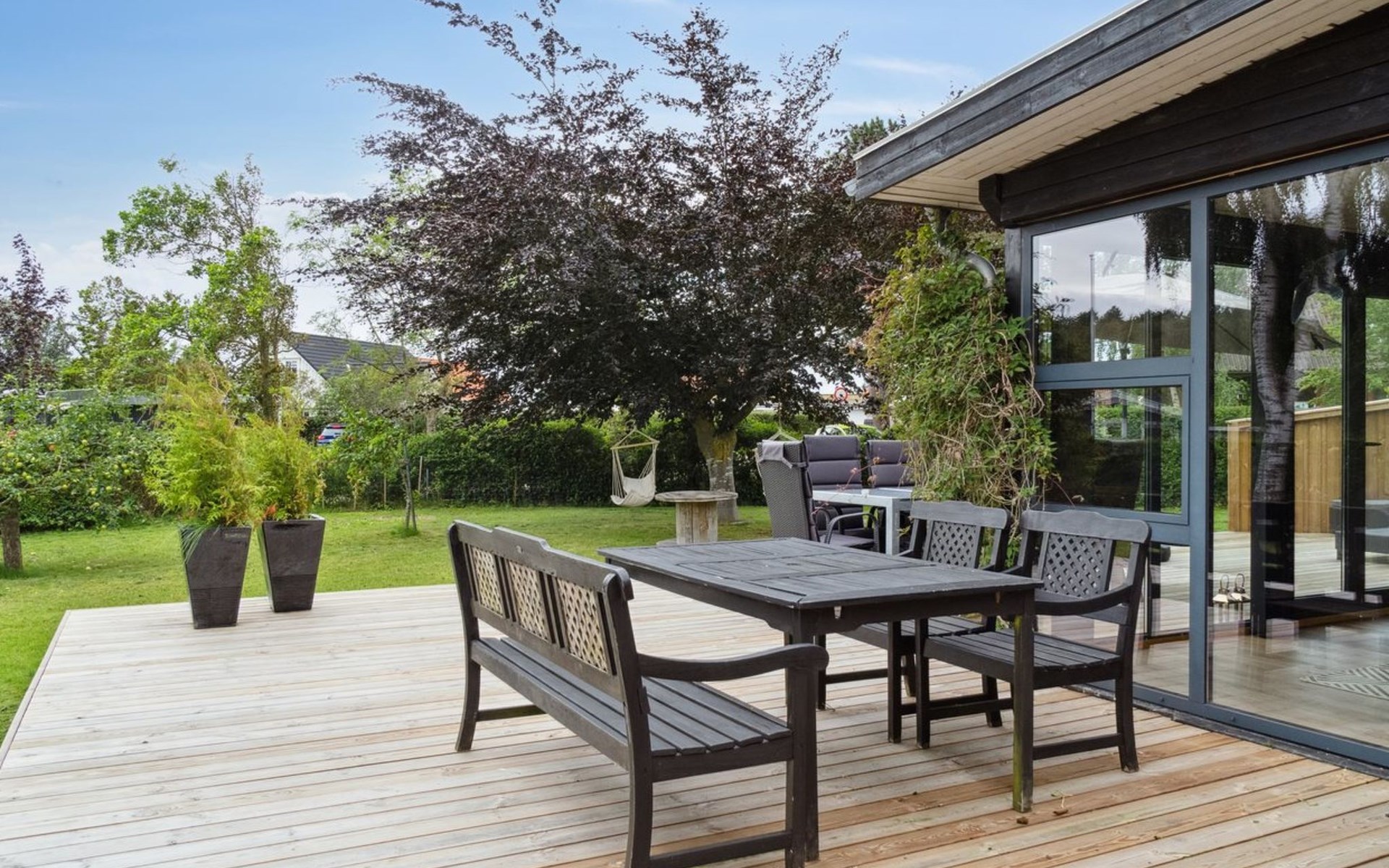 Einfamilienhaus, Baujahr 1960. 150 m vom Meer. Zur Mitbenutzung: Garten. Zur Alleinbenutzung: naturbelassenes Grundstück 900 m2, Garten (eingezäunt). Aussendusche, Grill, Kinderspielplatz (Schaukel). Im Hause: Waschmaschine. Parkplatz beim Haus. Lebensmittelgeschäft 50 m. Der Besitzer akzeptiert keine Jugendgruppen.