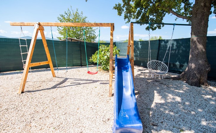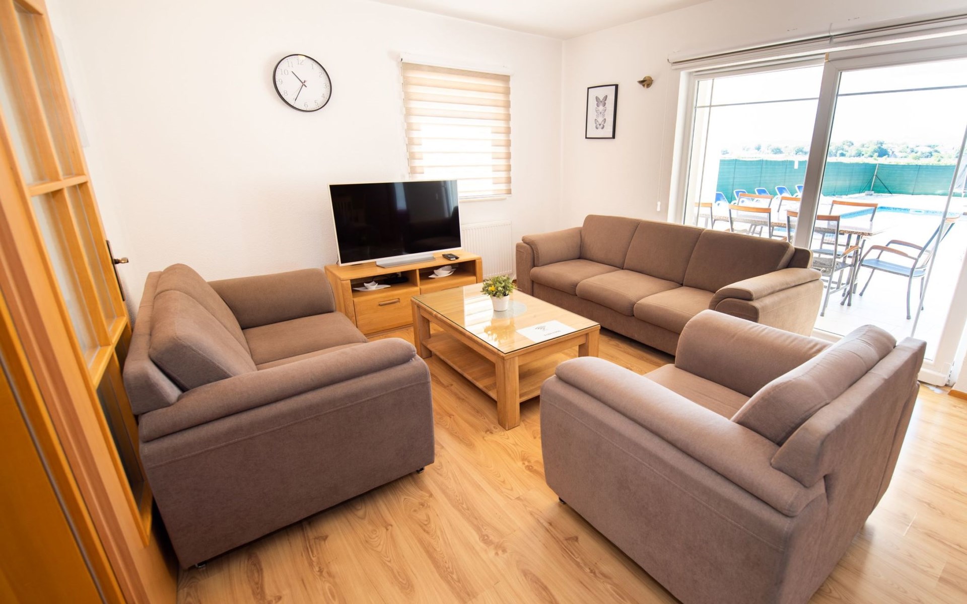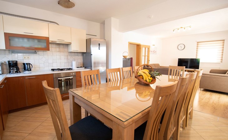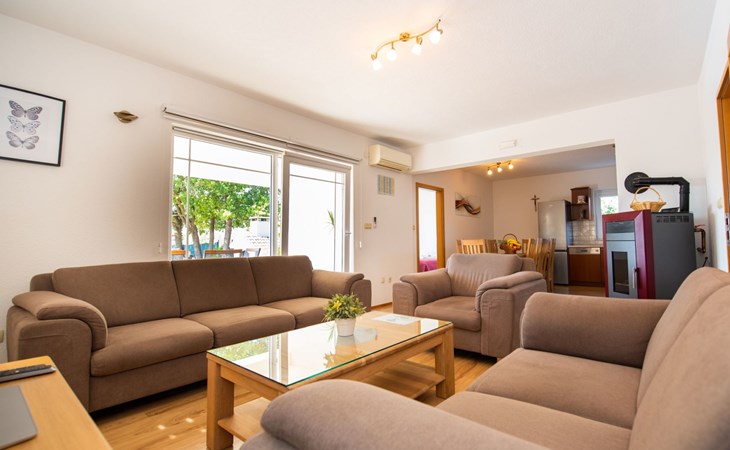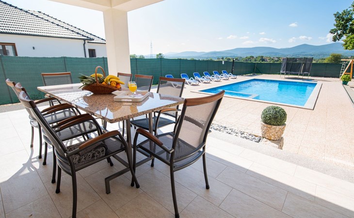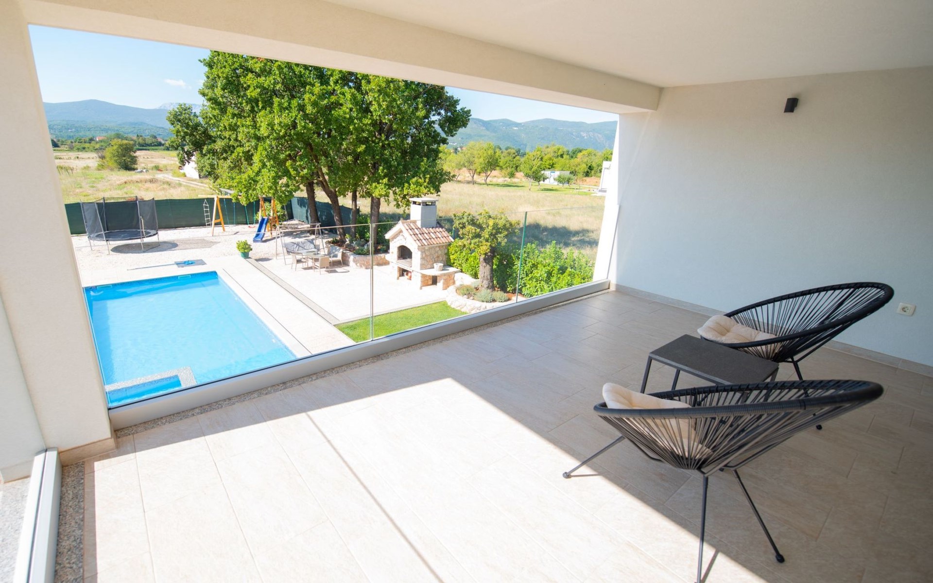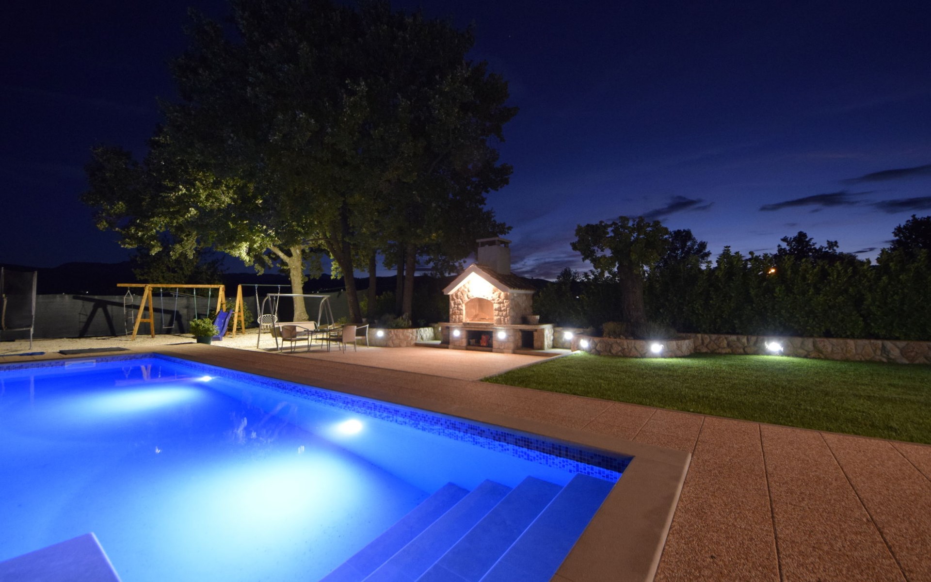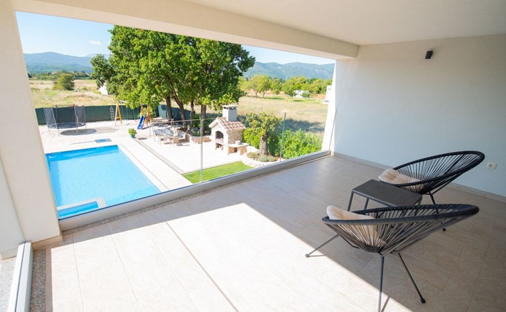 Donji Proložac 10 km von Imotski: Einfamilienhaus "Villa Maria", auf 2 Stockwerken. 2 km vom Zentrum von Donji Proložac, sonnige Lage, 30 km vom Meer. Zur Alleinbenutzung: Grundstück 1'700 m2, Schwimmbad eckig (10 x 5 m, 155 cm tief, saisonale Verfügbarkeit: 15.Mai. - 01.Okt.) mit Innentreppe. Aussendusche, Grill, Kinderspielplatz (Rutschbahn, Schaukel), Poolpflege durch den Besitzer/Gärtner. Im Hause: Internetzugang, Trampolin, Waschmaschine. Parkplatz (für 4 Autos) beim Haus auf dem Grundstück. Einkaufsgeschäft 500 m, Supermarkt 8 km, Restaurant 2 km, Bushaltestelle 3.6 km, Kieselstrand 30 km. Bekannte Seen in der Umgebung sind gut erreichbar: Modro jezero 5 km. Bitte beachten: Flugplatz 100 km vom Haus. Schwimmbad mit Hydromassage.