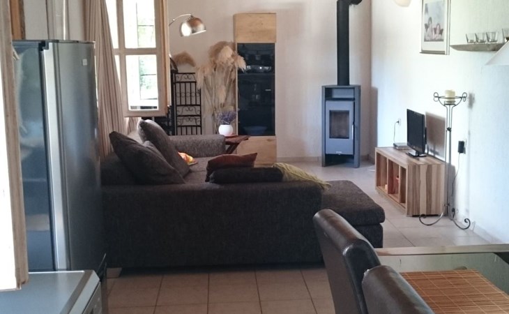 Das Haus hat eine Wohnfläche von 90 qm, aufgeteilt in Wohnraum, 1 Schlafzimmer mit einem Doppelbett,1 Schlafzimmer mit Doppelbett und zusätzlich Einzelbett, Bad ,Küche, ausgestattet mit 4 Zonen Ceran Kochfeld, Umluft Herd und Spülmaschine.