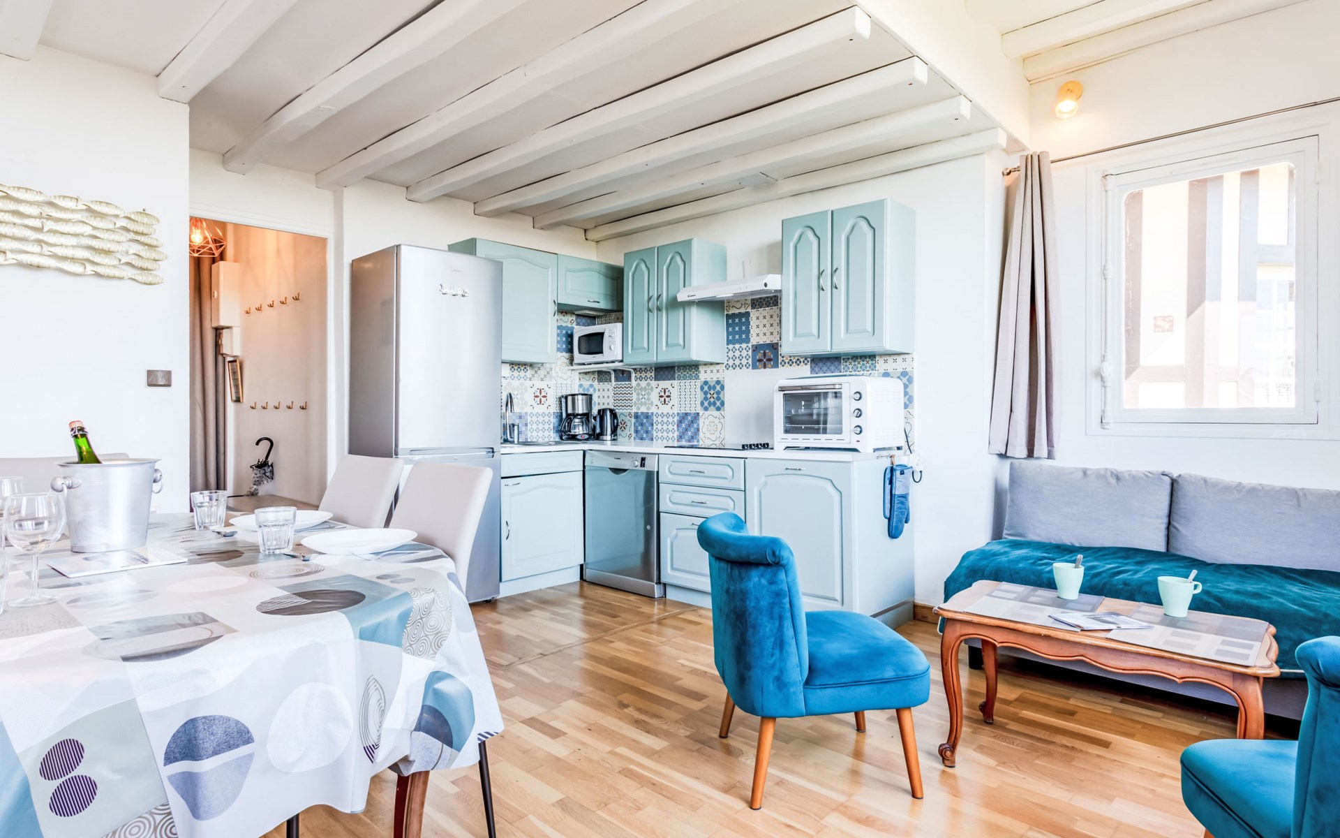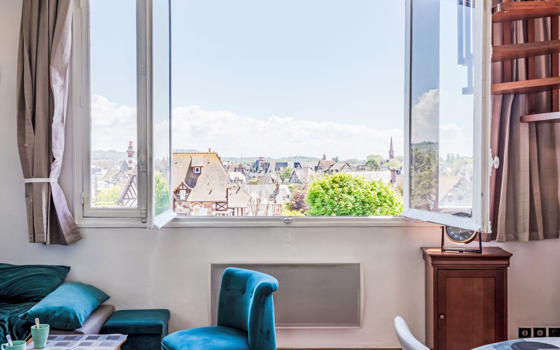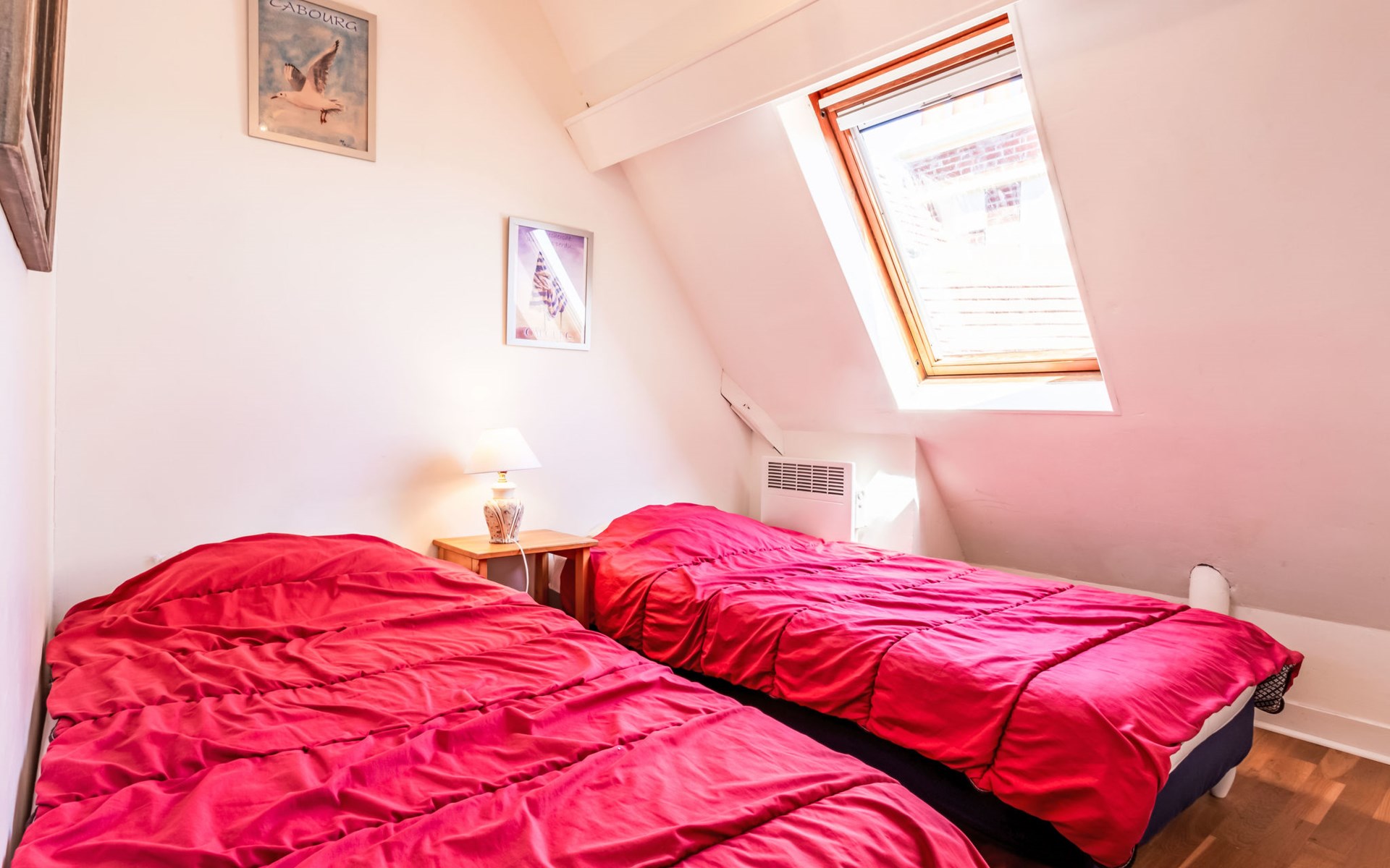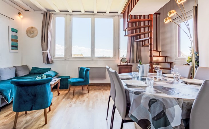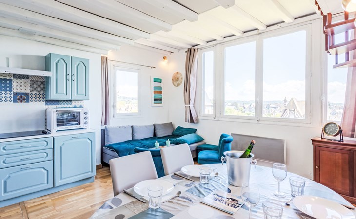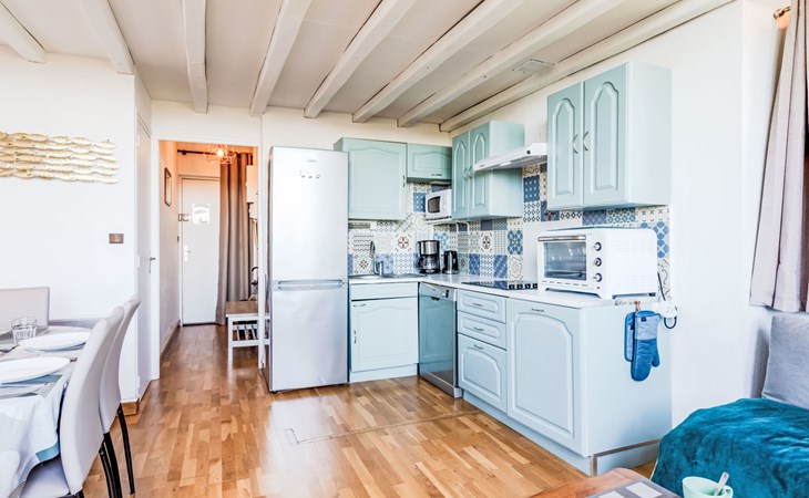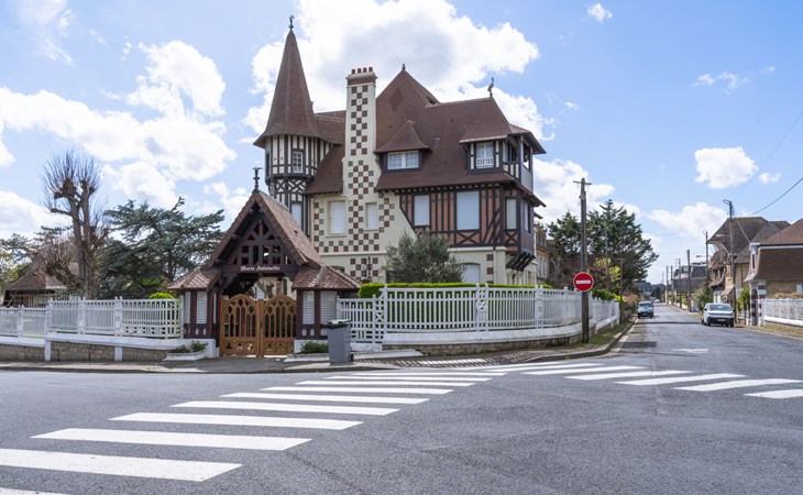 Residenz "Marie Antoinette", auf 2 Stockwerken. Im Ortszentrum von Cabourg, im Ort, 200 m vom Meer, 200 m vom Strand. Öffentliche Parkplätze auf der Strasse. Einkaufsgeschäft 200 m, Supermarkt 1.7 km, Restaurant 200 m, Bushaltestelle "Hôtel de Ville" 900 m, Thermalbad "Thalazur" 900 m. Golfplatz (9 Loch) 1.8 km. Bitte beachten: kein Fahrstuhl vorhanden.