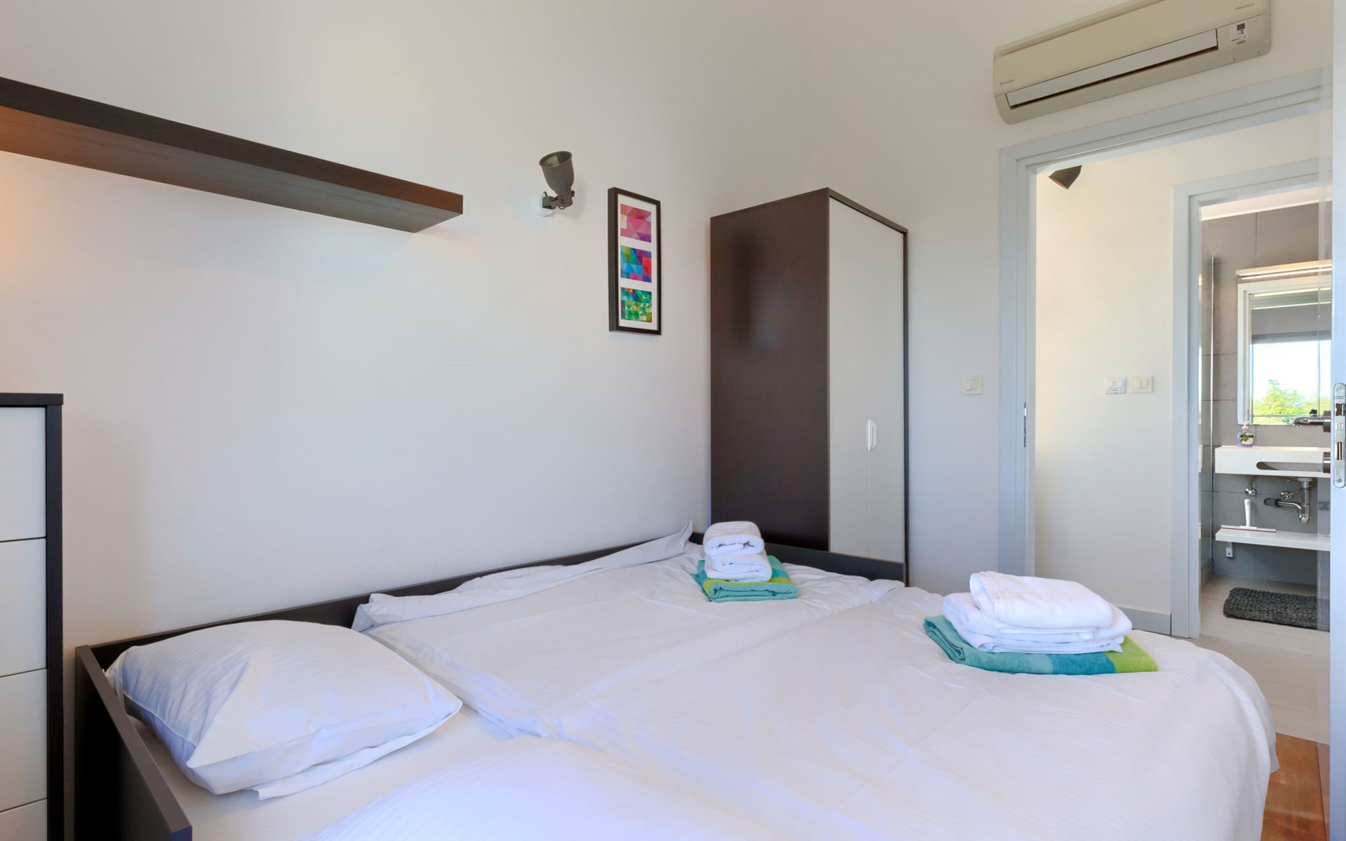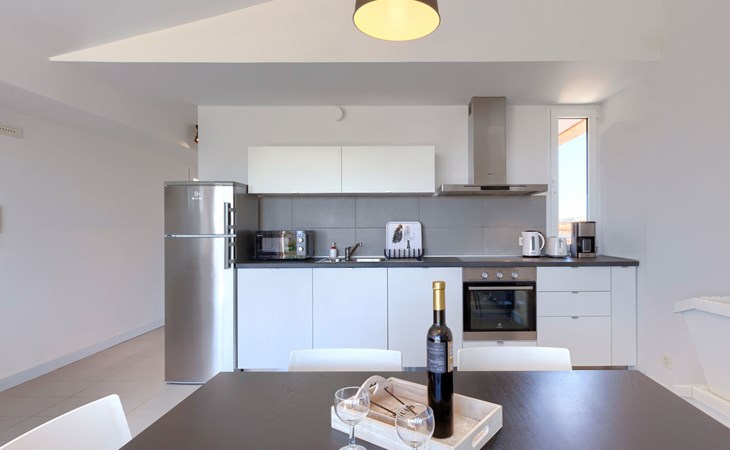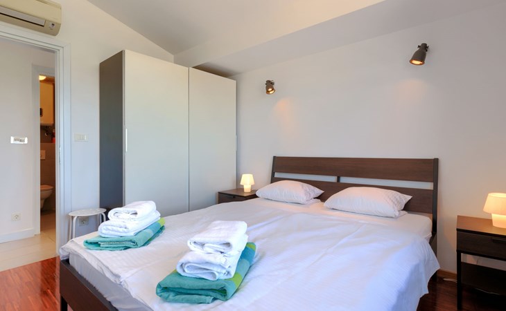 Appartementhaus. Im Ortsteil Zambratija, 5 km vom Zentrum von Umag, ruhige Lage, 1 km vom Meer, 1 km vom Strand, in einer Sackgasse. Zur Mitbenutzung: Grundstück 500 m2, Schwimmbad eckig (8 x 4 m, 140 cm tief, saisonale Verfügbarkeit: 01.Mai. - 15.Sep.). Aussendusche. Im Hause: Internetzugang. Parkplatz beim Haus auf dem Grundstück. Einkaufsgeschäft 2 km, Restaurant 2 km, Bushaltestelle 6.5 km, Felsstrand 1 km. Sportzentrum 1 km.