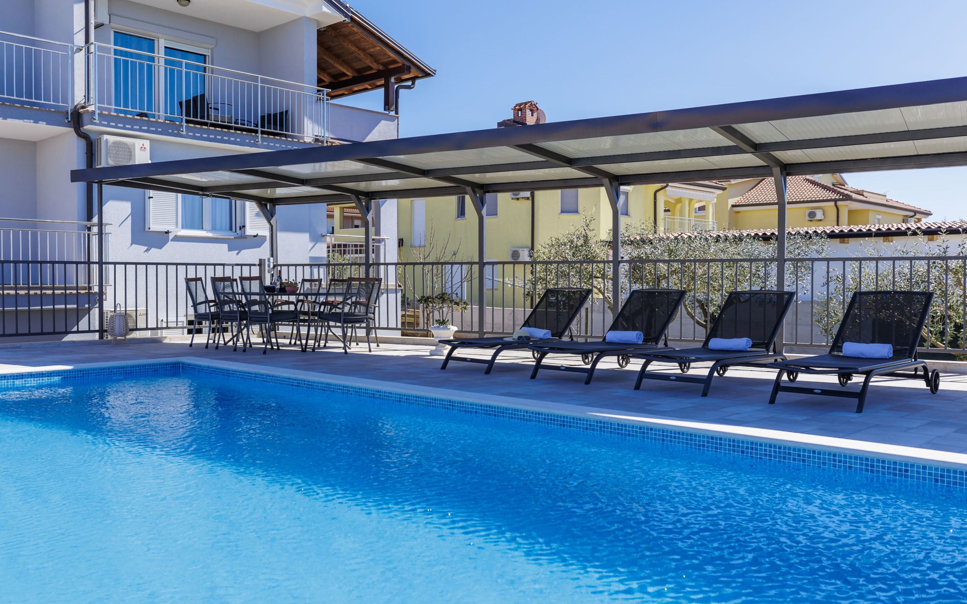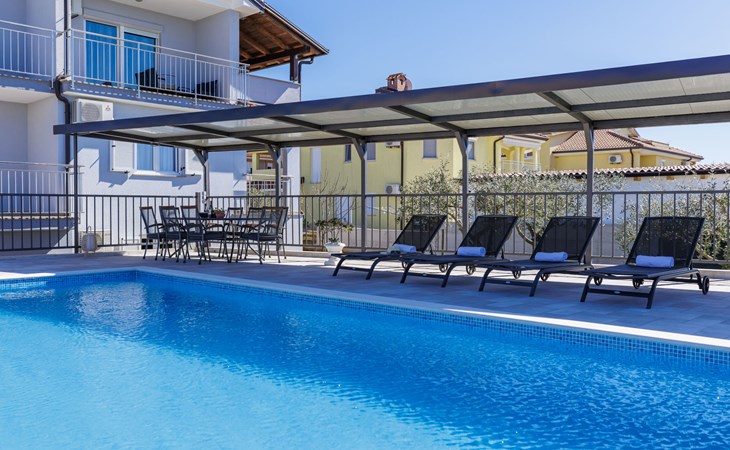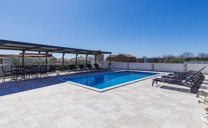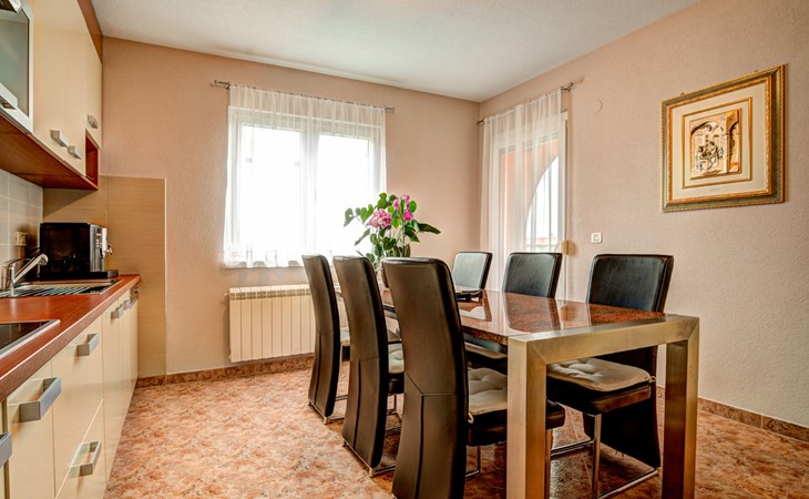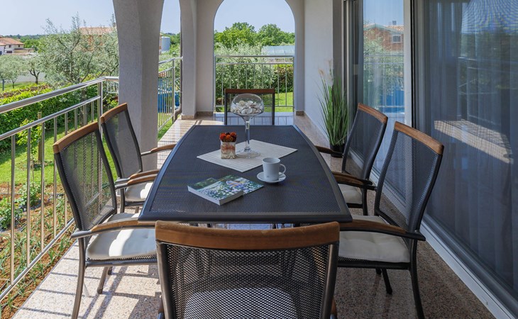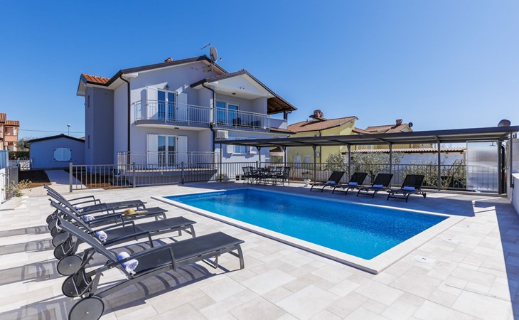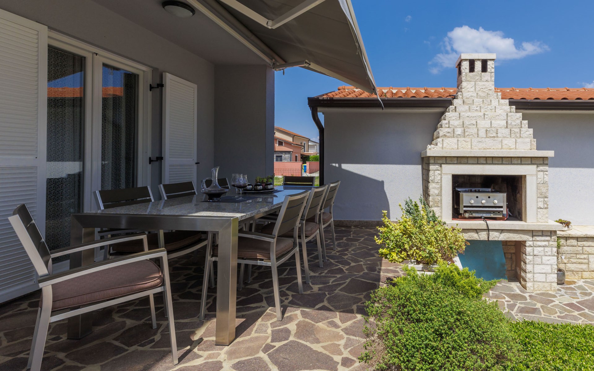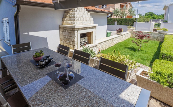 Schönes Dreifamilienhaus "Tommy". Im Weiler Srbarica, 3 km vom Zentrum von Umag, sonnige Lage, 2.5 km vom Meer, 2.5 km vom Strand, in einer Sackgasse. Zur Mitbenutzung: Grundstück 500 m2 (eingezäunt), Garten mit Pflanzen und Blumen. Terrasse (20 m2), Gartenmöbel, Grill. Im Hause: Internetzugang. Parkplatz beim Haus auf dem Grundstück. Einkaufsgeschäft 1 km, Supermarkt 2 km, Restaurant 500 m, Bushaltestelle 4.4 km, Kieselstrand 2.5 km, Felsstrand 2.5 km, Strandbad 2.5 km. Golfplatz (18 Loch) 10 km, Tennis 3 km, Wanderwege ab Haus 500 m, Radweg 550 m. Nahe gelegene Sehenswürdigkeiten: aquapark 18 km, cave Mramornica 15 km. Jugendgruppen nur auf Anfrage.