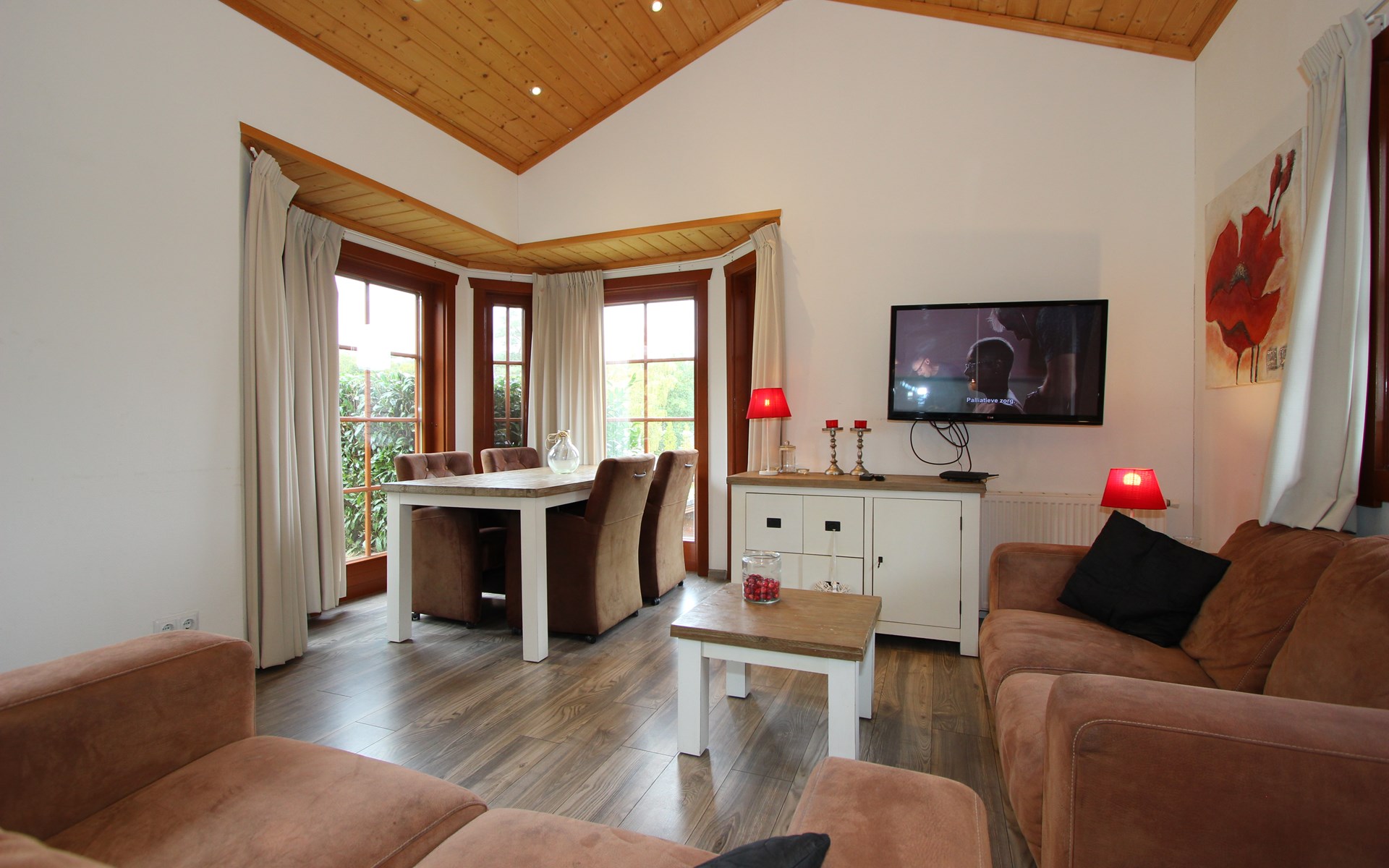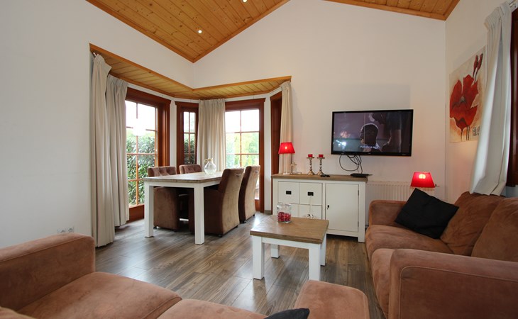 Dieses Chalet eignet sich für 4 Personen. Das Wohnzimmer ist mit einer separaten Essecke eingerichtet. In der offenen Küche befinden sich unter anderem eine Mikrowelle, eine Geschirrspülmaschine und eine Kaffeemaschine. Es sind 2 Schlafzimmer vorhanden: 1 Schlafzimmer mit 1 Doppelbett und 1 Schlafzimmer mit 2 Einzelbetten. Darüber hinaus gibt es 1 Badezimmer mit einer Toilette und einer Dusche. Draußen befinden sich eine möblierte Terrasse und eine Parkmöglichkeit für 1 Auto. WLAN ist kostenlos verfügbar. Bitte beachte, dass es Stufen zum Haus geben kann.