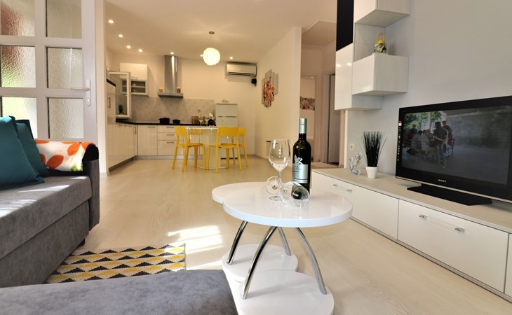 Die Lage in 2,5 km Entfernung zum Zentrum von Porec bietet den idealen Ausgleich zwischen Ruhe und Nähe zu städtischen Annehmlichkeiten. Einkaufsmöglichkeiten sind nur 150 m entfernt, während Restaurants sich in einer Entfernung von 250 m befinden. Für Badeausflüge erreichen Sie ein Strandbad nach 2,5 km. Die Umgebung lädt ein, die kulturellen und landschaftlichen Schönheiten Istriens zu entdecken.