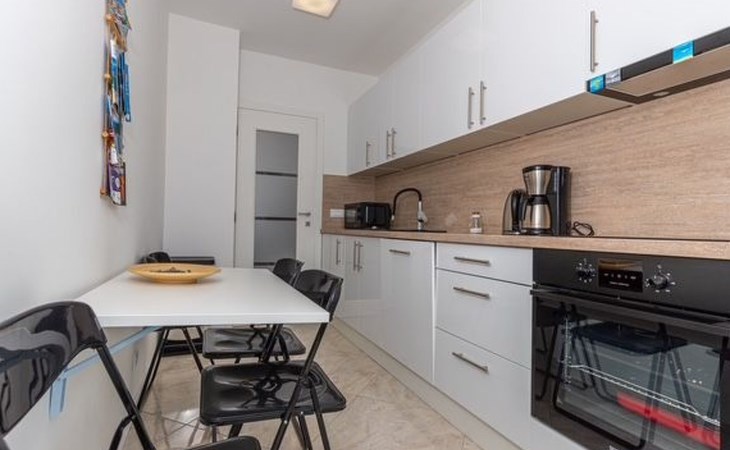 Die Wohnung verfügt über zwei gemütliche Schlafzimmer und ein Badezimmer mit Dusche, die einen komfortablen Aufenthalt für alle Gäste garantieren. Ein Teil der Wohnung ist klimatisiert, damit Sie an warmen Sommertagen nicht frieren müssen. Die Küche ist mit einer Filter- und einer Kapselkaffeemaschine, einem Geschirrspüler und einem Wasserkocher gut ausgestattet, um alle kulinarischen Bedürfnisse zu befriedigen. Außerdem steht Ihnen eine Waschmaschine zur alleinigen Nutzung zur Verfügung, so dass Sie Ihre Urlaubsgarderobe immer frisch halten können. Zur Unterhaltung steht eine Spielkonsole zur Verfügung, ideal für gemütliche Abende oder eine kleine Auszeit mit den Kindern.