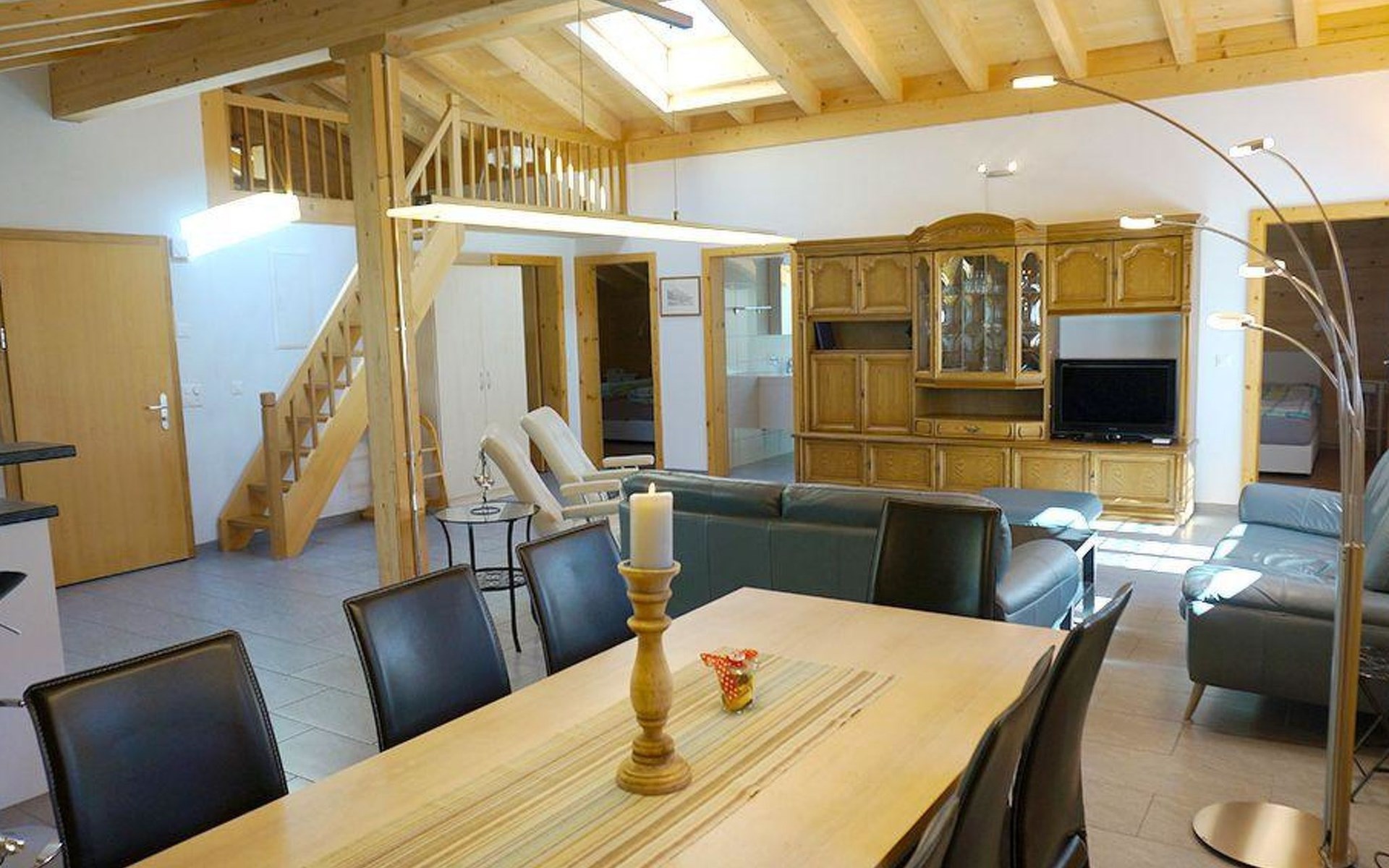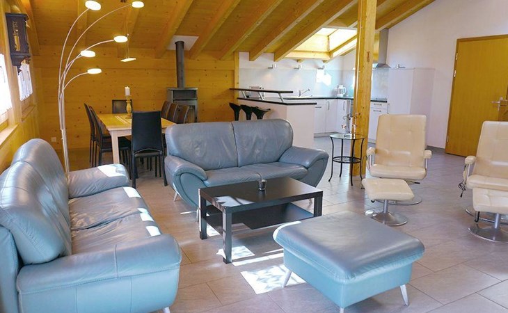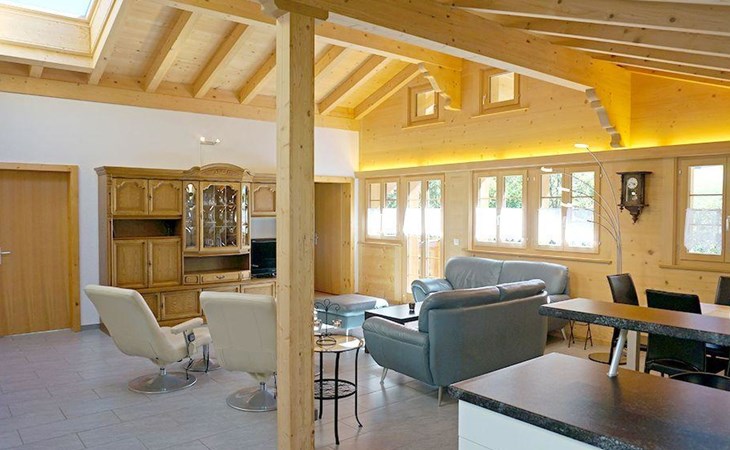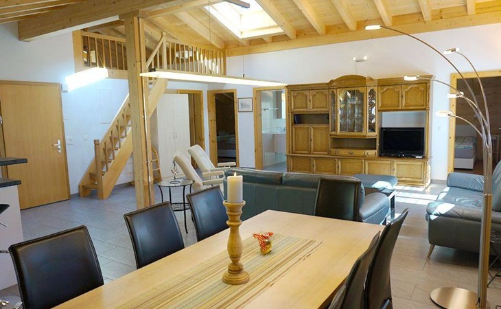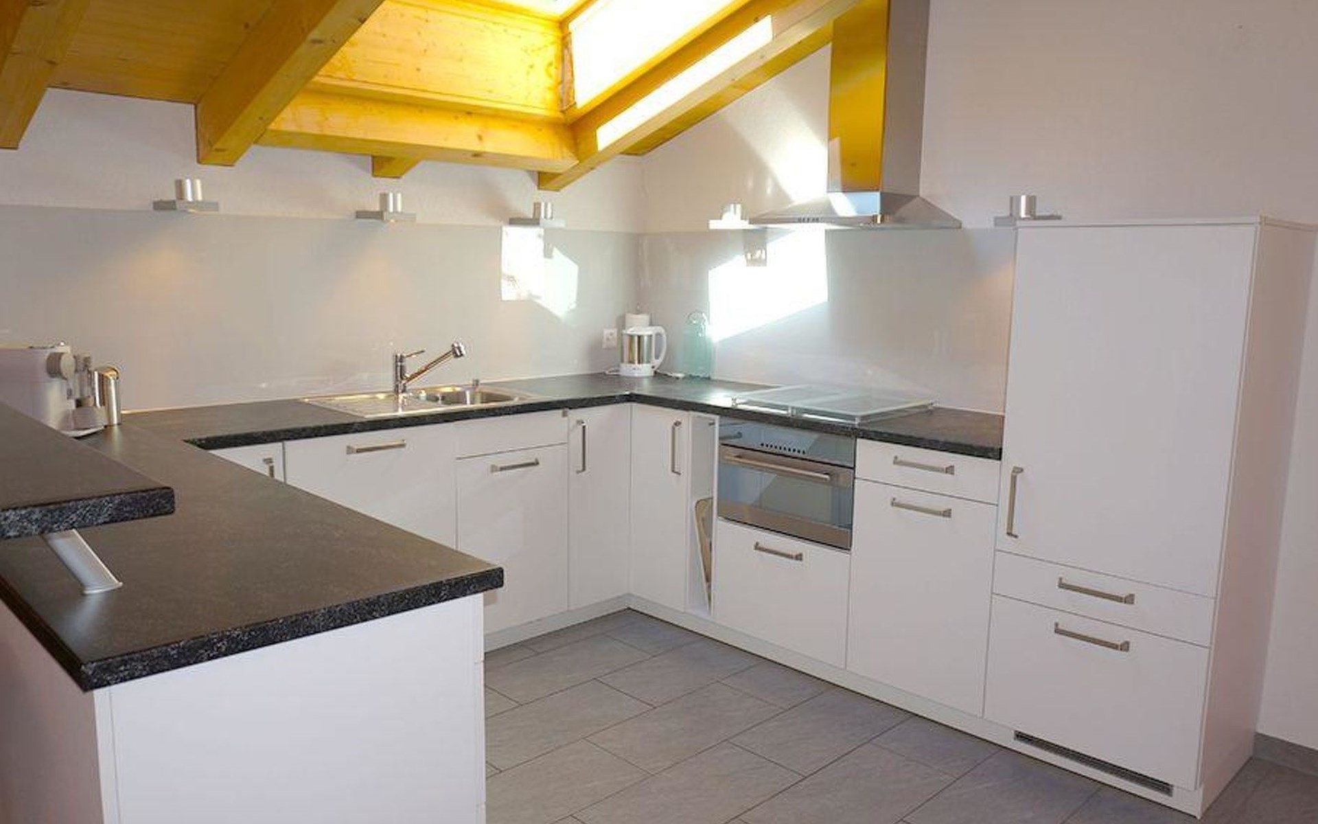 Grosses und helles Wohn-/Esszimmer (Gesamtfläche 60m2) mit offener Küche (Keramikherd, Backofen/Mikrowelle kombiniert, Geschirrspülmaschine, Kapsel-Kaffeemaschine (Nespresso) sowie Fondue- und Raclette-Set, Esstisch, Schwedenofen, Sitzgruppe und TV. 2 Schlafzimmer mit je 1 Boxspringbett (180x200cm). 1 Schlafzimmer mit 1 Boxspringbett (160x200cm). 1 Badezimmer mit separater Dusche, Badewanne und WC. 1 separates WC. Abstellraum, Waschmaschine und Wäschetrockner (inkl. Bügelbrett und Bügeleisen) sind im Tiefparterre vorhanden. Die ganze Wohnung verfügt über eine in allen Zimmern individuell regulierbare Bodenheizung. W-Lan. Kinderbett (70x120cm) inkl. Bettwäsche und Kinderhochstuhl vorhanden. Wichtiger Hinweis: Bei Belegung bis 2 Personen (tieferer Preis) steht nur ein Schlafzimmer zur Verfügung. Die anderen beiden Schlafzimmer bleiben abgeschlossen.