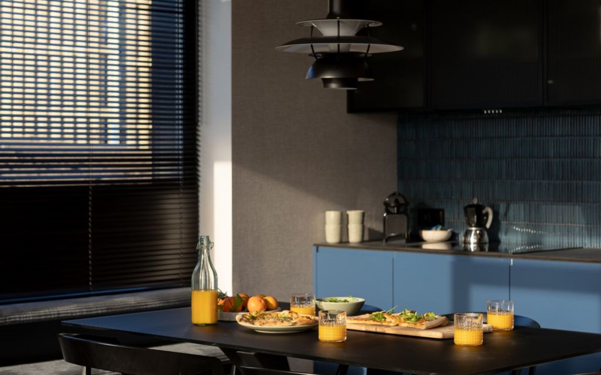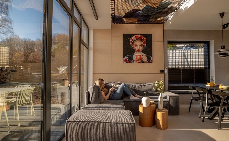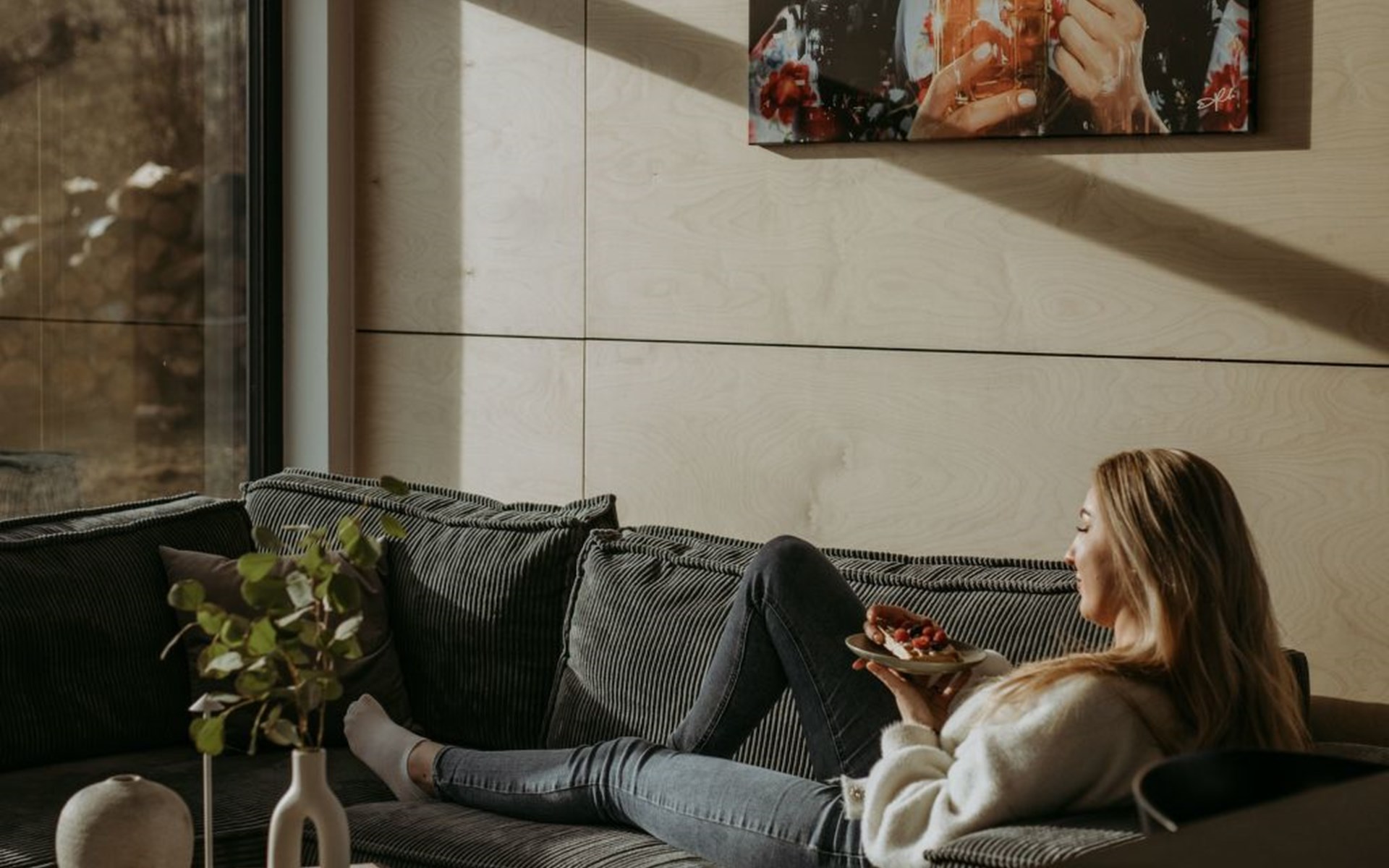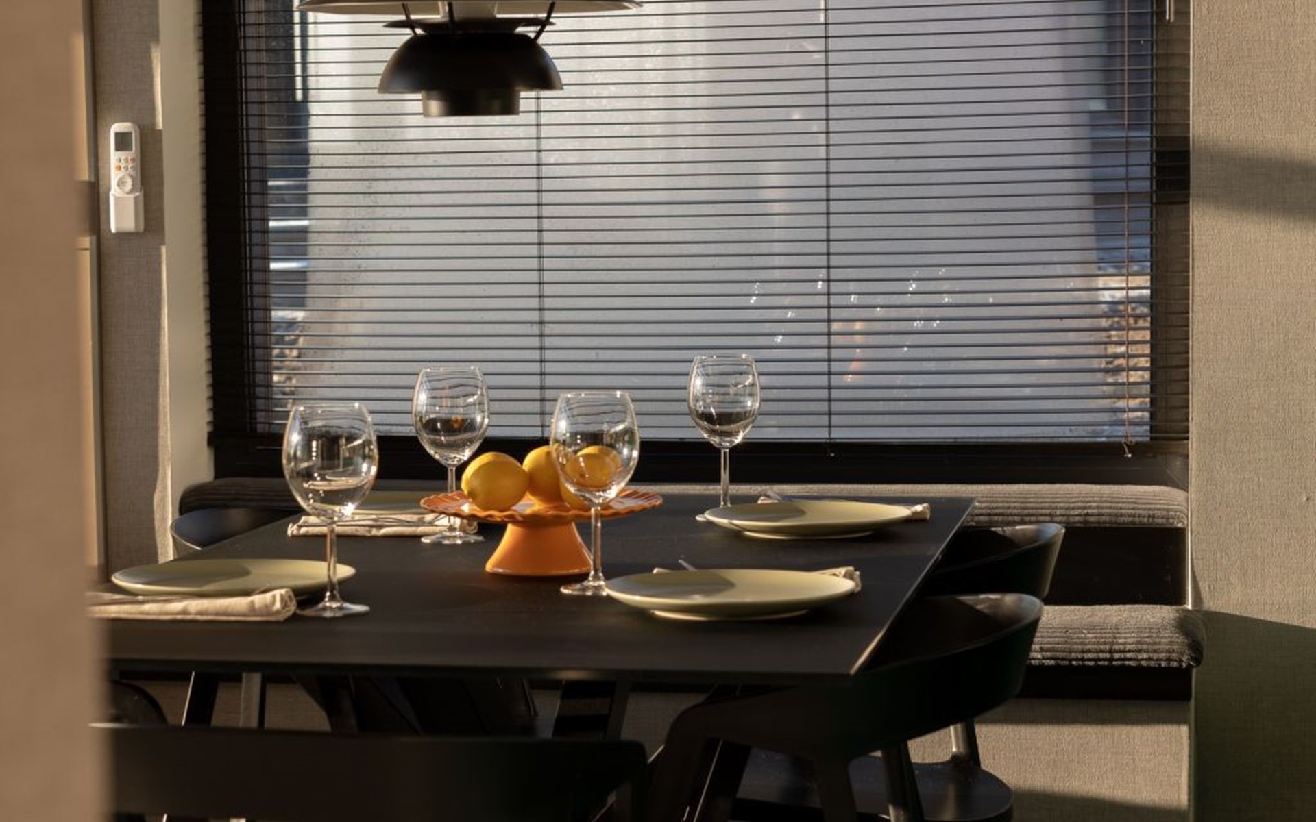 Das Innere jedes Ferienhauses ist mit Komfort und Luxus ausgestattet. Für eine angenehme Nachtruhe sorgen Betten in Hotelqualität: Im Hauptschlafzimmer und im zweiten Schlafzimmer stehen Doppelbetten (160×200 cm), im Wohnzimmer ein Schlafsofa (150×200 cm, für zwei Personen) und für eine weitere Person ein ausklappbares Hotelbett (90×200 cm). Für die kleinsten Gäste stehen zwei Reisebetten (60×120 cm) zur Verfügung. Jedes Cottage ist mit einem Smart-TV und kostenlosem WiFi ausgestattet, um Unterhaltung und Komfort in Reichweite zu haben.