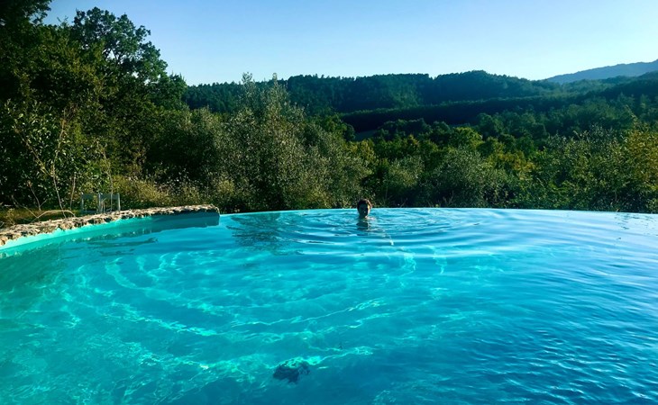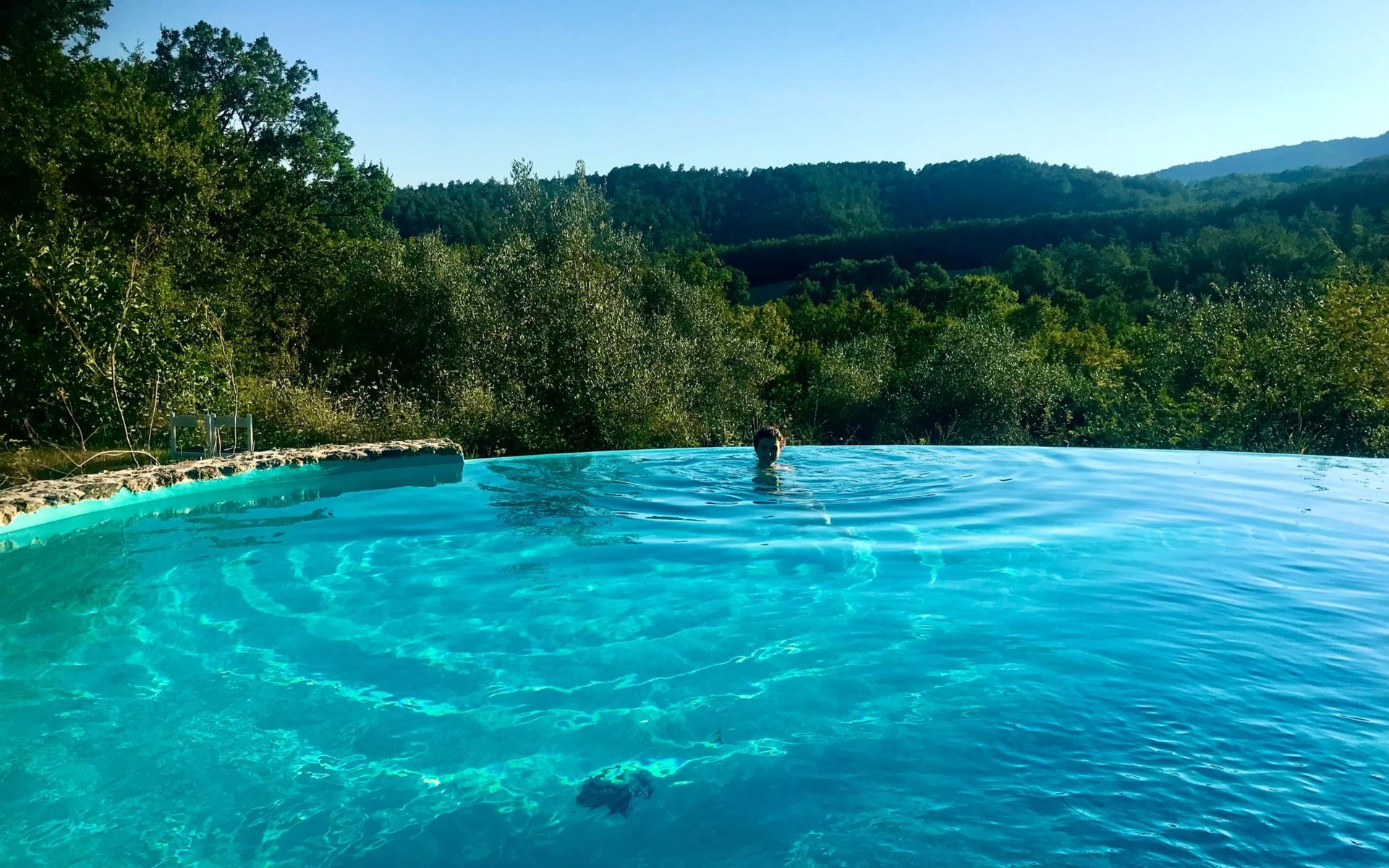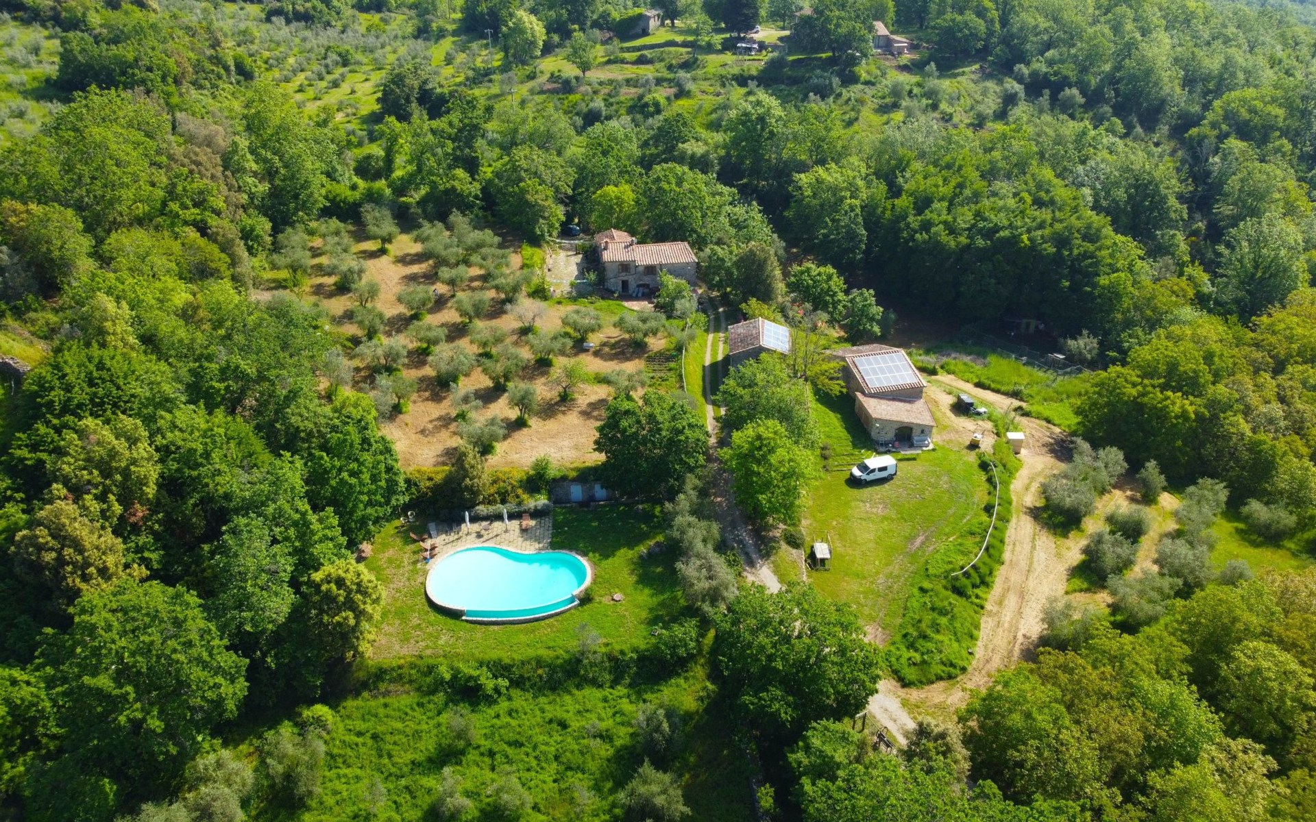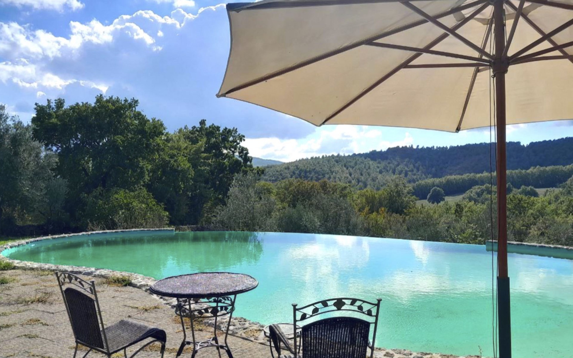 TRAUMHAFTE ALLEINLAGE AUF 4 HA LANDIn traumhafter Alleinlage auf 4 ha privatem Land befinden sich die historischen toskanischen Steinhäuser inmitten von Olivenhainen und Walnussbäumen. Ein großzügiger Infinity Salzwasser Pool lädt zur Erfrischung ein!Sie suchen einen Ort der Stille und des Friedens? Sie wollen einfach mal die Seele baumeln lassen, toskanische Natur genießen, Sonne tanken, unter Olivenbäumen schlummern oder in den herrlich erfrischenden leuchtend türkisblauen Infinity- Pool springen?Dann sind Sie bei uns genau richtig! Wir stellen einen wunderschönen energetisch hochschwingenden Platz zur Verfügung für Menschen, die eine Oase der Stille und der Erholung suchen, die zu sich kommen und bewußt leben wollen. Genießen Sie den herrlichen Panoramablick über die grünen Hügel der Toskana. Die angenehme Südlage garantiert sonnige Stunden von früh bis spät. Entspannen Sie sich auf Ihrer eigenen privaten Hausterasse oder am großzügiggen Gemeinschaftspool unter Olivenbäumen.