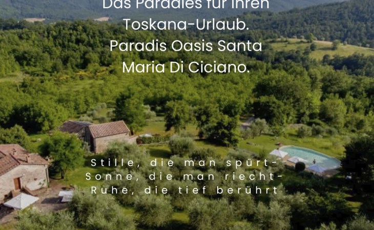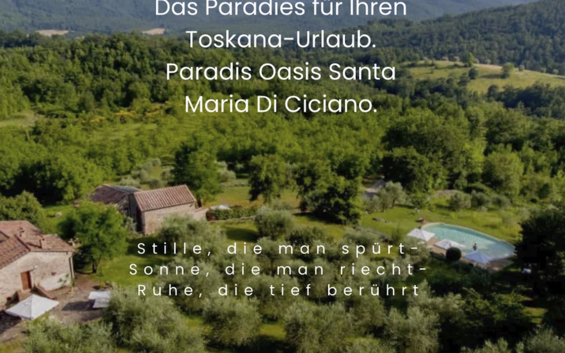 LAUSCHEN SIE DEM KLANG DER STILLE Lauschen Sie dem köstlichen Klang der Stille, dem sanften Rauschen des Winds in den Blättern der Bäume, dem vielfältigen Vogelgesang, speziell der Nachtigall, die hier nachts unterm Sternenhimmel ihre zauberhaften Lieder anstimmt und kommen Sie ganz zu sich zurück!TV/W-LANUm den Frieden und die Erholung zu intensivieren gibt es bei uns keinen TV-Anschluß, dafür aber ein gutes W-LAN Netz, so daß auch ein „Home Office“ Intermezzo grundsätzlich möglich wäre.WE LOVE NATURE- Biologisch/ÖkologischWir verwenden soweit möglich biologisch-organische Produkte und Seifen. Wir achten auf gute Materialien und verzichten soweit möglich auf Plastik. ÜBER UNS CHRISTL E FREDDY:Wir, Christl und Freddy, sind ein lebensfrohes Künstler- und Musikerehepaar aus Deutschland und sind unserem Lebenstraum und Stern gefolgt bis hierher in die schöne Toskana und die Paradiesoase Santa Maria di Ciciano. Die Häuser haben wir mit viel Liebe und Freude individuell und kreativ gestaltet, teilweise auch mit schönen Einzelstücken. Wir möchten Sie bitten sorgsam mit den Dingen umzugehen. Wir leben auch selbst auf dem 4 ha großen Anwesen, das auch bei Belegung beider Häuser mehr als genug Platz bietet für Rückzug und Stille. Wir tun unser Bestes, um Ihnen einen schönen erholsamen Aufenthalt zu ermöglichen.