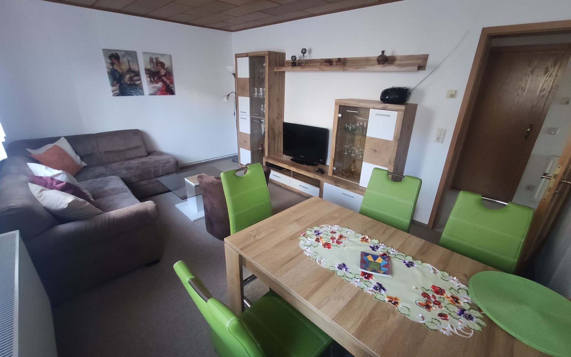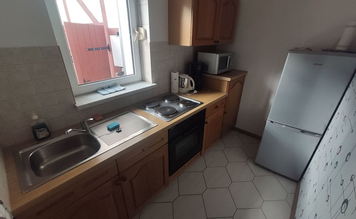 Im Inneren der 60 m² großen Ferienwohnung erwartet Sie alles, was Sie für einen entspannten Aufenthalt benötigen. Neben einem einladenden Wohnraum mit einer Doppelbettcouch finden Gäste zwei gemütliche Schlafzimmer – eines mit einem Doppelbett und das andere mit zwei Einzelbetten – vor. Für Komfort sorgen zudem die vorhandene Waschmaschine zur alleinigen Nutzung und praktische Annehmlichkeiten wie eine Filter-Kaffeemaschine und ein Wasserkocher.
