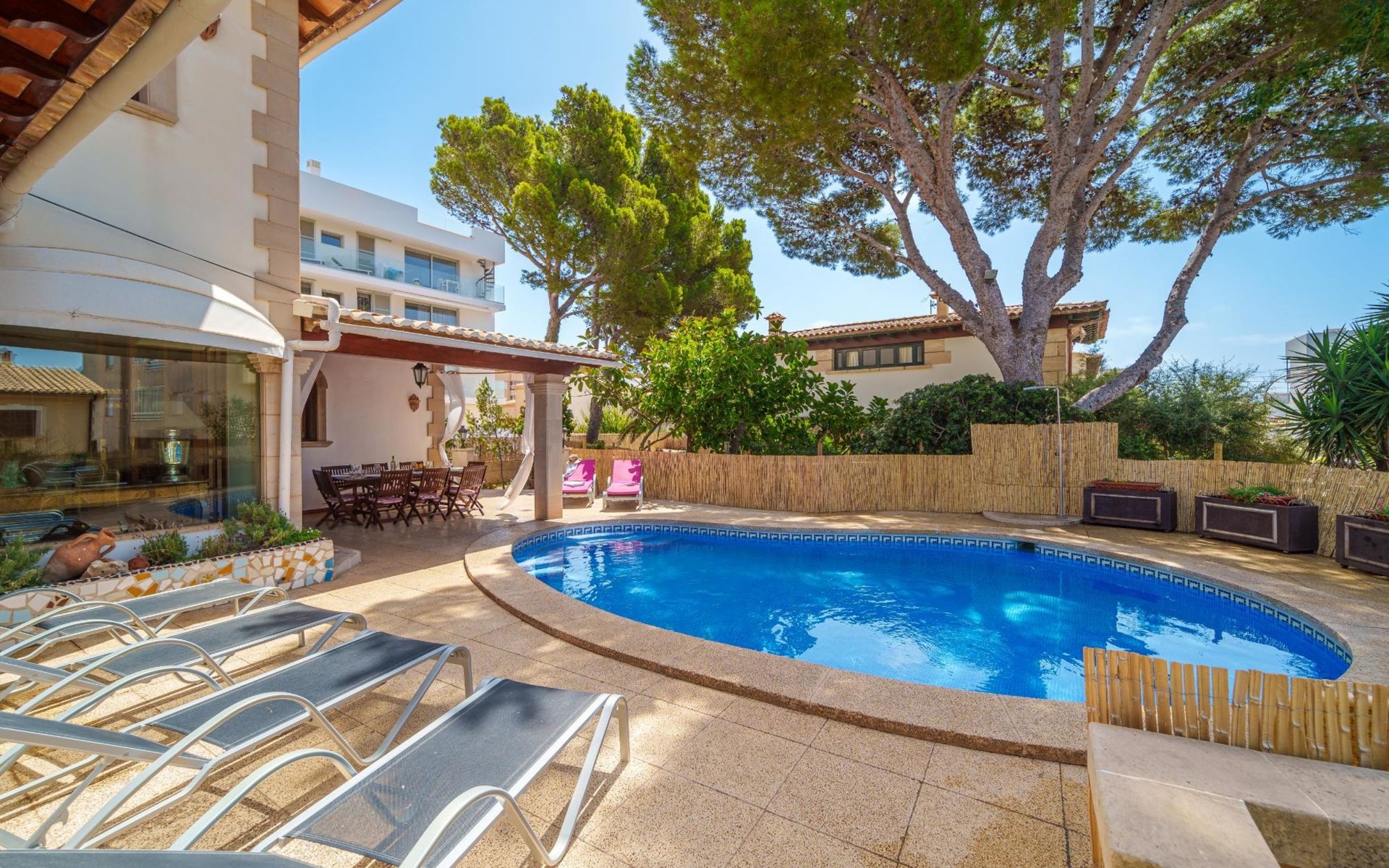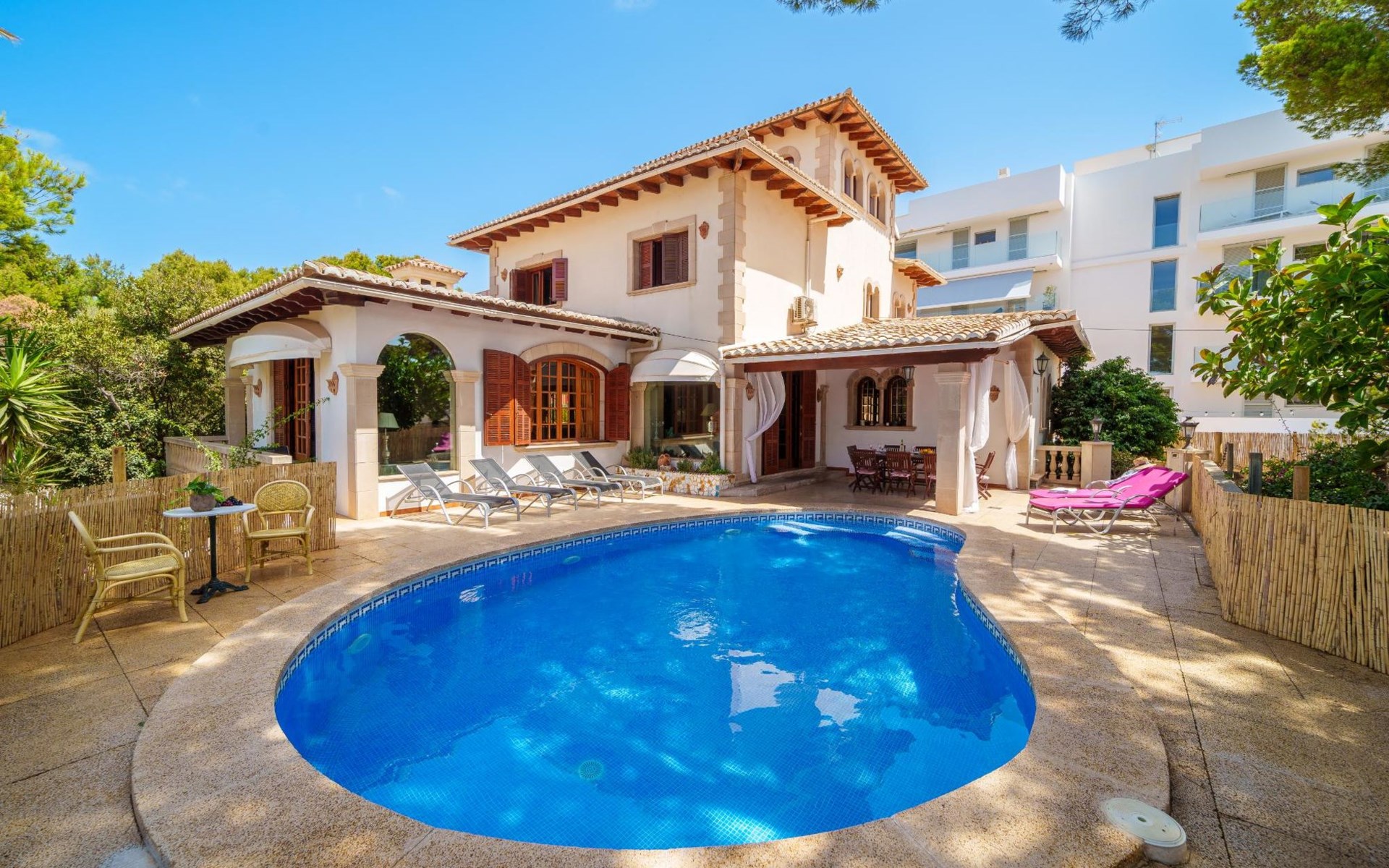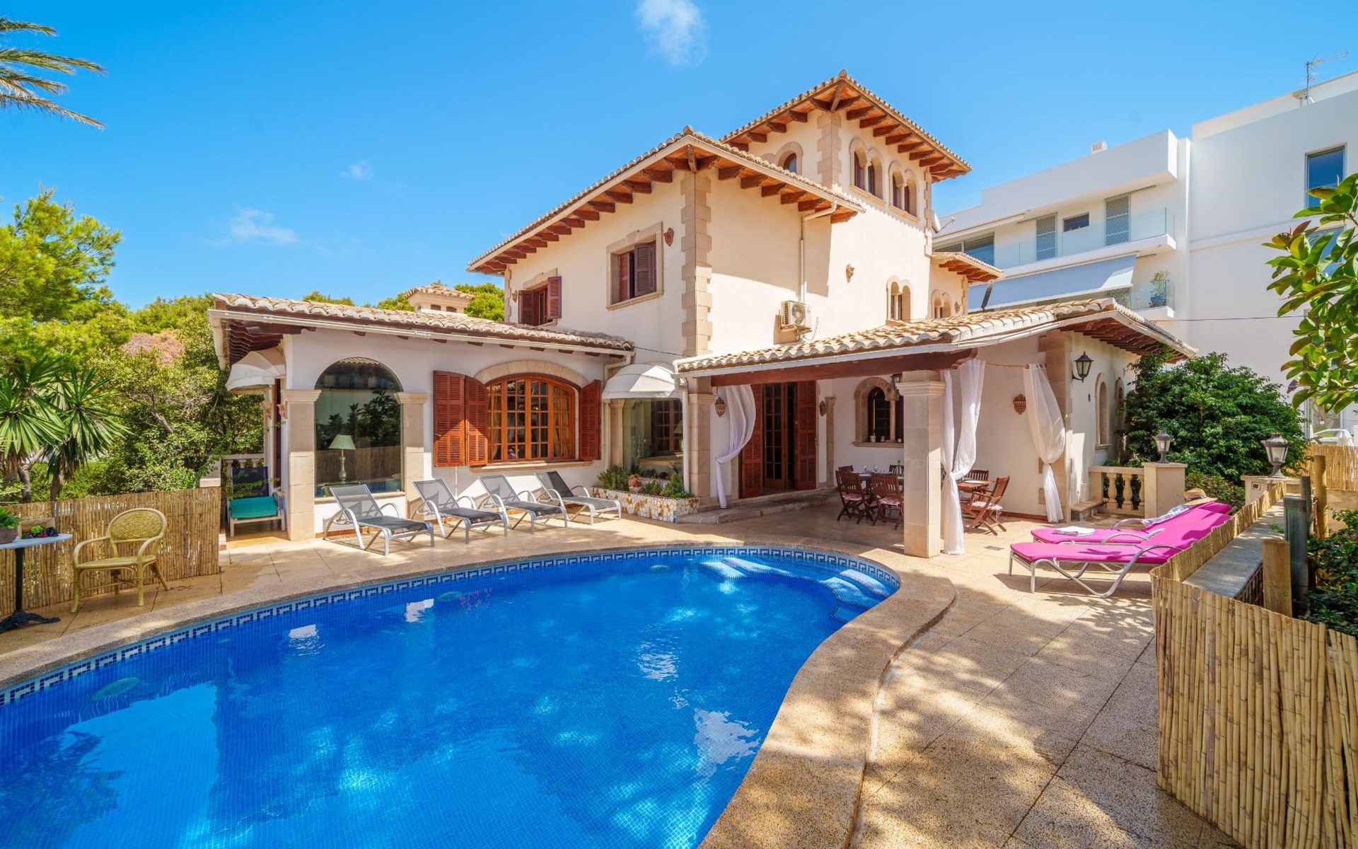 Grosses Haus "Villa Munar I", auf 3 Stockwerken. 700 m vom Zentrum von Cala Ratjada, 31 km vom Zentrum von Manacor, 45 km vom Zentrum von Alcudia, in einem Wohnquartier, 1 km vom Meer. Zur Alleinbenutzung: Grundstück 600 m2 (eingezäunt), Schwimmbad nierenförmig (7 x 5 m, saisonale Verfügbarkeit: 01.Jan. - 31.Dez.). Aussendusche, öffentliche Parkplätze auf der Strasse. Einkaufsgeschäft, Restaurant 300 m, Bushaltestelle "Cala Ratjada" 700 m, Bahnstation "Manacor" 33 km, Sandstrand "Cala Agulla" 1 km. Jacht-Hafen 700 m. Der Besitzer akzeptiert keine Gruppen. Der Besitzer akzeptiert keine Jugendgruppen. Die Nachbarschaft ist sehr lärmempfindlich. Ruhe und gutes Benehmen wird erwartet.