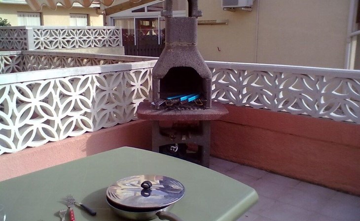 Terrasse mit Tisch und Stühlen. Traditionelles Barbecue. Ultraschnelle WLAN-Verbindung (SFR)