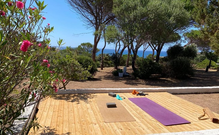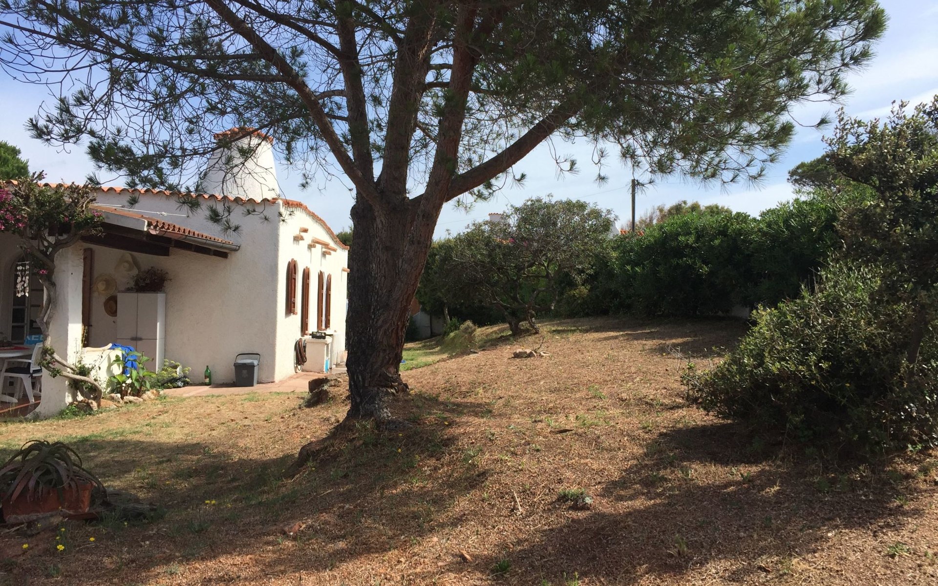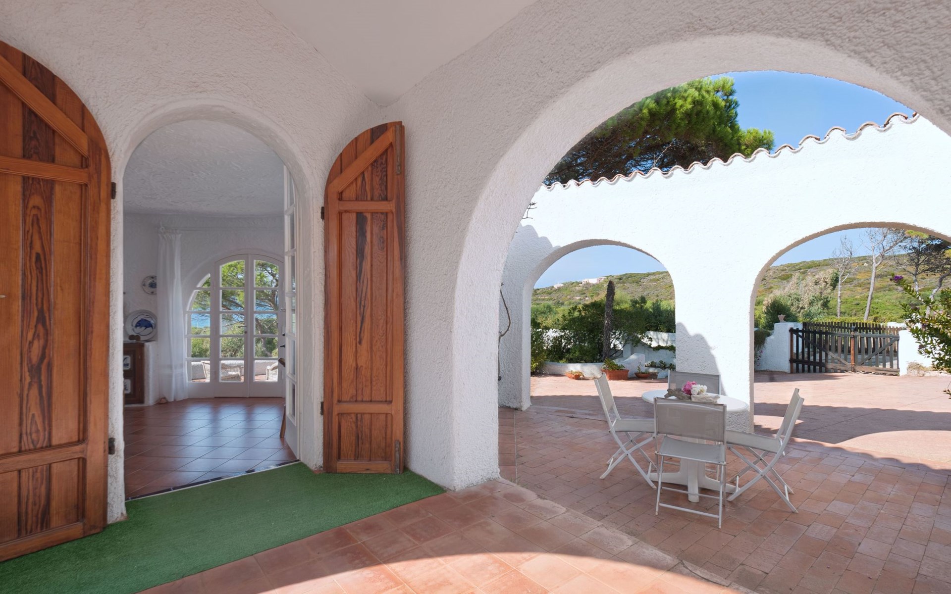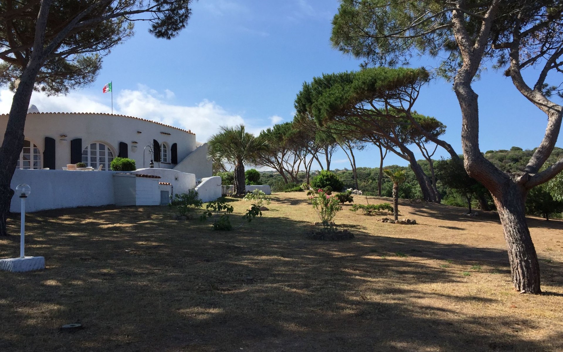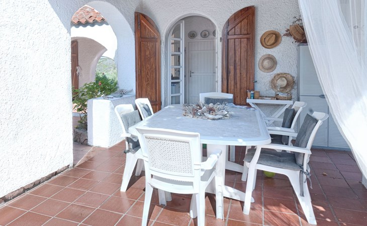 Die Villa im maurischen Stil aus den 1960er Jahren befindet sich im Zentrum der herrlichen Baia la Marinedda, 300 Meter vom gleichnamigen roten Sandstrand entfernt, und bietet ein außergewöhnliches Panorama mit unvergesslichen Sonnenuntergängen. Der umliegende Garten ist etwa 4000 Quadratmeter groß, in dem aromatische Pflanzen wie Myrte, Rosmarin, Erdbeerbaum und Wacholder wild wachsen, mit schattigen Bereichen, die von jahrhundertealten Meereskiefern beschattet werden, die die heißen sonnigen Nachmittage mildern.