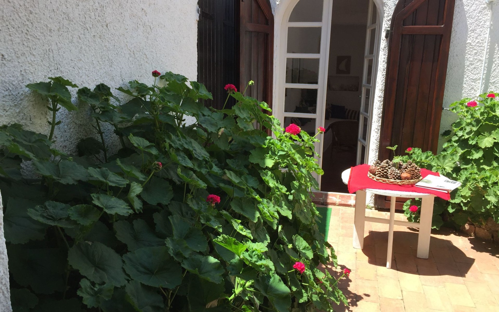 Vor der Küche gibt es eine sehr bequeme, geschützte Veranda (Sunny patio) für den Ess-/Frühstücksbereich, die auch an unglücklichen Tagen mit kurzen Regenfällen genutzt werden kann.