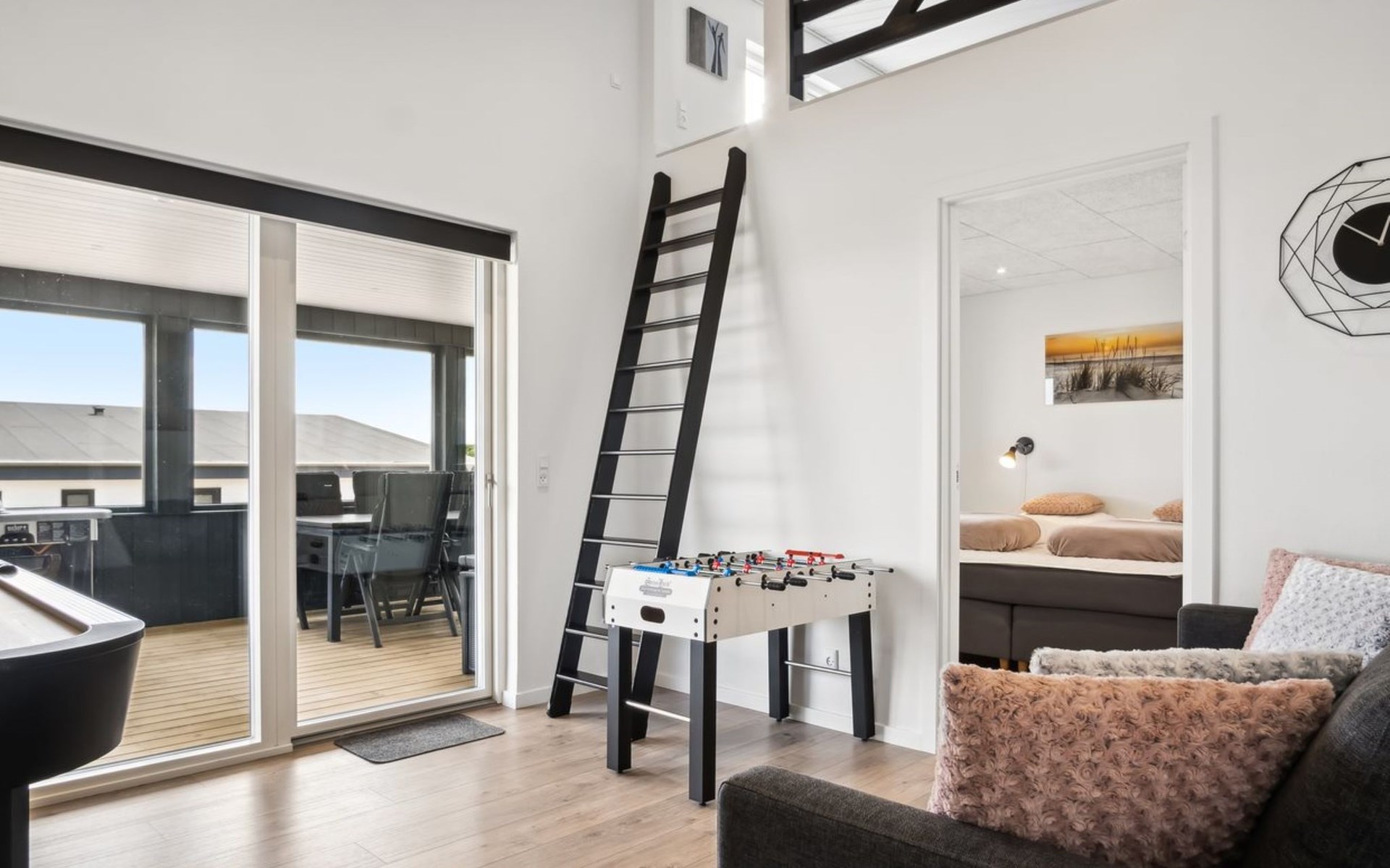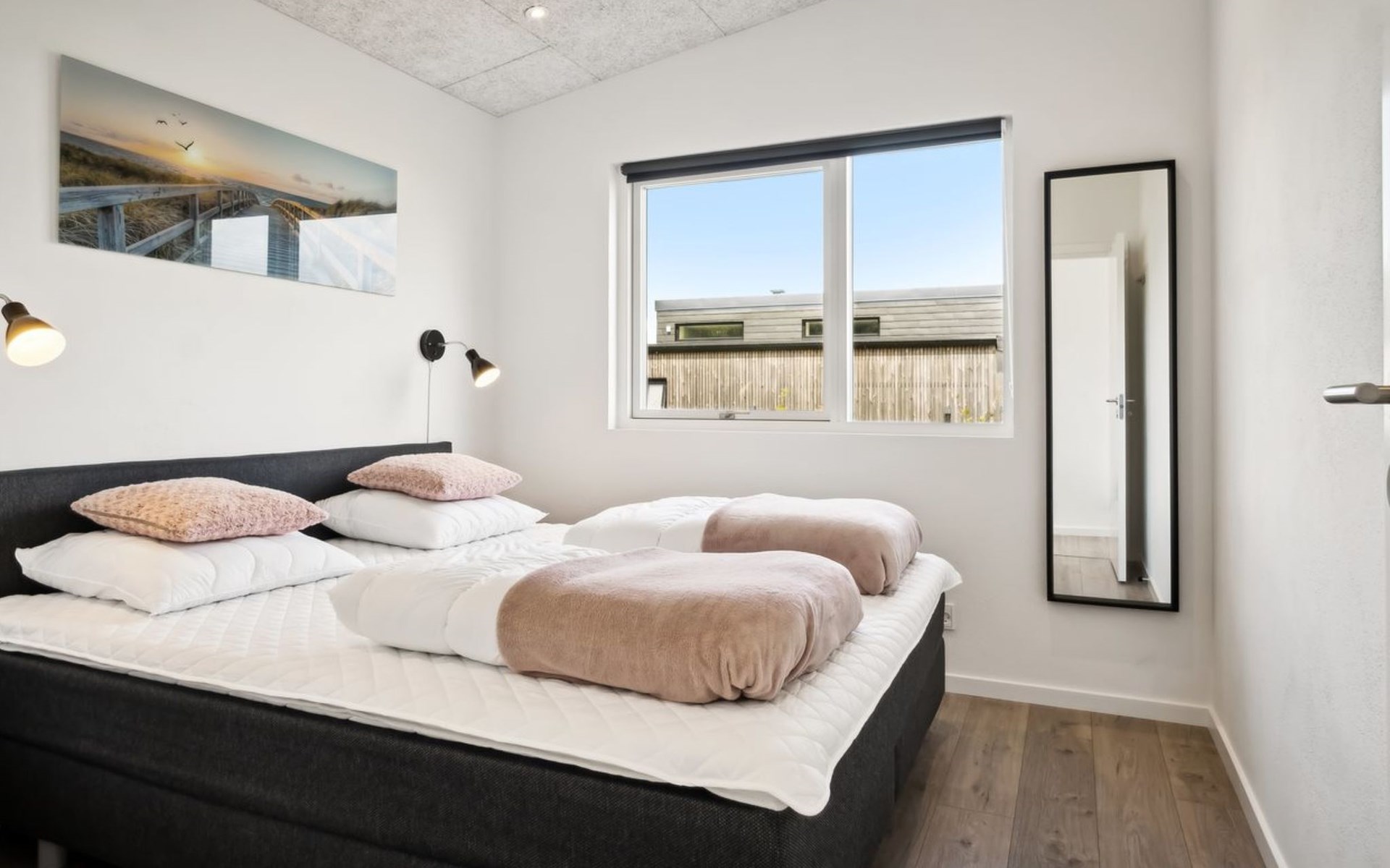 Einfamilienhaus, Baujahr 2024. 500 m vom Meer. Zur Alleinbenutzung: Grundstück 900 m2, gepflegter Garten. Terrasse (50 m2), Grill. Im Hause: Sauna, Trampolin, Waschmaschine, Wäschetrockner. Parkplatz beim Haus. Lebensmittelgeschäft 1 km. Der Besitzer akzeptiert keine Jugendgruppen.