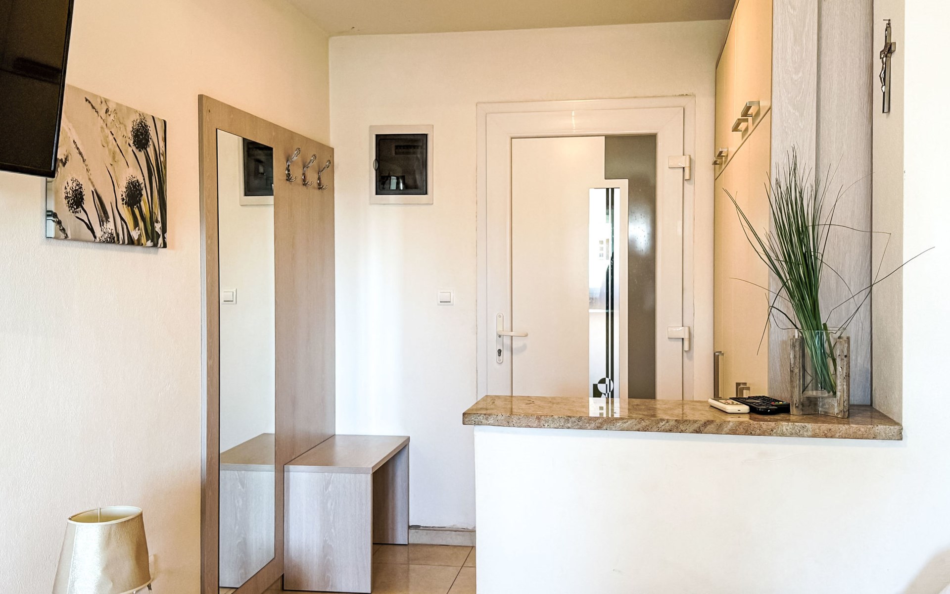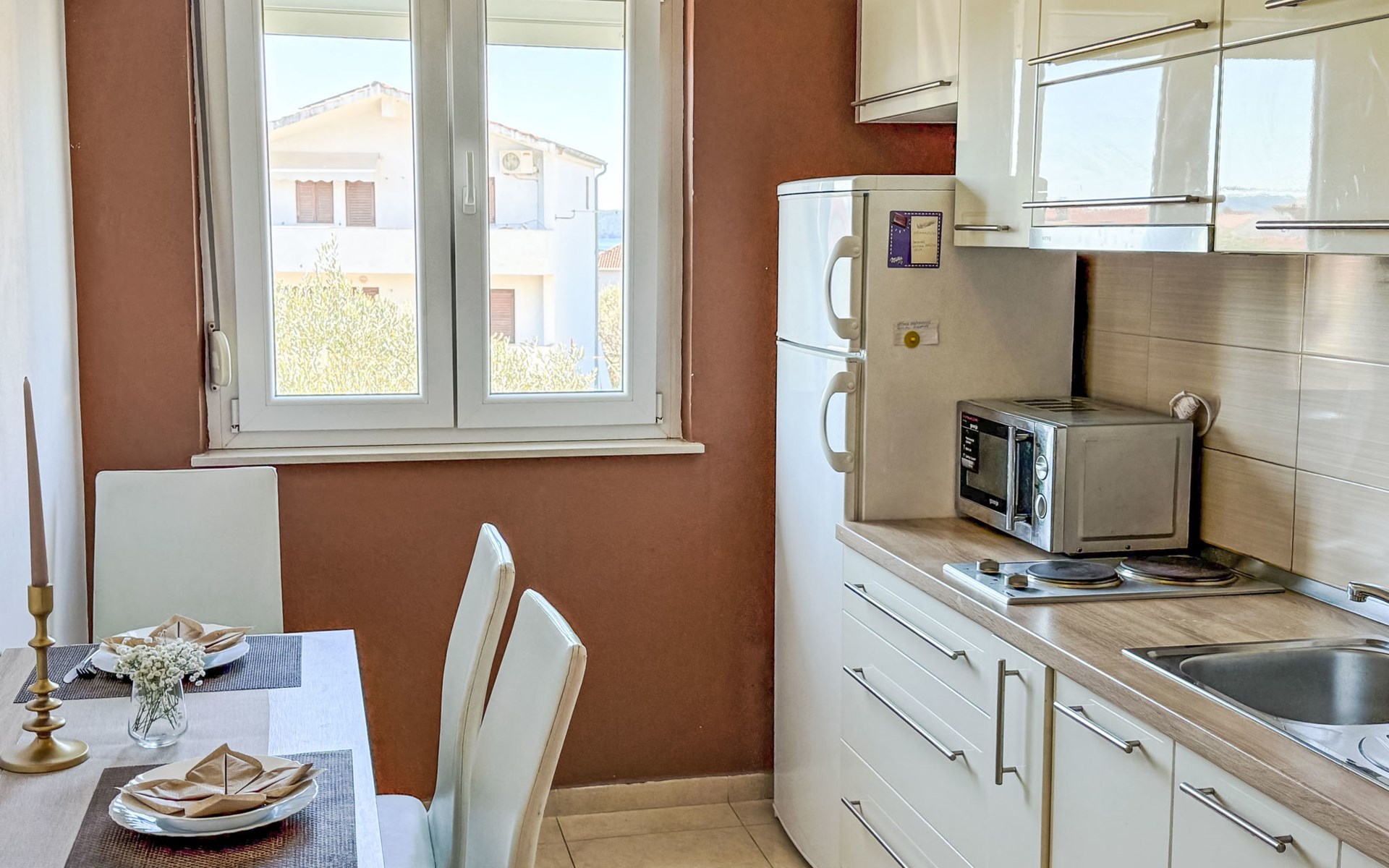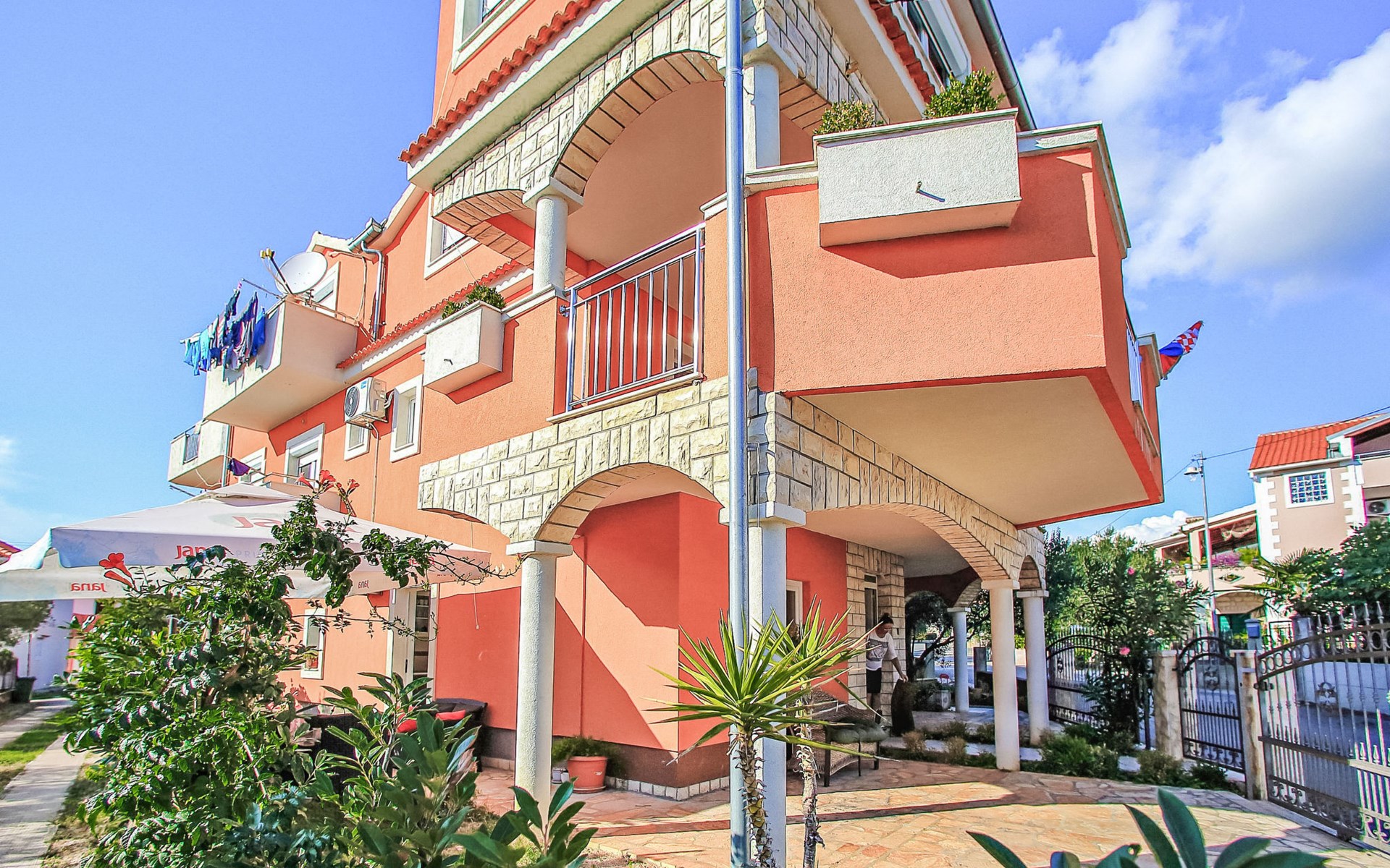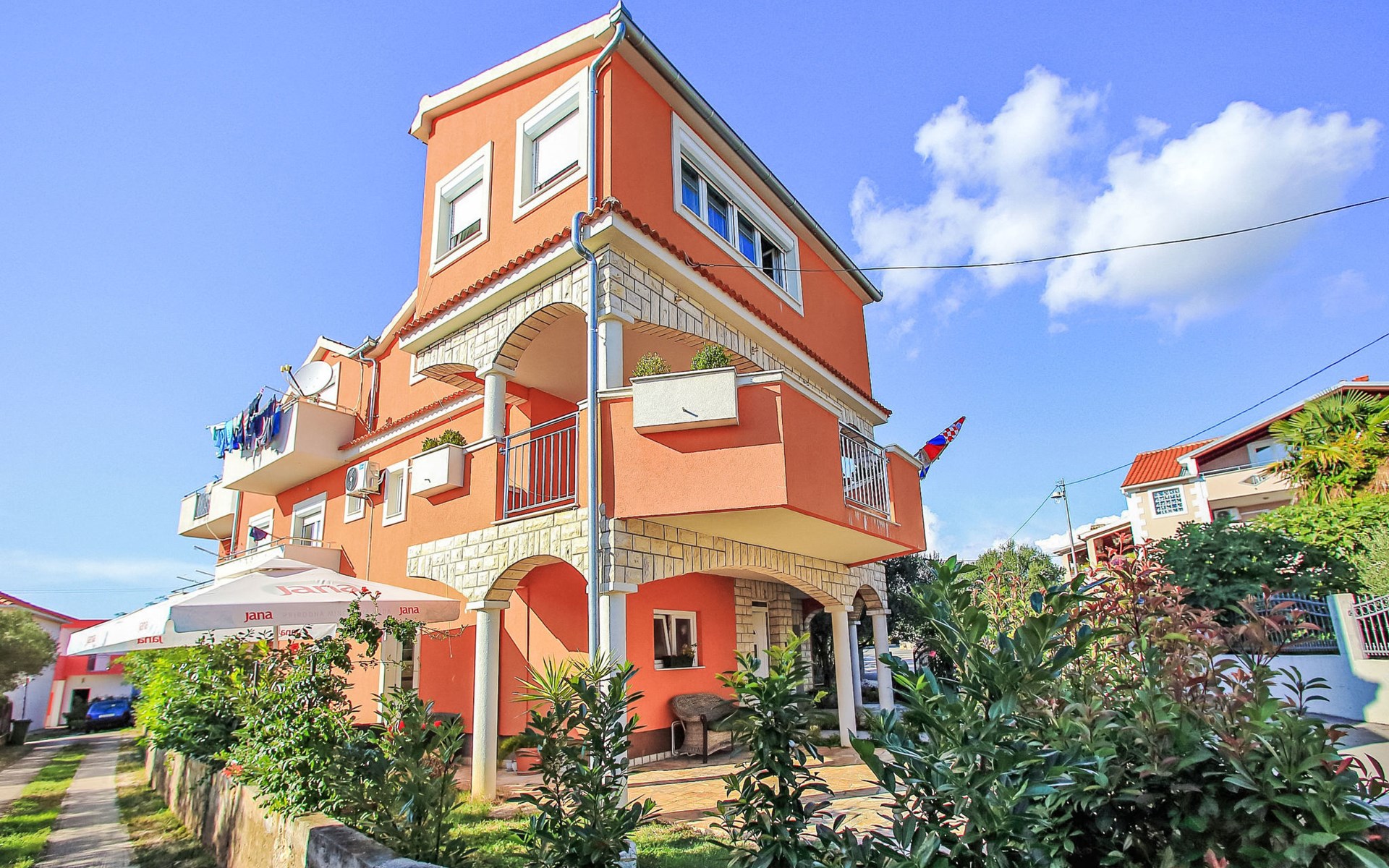 Bibinje 5 km von Zadar: Mehrfamilienhaus "Nino". 500 m vom Zentrum von Bibinje, sonnige Lage, 330 m vom Meer, 400 m vom Strand. Zur Mitbenutzung: Grundstück 500 m2. Im Hause: Internetzugang. Parkplatz. Einkaufsgeschäft 50 m, Restaurant, Bushaltestelle 500 m, Kieselstrand 400 m. Tennis 6 km. Bekannte Seen in der Umgebung sind gut erreichbar: Vransko jezero 28 km. Bitte beachten: Flugplatz 13 km vom Haus.