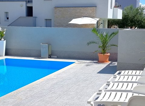 Žaborić 3 km von Brodarica: Mehrfamilienhaus "Andrea". 1 km vom Zentrum von Žaborić, 8 km vom Zentrum von Šibenik, 14 km vom Zentrum von Primošten, ruhige, sonnige Lage, 60 m vom Meer, 60 m vom Strand, in einer Sackgasse. Zur Mitbenutzung: Aussendusche, Tischtennis, Grill. Im Hause: Internetzugang. Parkplatz beim Haus auf dem Grundstück. Einkaufsgeschäft 900 m, Einkaufszentrum 8 km, Restaurant 1 km, Bushaltestelle 400 m, betonierter Strand 60 m.