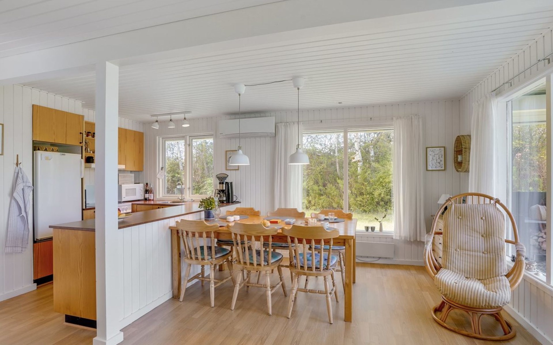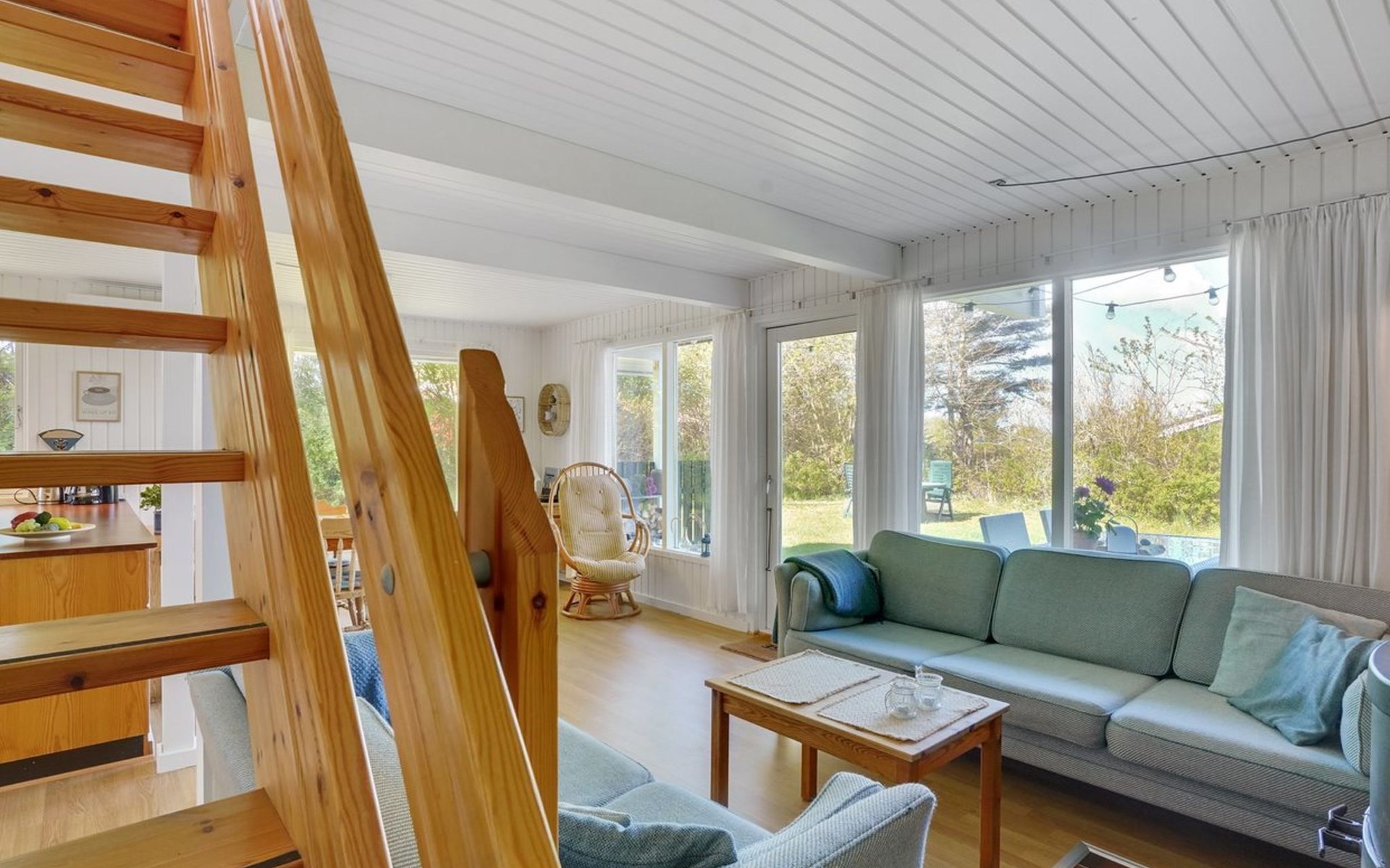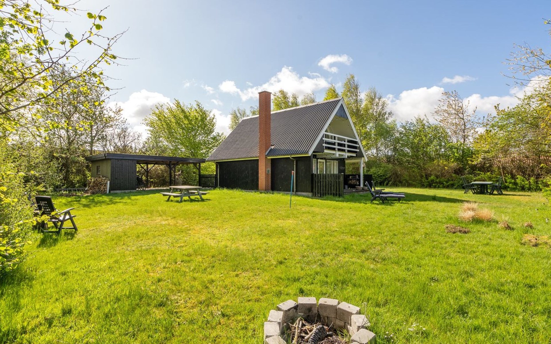 Einfamilienhaus, Baujahr 1984. Zur Alleinbenutzung: naturbelassenes Grundstück 1'340 m2. Grill, Parkplatz beim Haus. Lebensmittelgeschäft 2.5 km. Golfplatz 12 km. Der Besitzer akzeptiert keine Jugendgruppen.