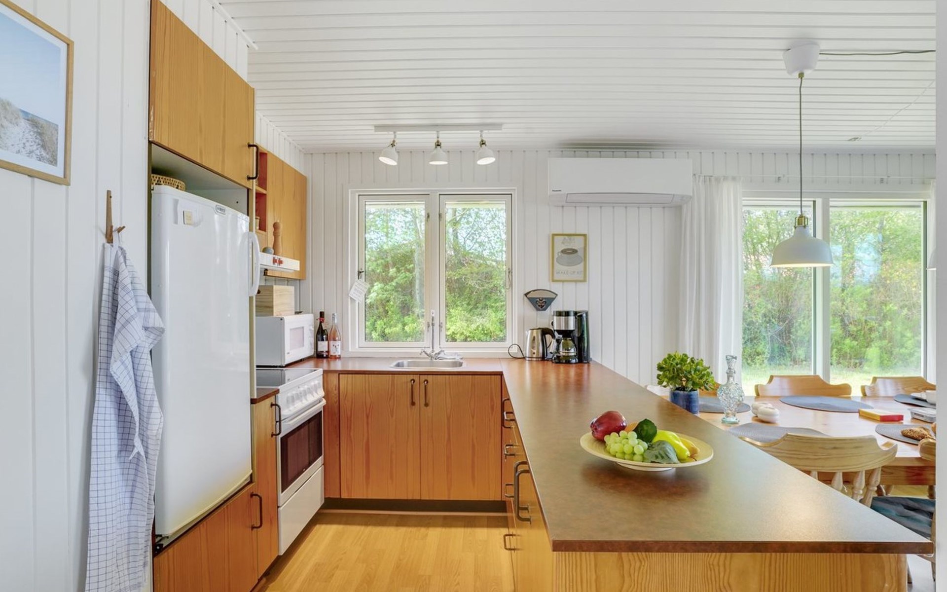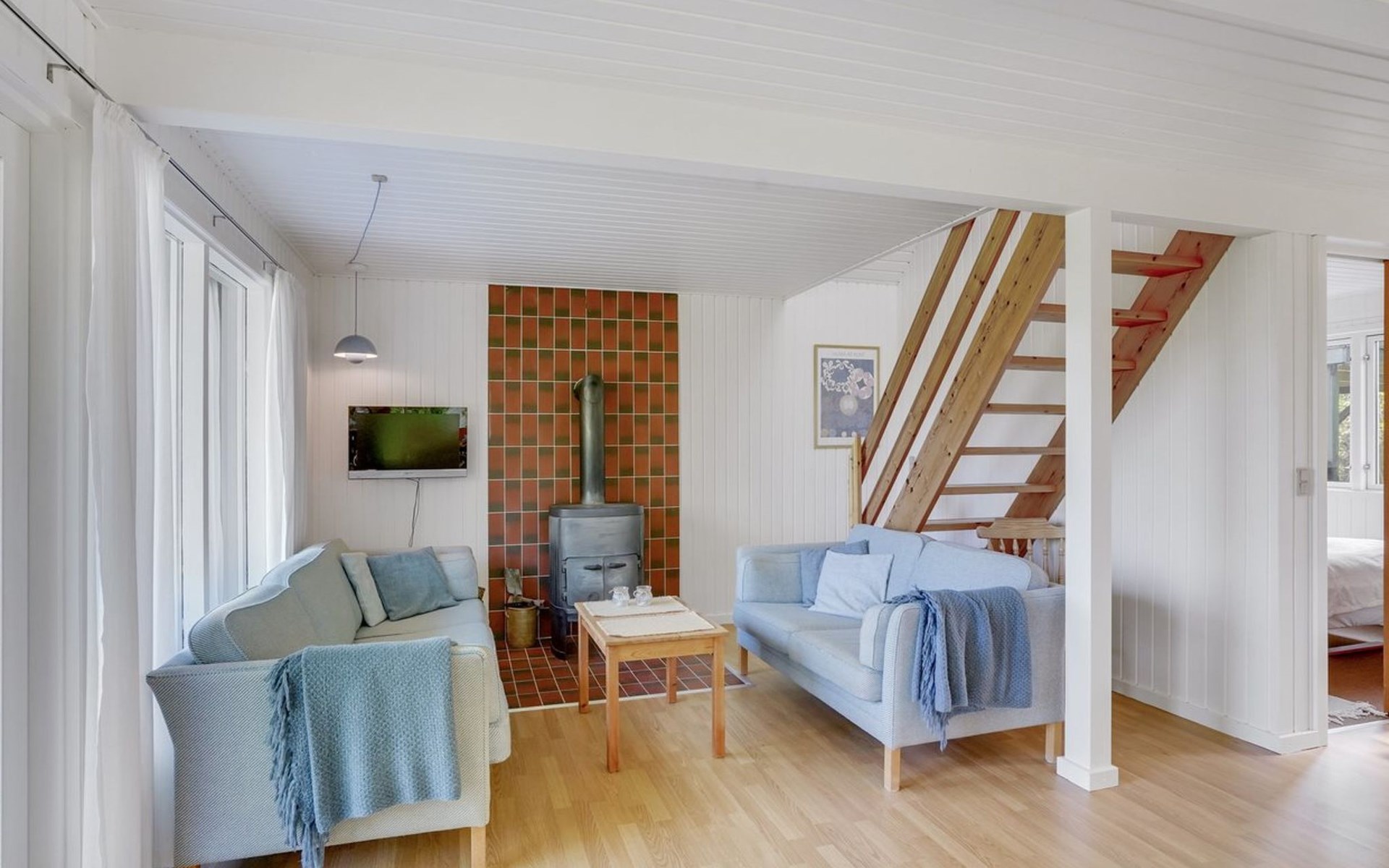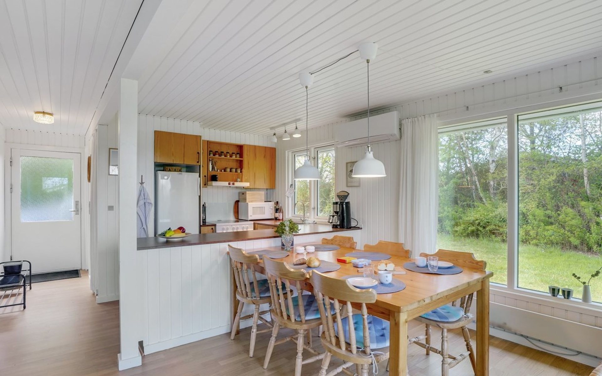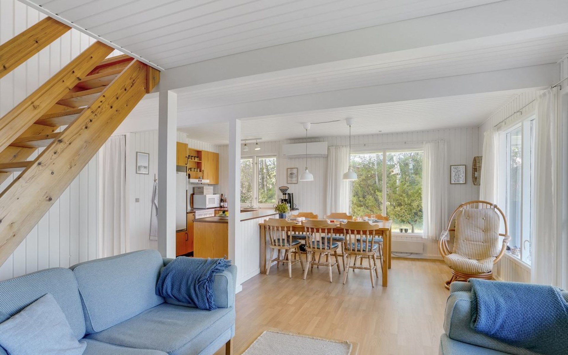 Einfamilienhaus, Baujahr 1984. Zur Alleinbenutzung: naturbelassenes Grundstück 1'340 m2. Grill, Parkplatz beim Haus. Lebensmittelgeschäft 2.5 km. Golfplatz 12 km. Der Besitzer akzeptiert keine Jugendgruppen.