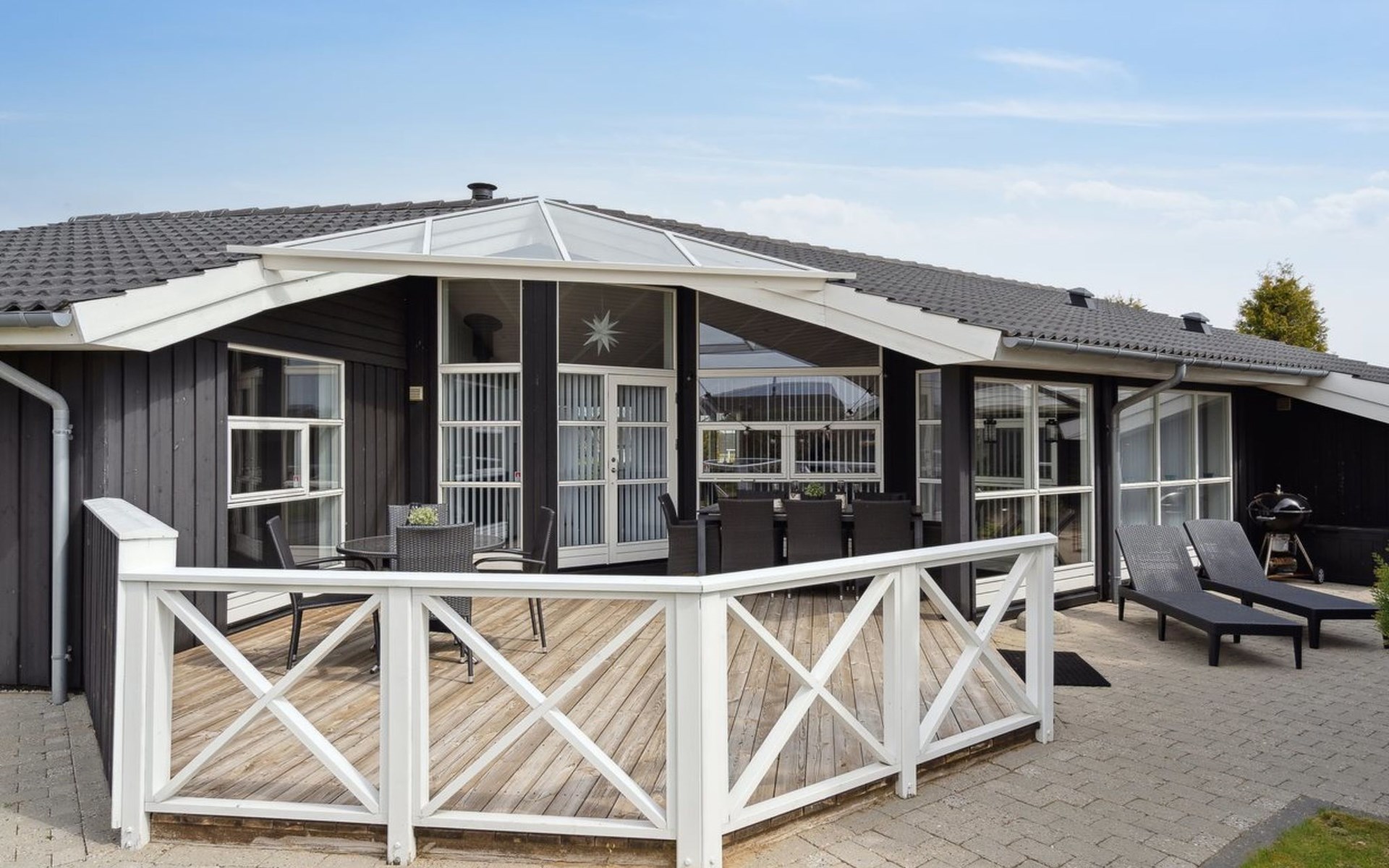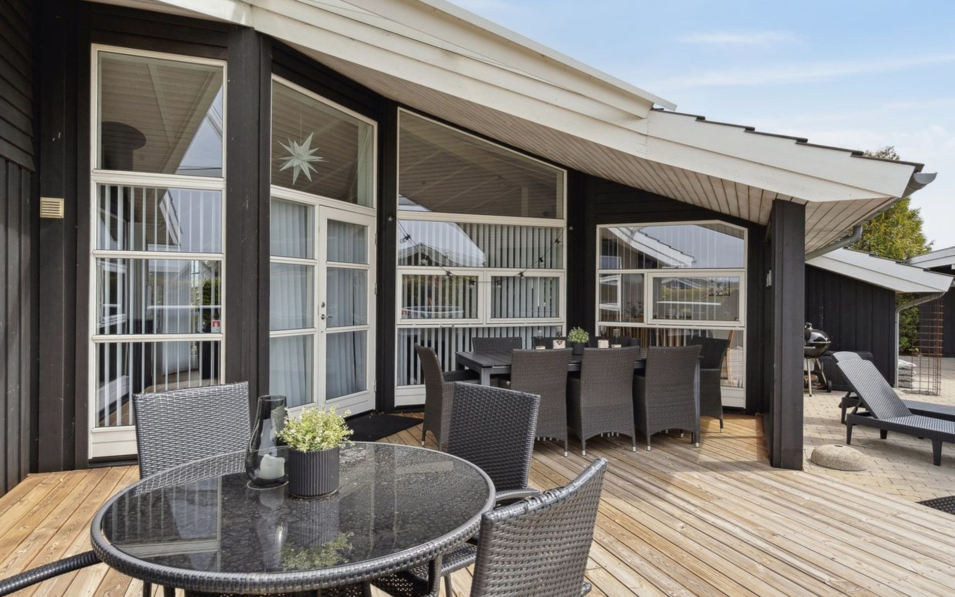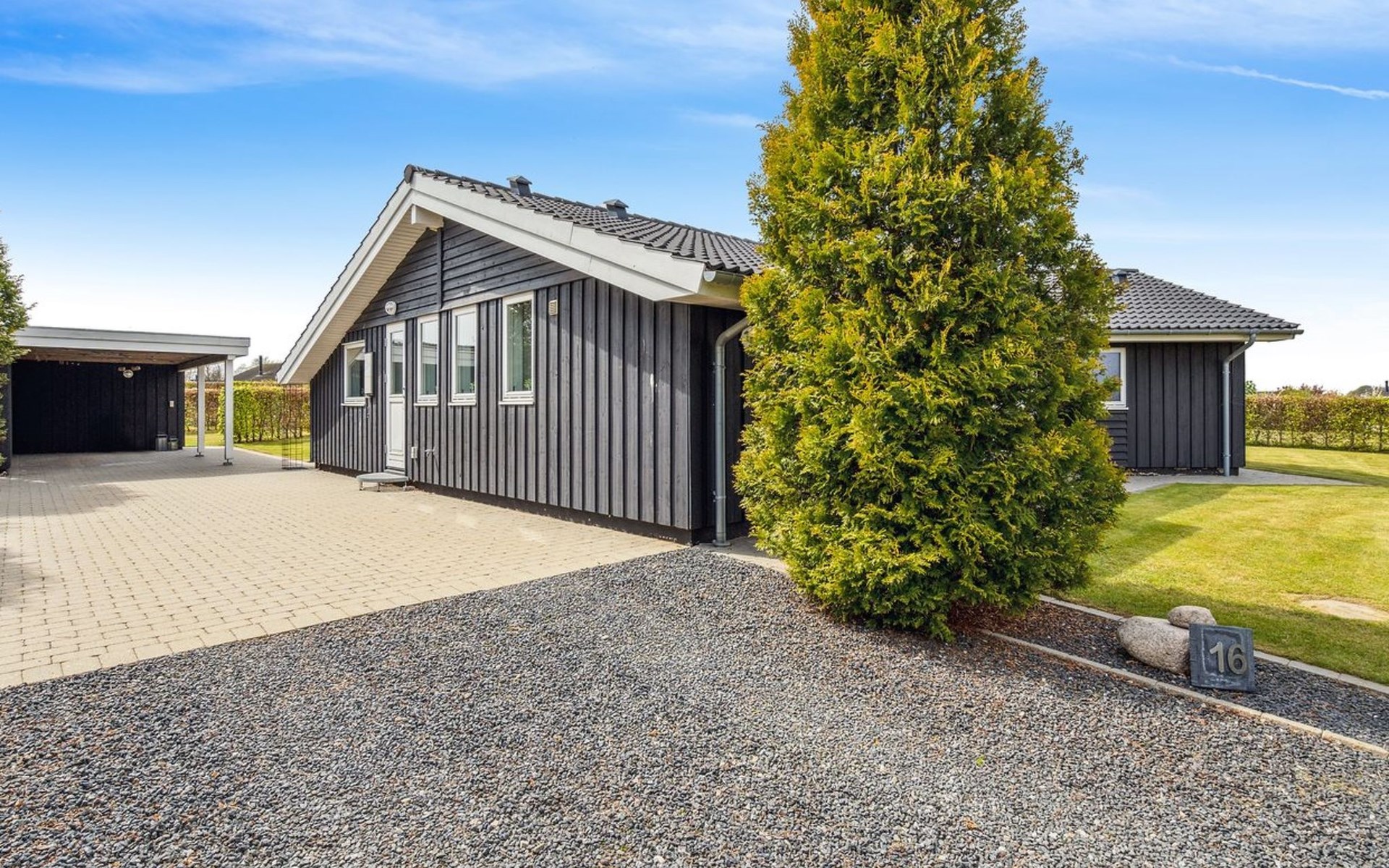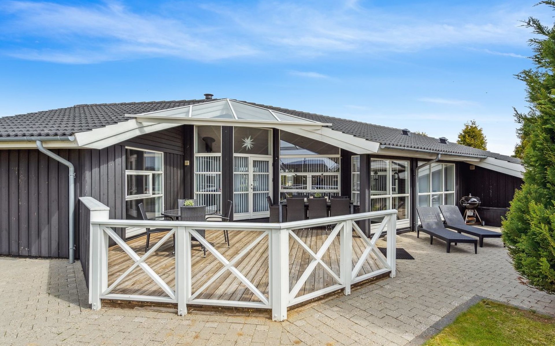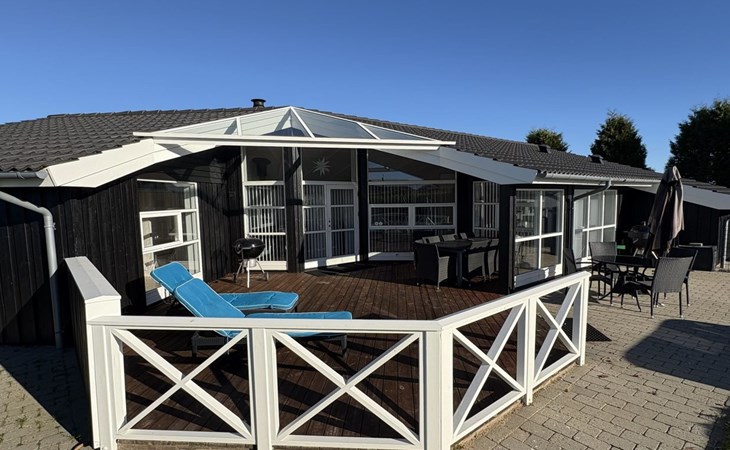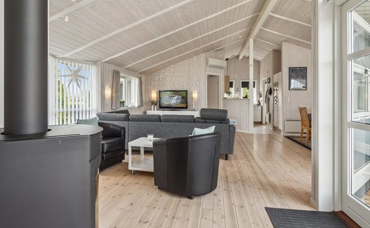 Einfamilienhaus, Baujahr 2007. 400 m vom Meer. Zur Alleinbenutzung: Grundstück 900 m2, gepflegter Garten. Grill, Kinderspielplatz (Schaukel). Im Hause: Sauna, Waschmaschine. Parkplatz beim Haus. Carport. Lebensmittelgeschäft 4 km. Golfplatz 9 km. Der Besitzer akzeptiert keine Jugendgruppen.