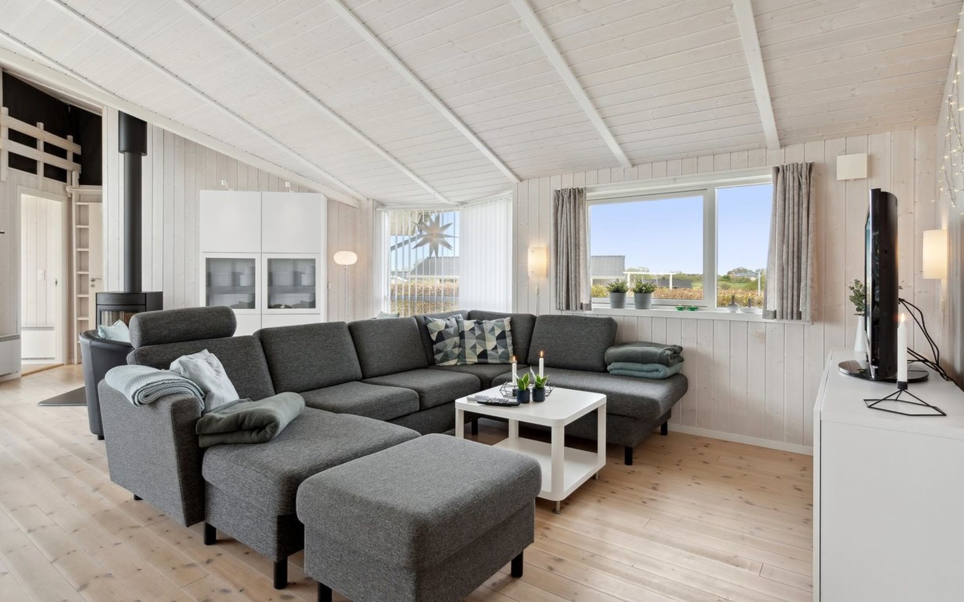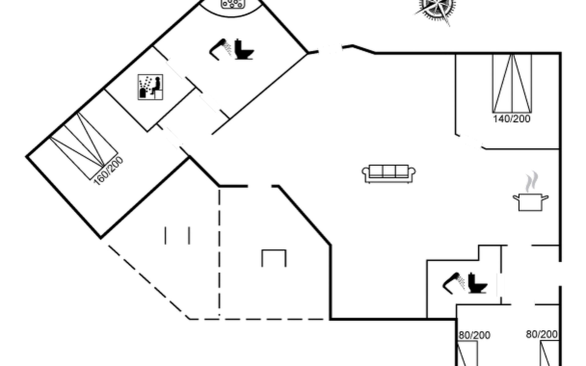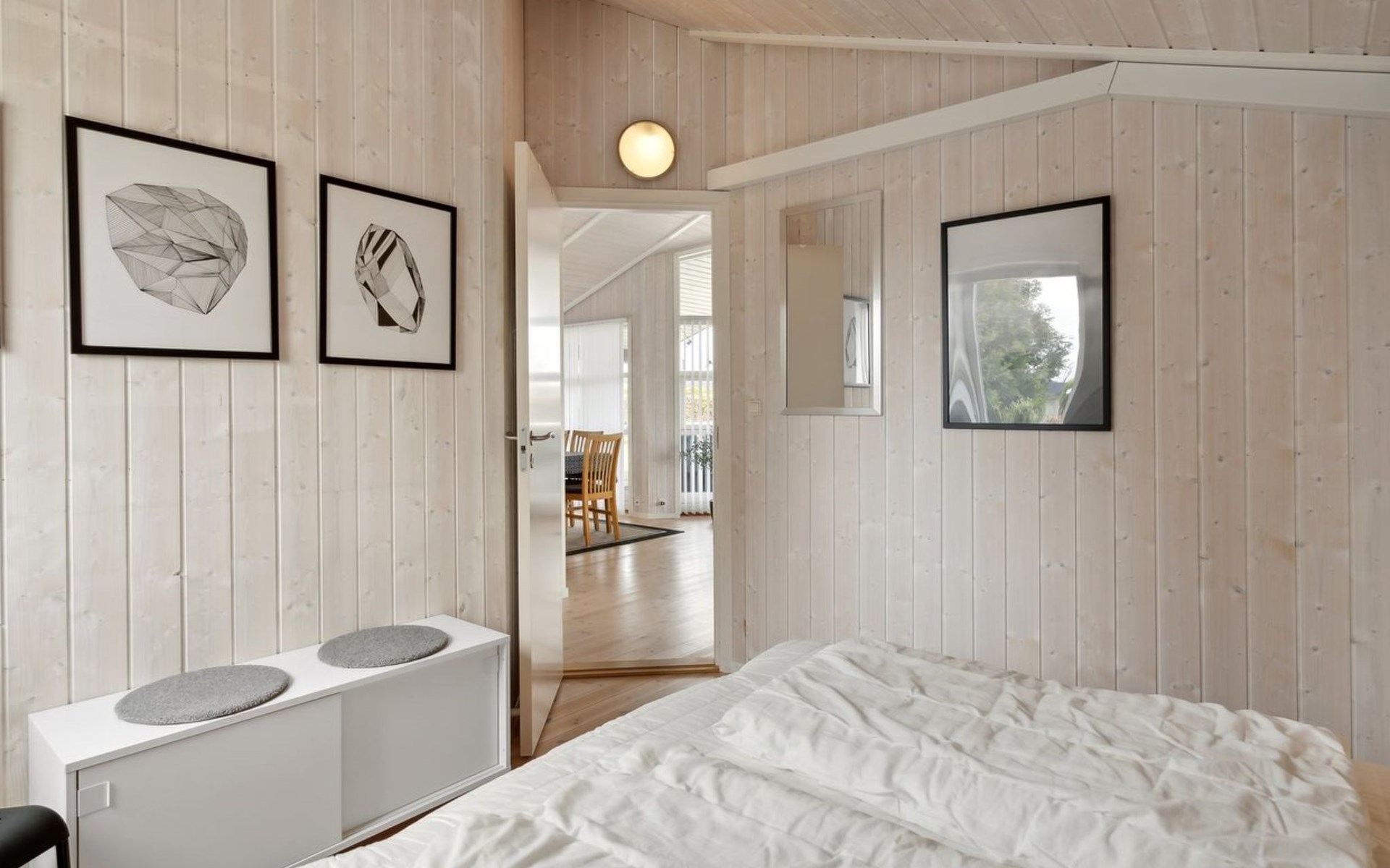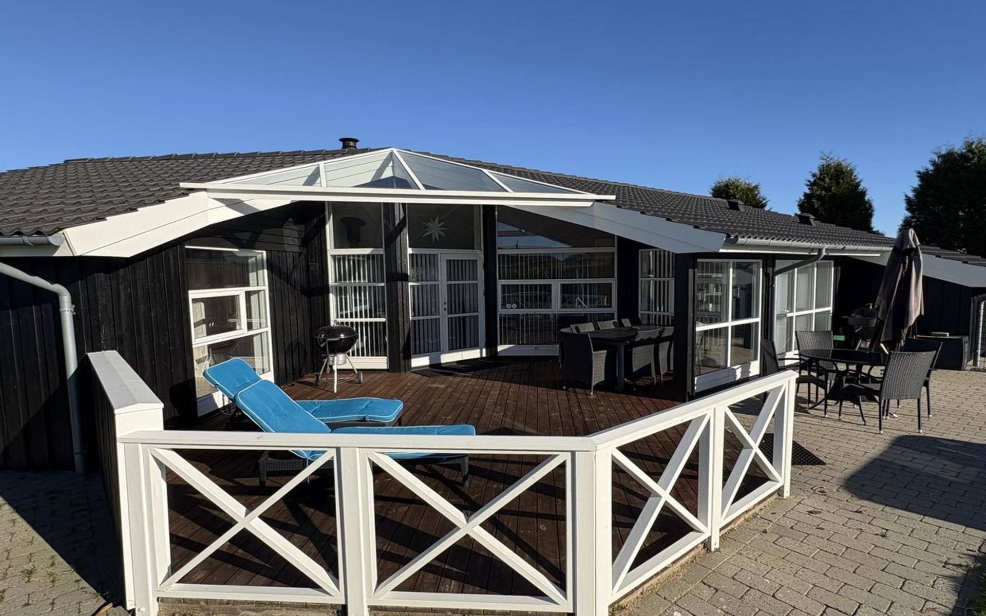 Einfamilienhaus, Baujahr 2007. 400 m vom Meer. Zur Alleinbenutzung: Grundstück 900 m2, gepflegter Garten. Grill, Kinderspielplatz (Schaukel). Im Hause: Sauna, Waschmaschine. Parkplatz beim Haus. Carport. Lebensmittelgeschäft 4 km. Golfplatz 9 km. Der Besitzer akzeptiert keine Jugendgruppen.