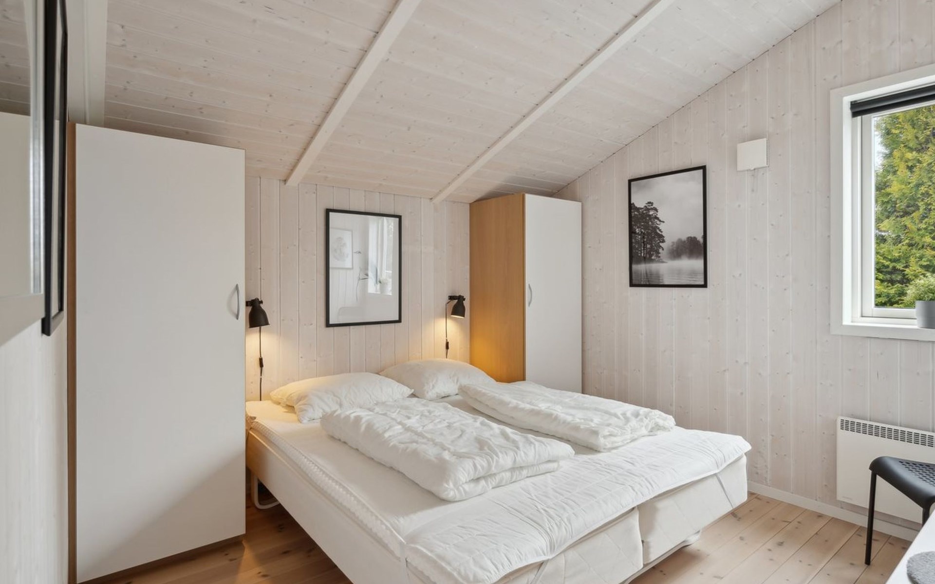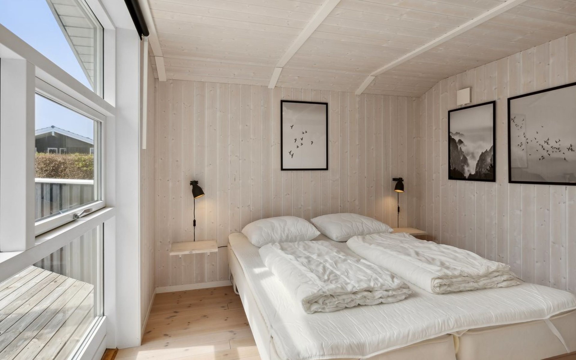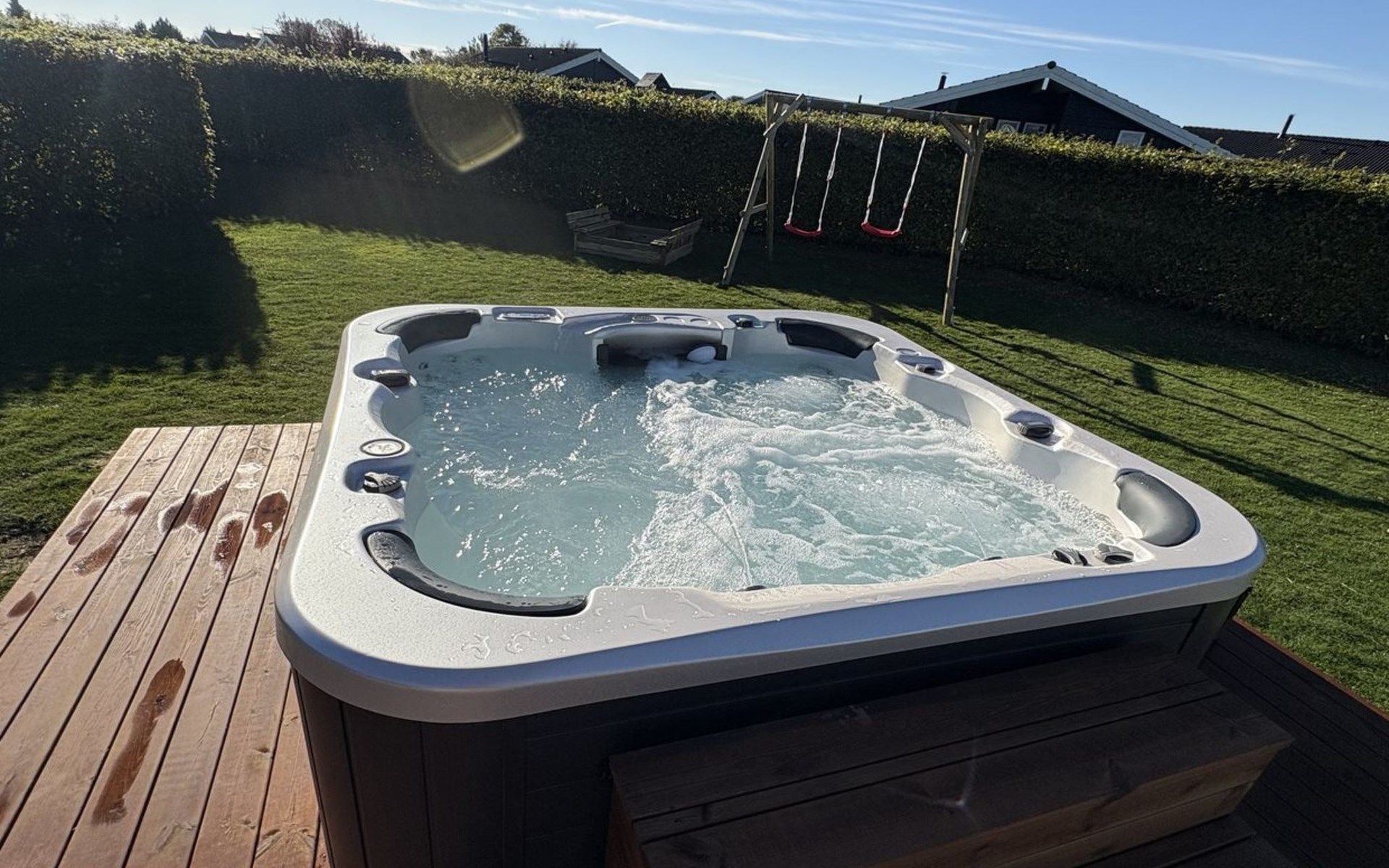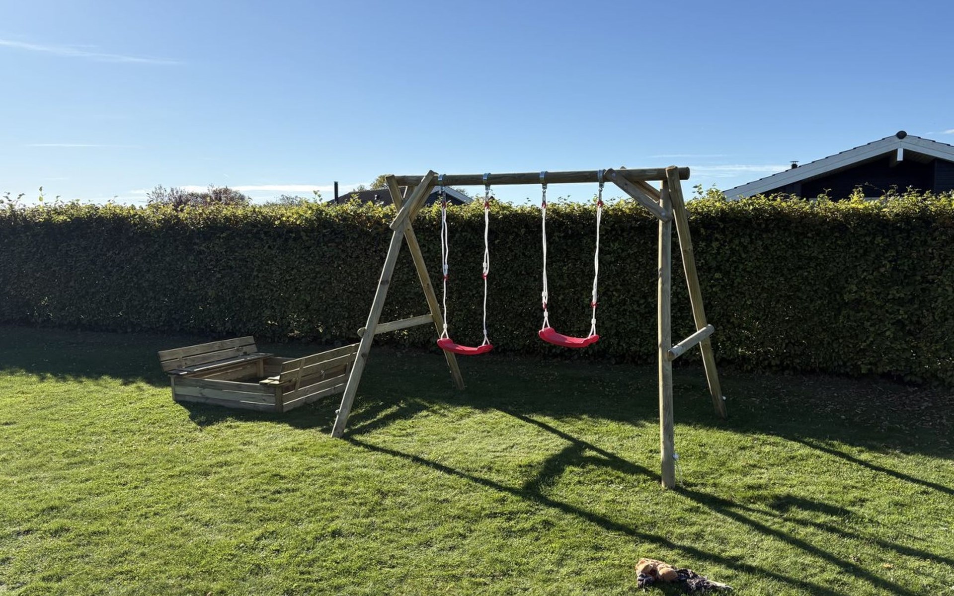 Einfamilienhaus, Baujahr 2007. 400 m vom Meer. Zur Alleinbenutzung: Grundstück 900 m2, gepflegter Garten. Grill, Kinderspielplatz (Schaukel). Im Hause: Sauna, Waschmaschine. Parkplatz beim Haus. Carport. Lebensmittelgeschäft 4 km. Golfplatz 9 km. Der Besitzer akzeptiert keine Jugendgruppen.