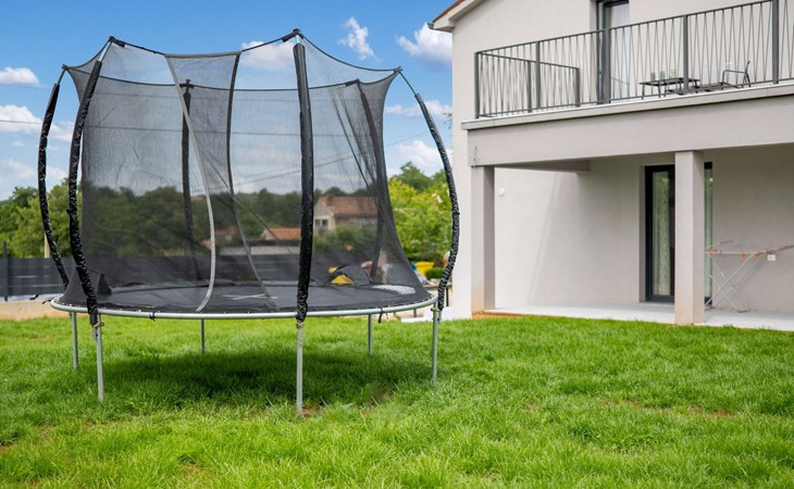 Ideal auch für Kinder: Großzügiger Garten mit Pool, Sandkasten, Trampolin, Schaukel, Fußballtore, Kinderspielsachen