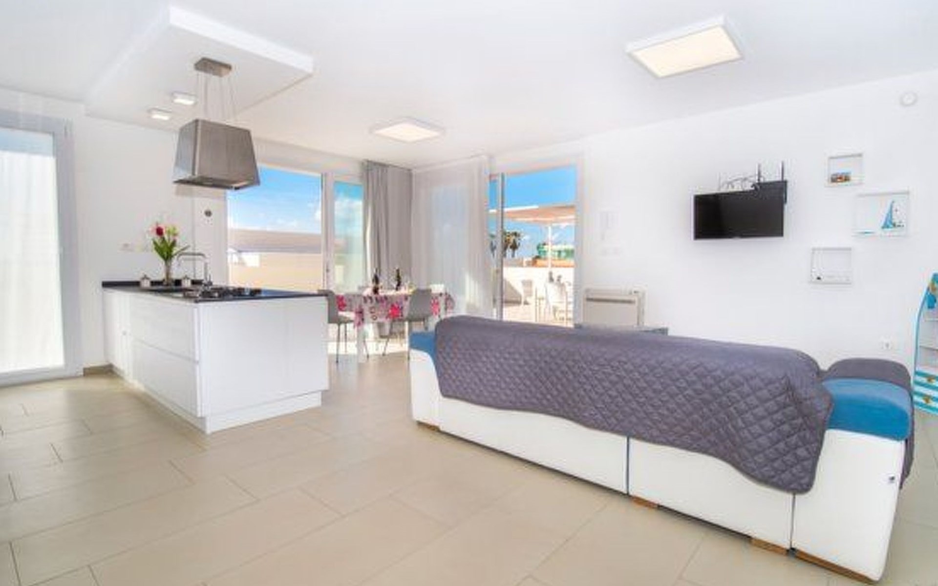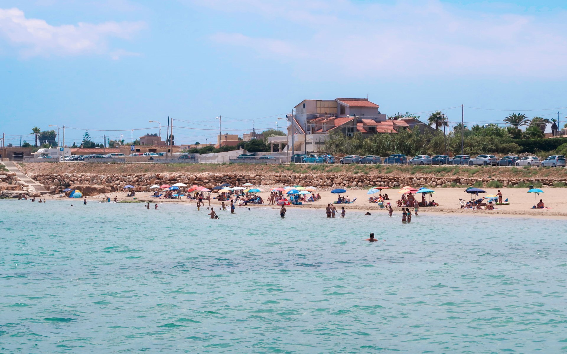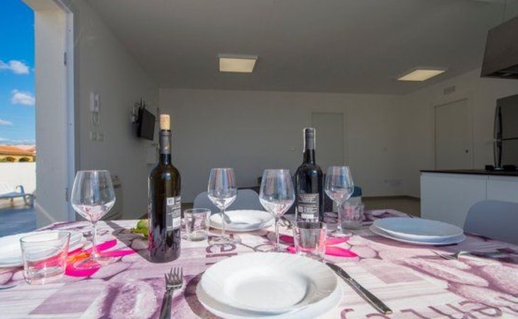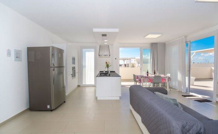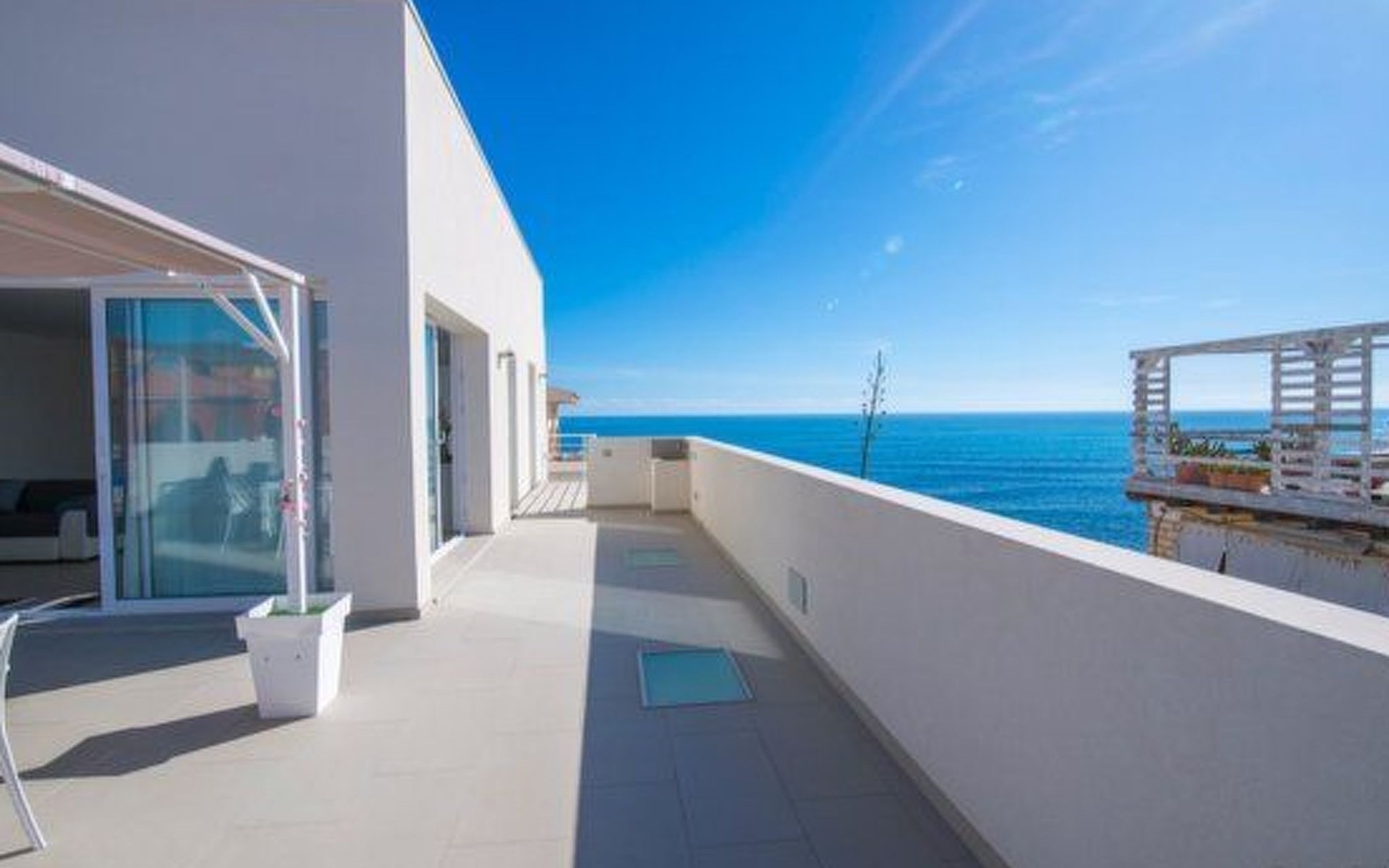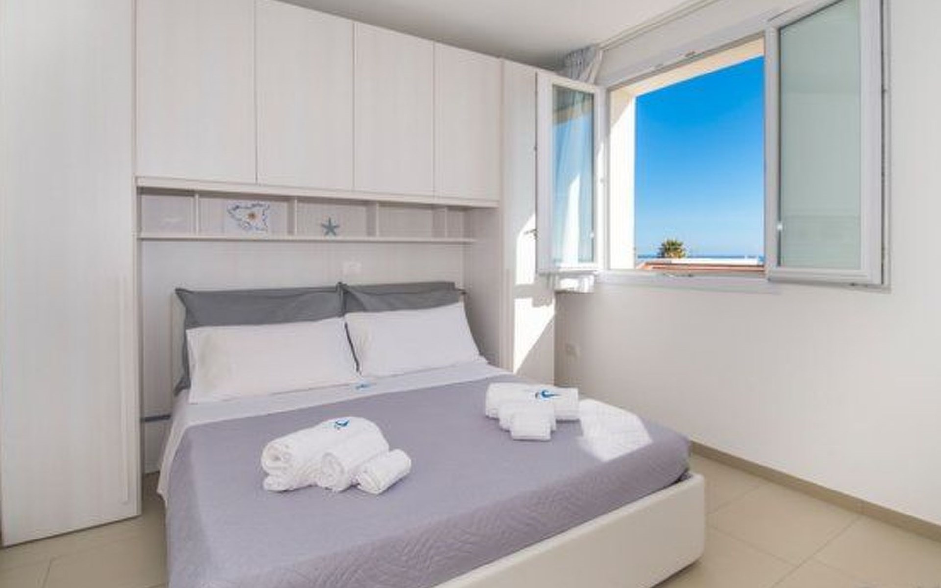 Die Onde di Sicilia Suite, eine Villa mit vier völlig unabhängigen Wohnungen, befindet sich im ersten Stock und verfügt über eine große Terrasse und einen herrlichen Blick aufs Meer. Sie besteht aus einer voll ausgestatteten Küche, einer Kochecke mit zentraler Kochinsel und großen Fenstern mit Blick aufs Meer, einem Entspannungsbereich mit Fernseher und einem großen Sofa. Der Schlafbereich besteht aus drei Doppelzimmern, eines davon mit eigenem Bad und Dusche. Jede Wohnung in der Struktur (3 Wohnungen im Erdgeschoss und 1 Suite im ersten Stock) verfügt über einen eigenen Parkplatz für 1 Fahrzeug auf dem Gemeinschaftsparkplatz.