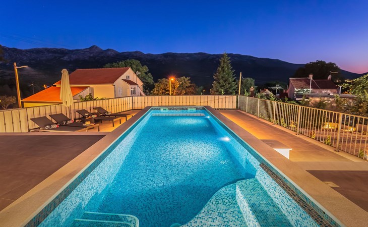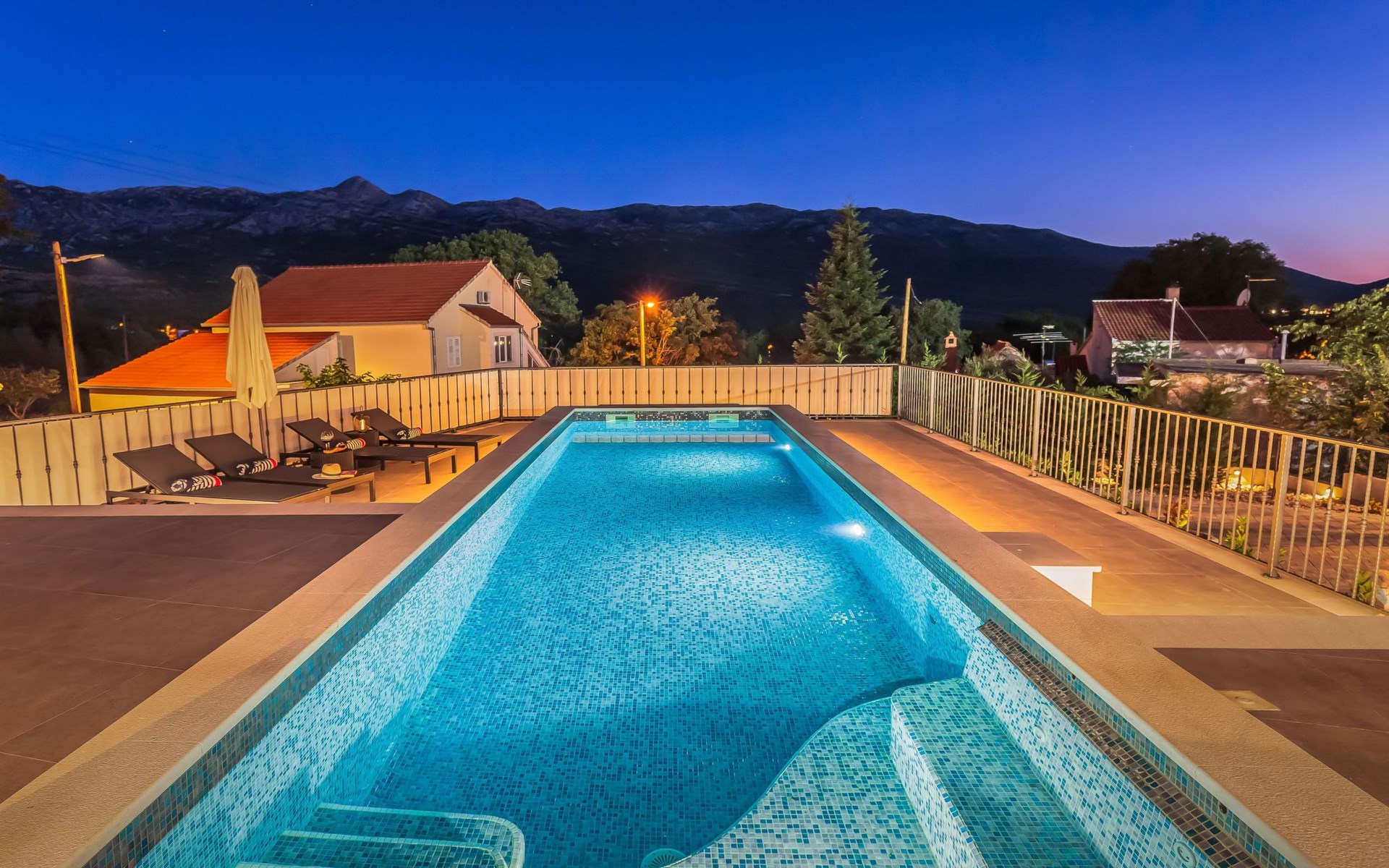 Die neu erbaute und sehr moderne Villa SALVIA ist eine luxuriöse Unterkunft auf 3500 m² in einem komplett eingezäunten Gebäude mit privatem Pool, Esszimmer und Sitzgelegenheiten im Freien, Liegestühlen am Pool, einer voll ausgestatteten Küche, 1 Wohnzimmer, 4 Schlafzimmern und 4 Badezimmern . Es gibt auch ein Spielzimmer mit Billardtisch und Tischfußball. Multifunktionaler Spielplatz im Freien mit Fußball- und Tennisplätzen sowie Basketballkörben. Die Anlage ist mit einer Sauna und einem Fitnessraum ausgestattet. Die Villa ist voll klimatisiert und mit kostenlosem WLAN-Internetzugang ausgestattet. Alles ist gut organisiert und Sie haben alles, was Sie für einen perfekten Urlaub mit Familie oder Freunden für maximal 8 + 0 Personen benötigen.