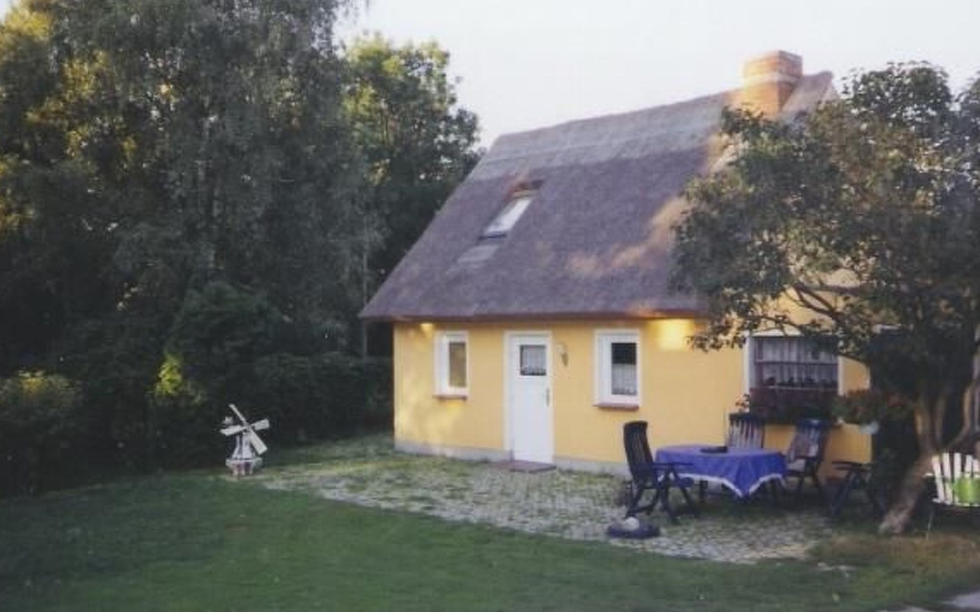 Im Außenbereich befindet sich direkt vor der Tür die Terrasse mit Gartenmöbeln. Der Parkplatz ist ebenfalls direkt vor dem Häuschen.