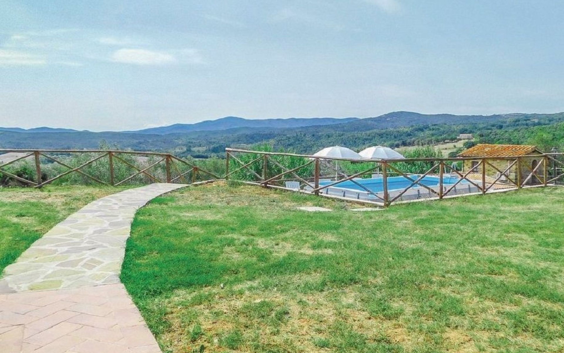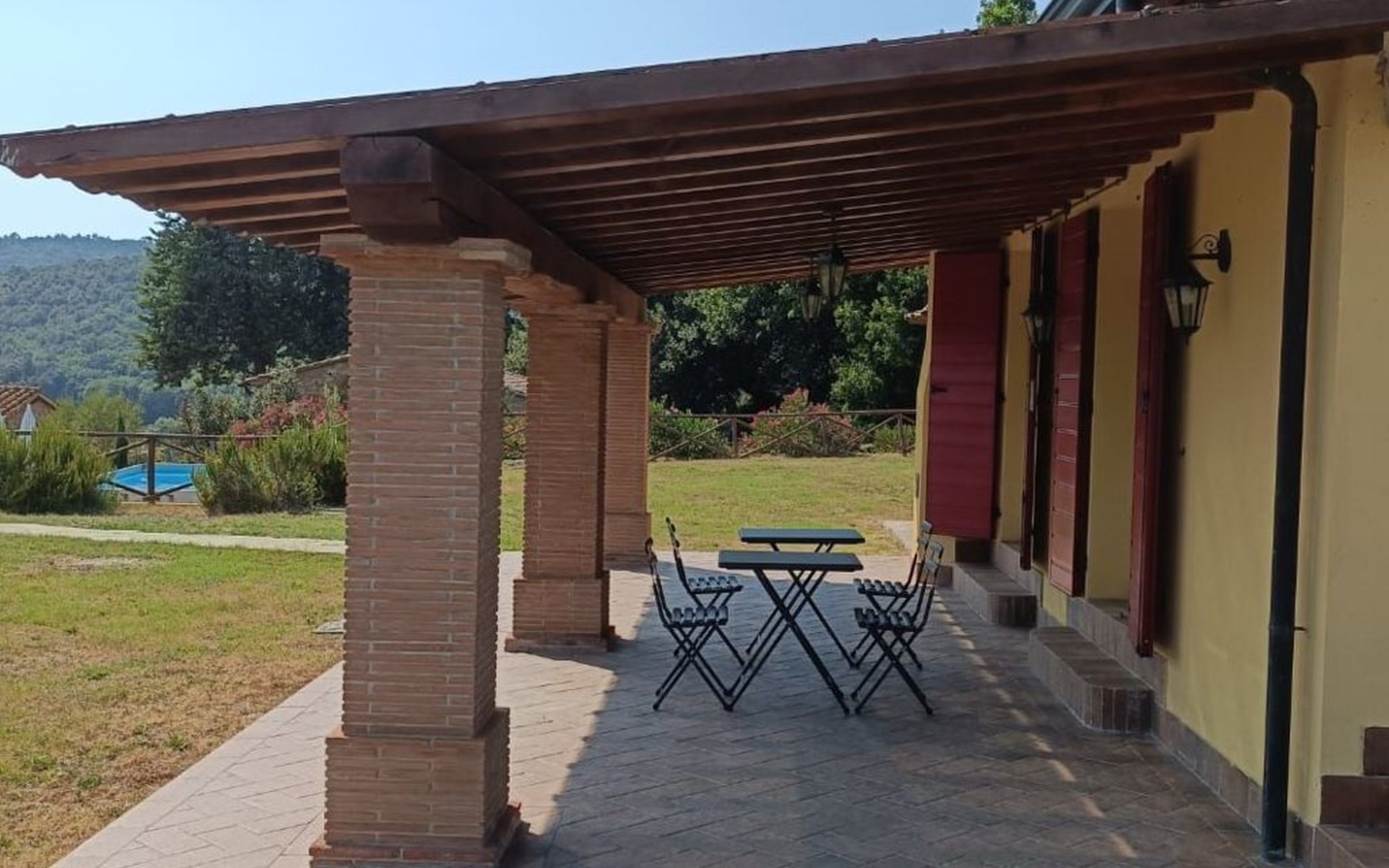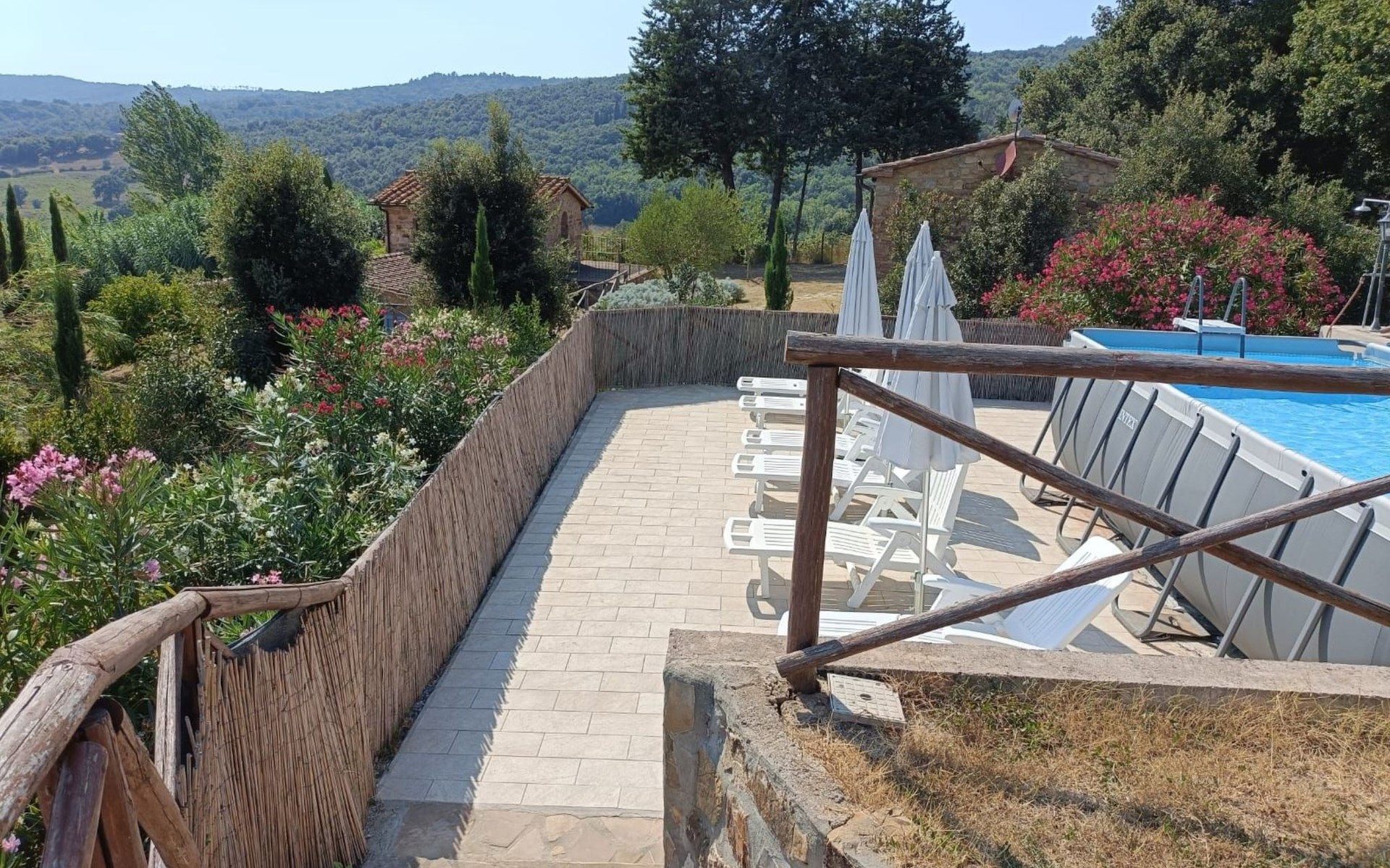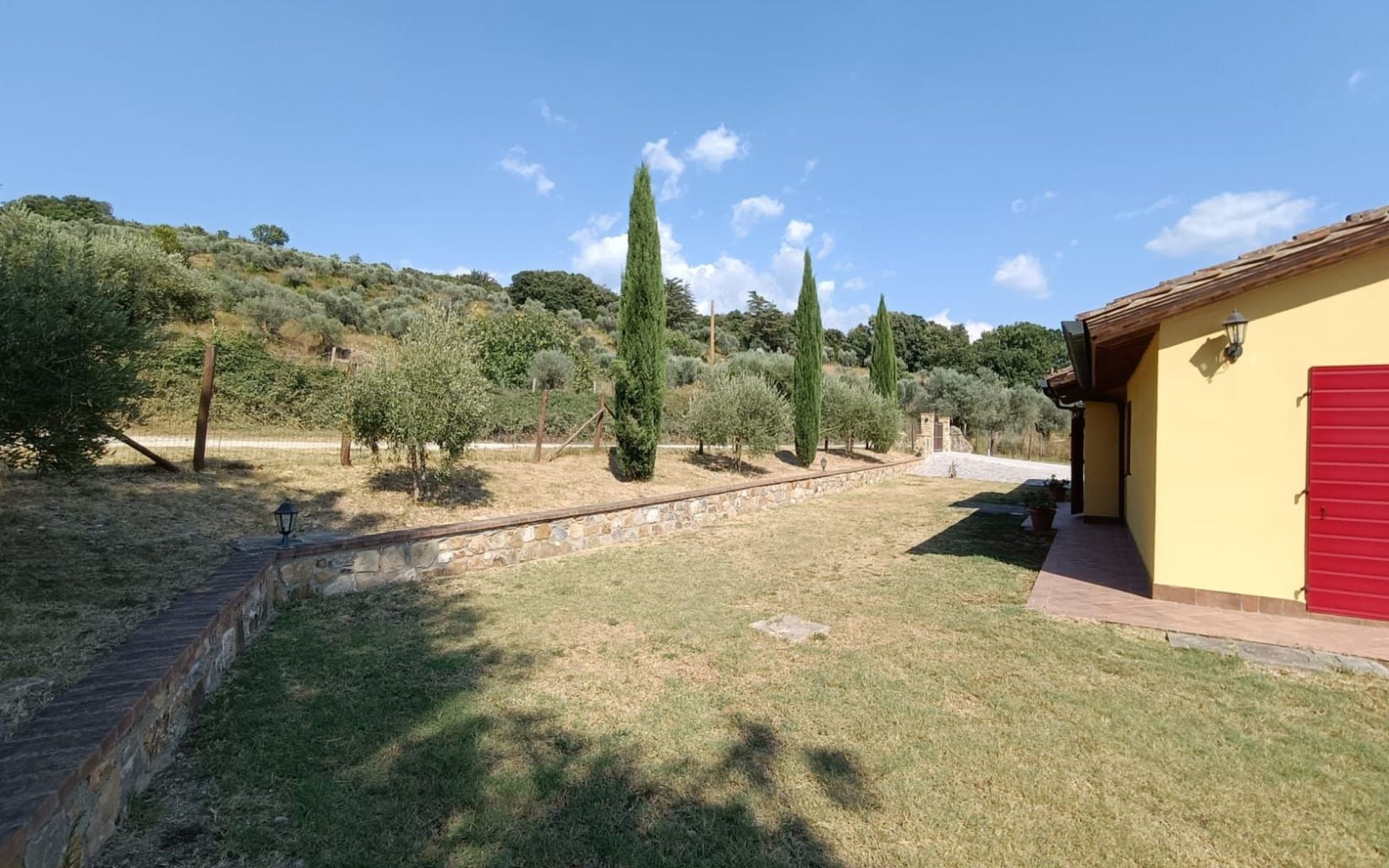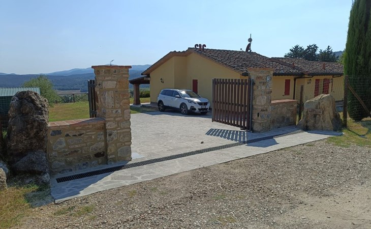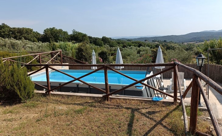 Im Außenbereich befinden sich zwei große Veranden mit Panoramablick, die mit Gartenmöbeln ausgestattet sind, ein privates Schwimmbad (5x3 - geöffnet von Juni bis September), das mit Liegestühlen und Sonnenschirmen ausgestattet ist, und ein 1.000 Quadratmeter großer Garten mit Olivenbäumen und Zypressen, der komplett eingezäunt ist und über einen Parkplatz verfügt.