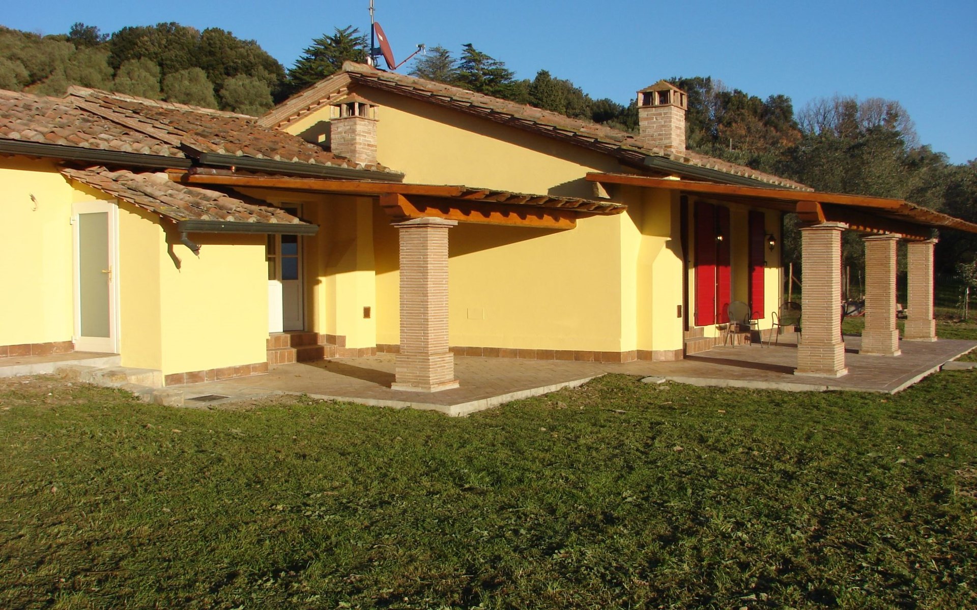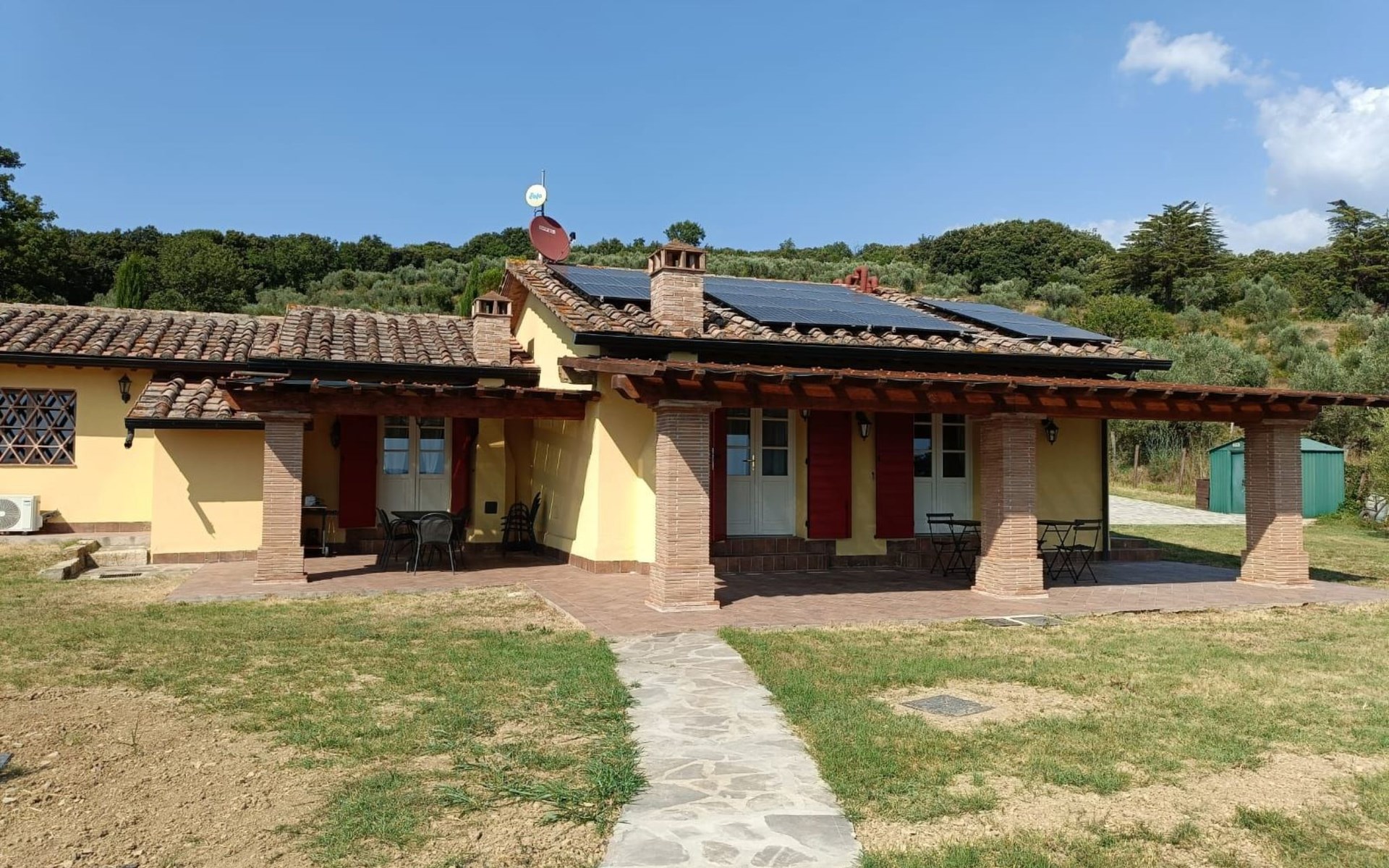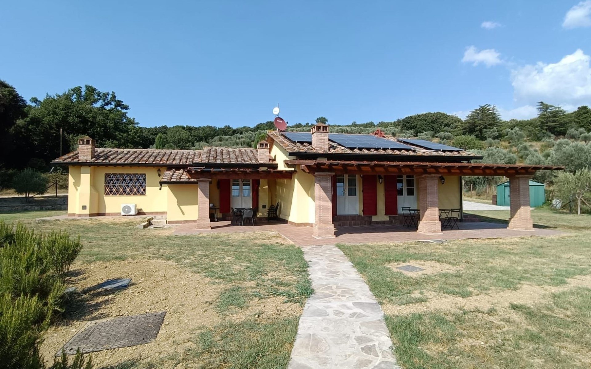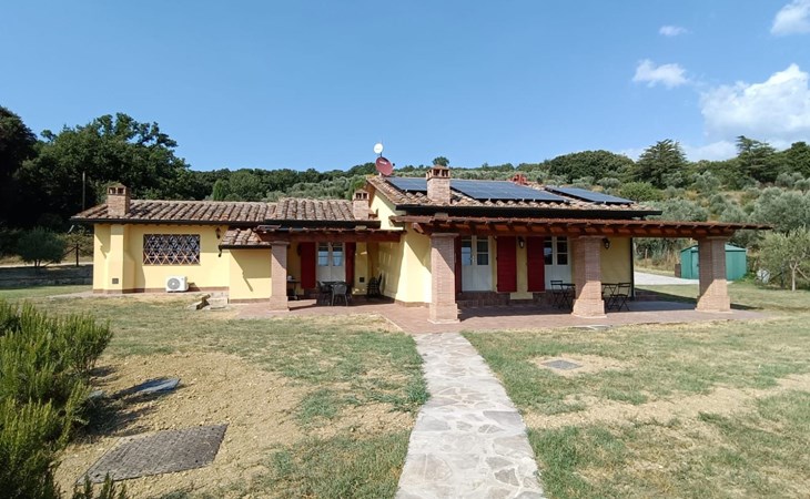 Klimaanlage in allen Zimmern und eine Fotovoltaikanlage installiert. Es ist ideal für diejenigen, die einen entspannten Urlaub im Herzen der Toskana verbringen möchten. Das Haus liegt nur 1600 m vom Dorf entfernt, in einem privaten Park von ca. 1.000 qm mit Olivenbäumen und Zypressen, komplett eingezäunt und mit einem herrlichen Panoramablick auf die grünen Hügel des Val di Cornia, in einer ruhigen, aber nicht isolierten Lage. Die Strände von Marina di Donoratico sind nur 22 km entfernt.