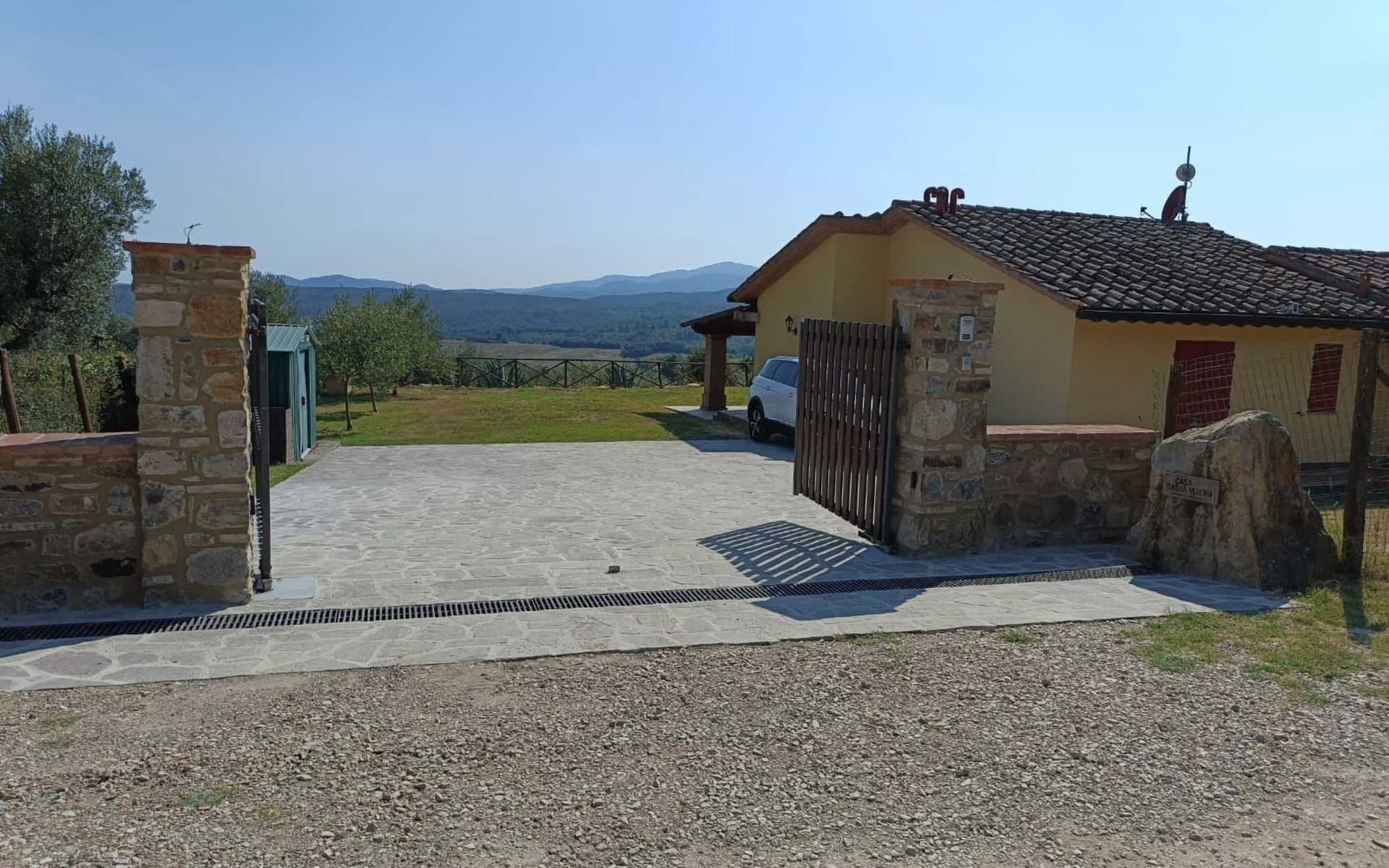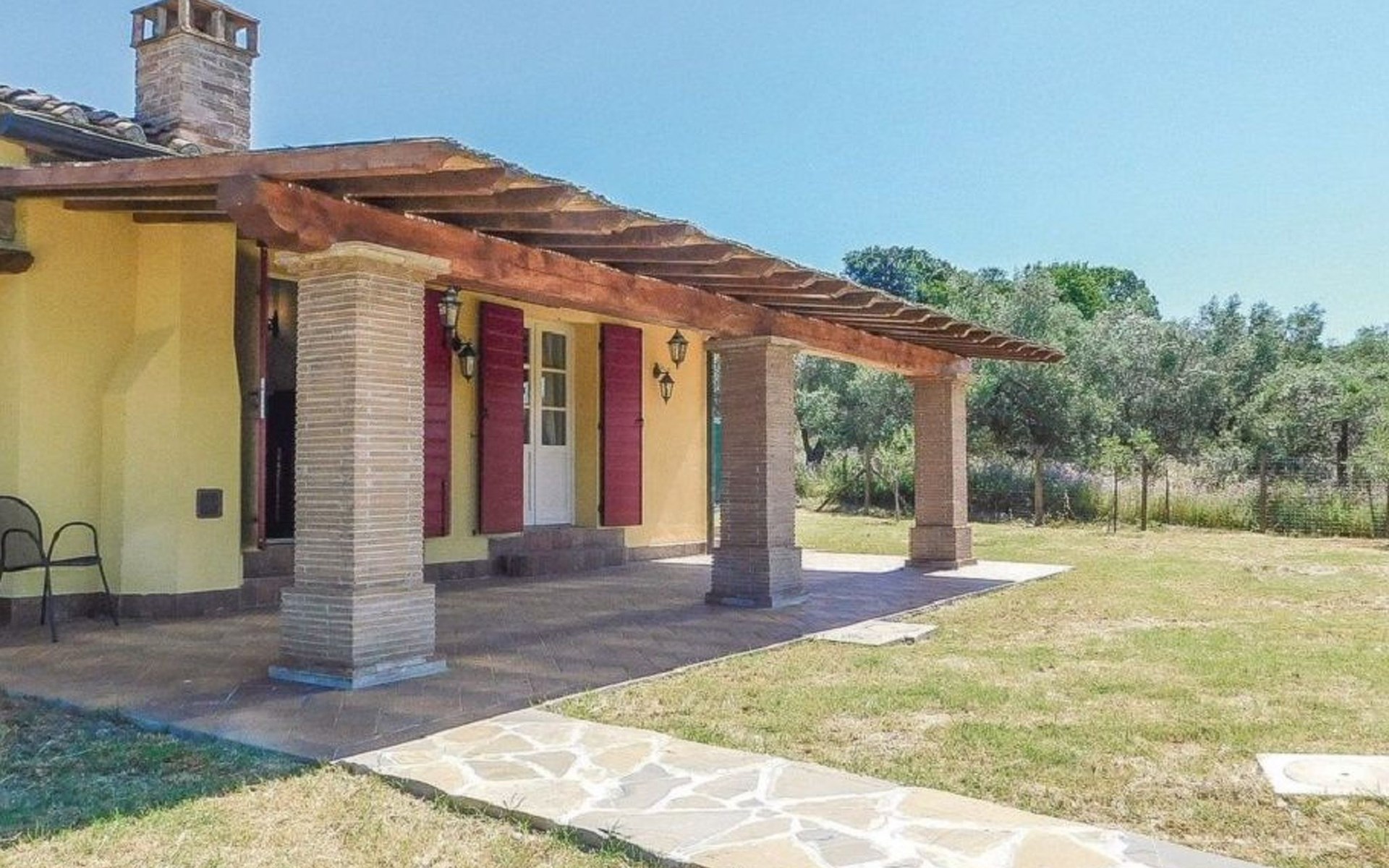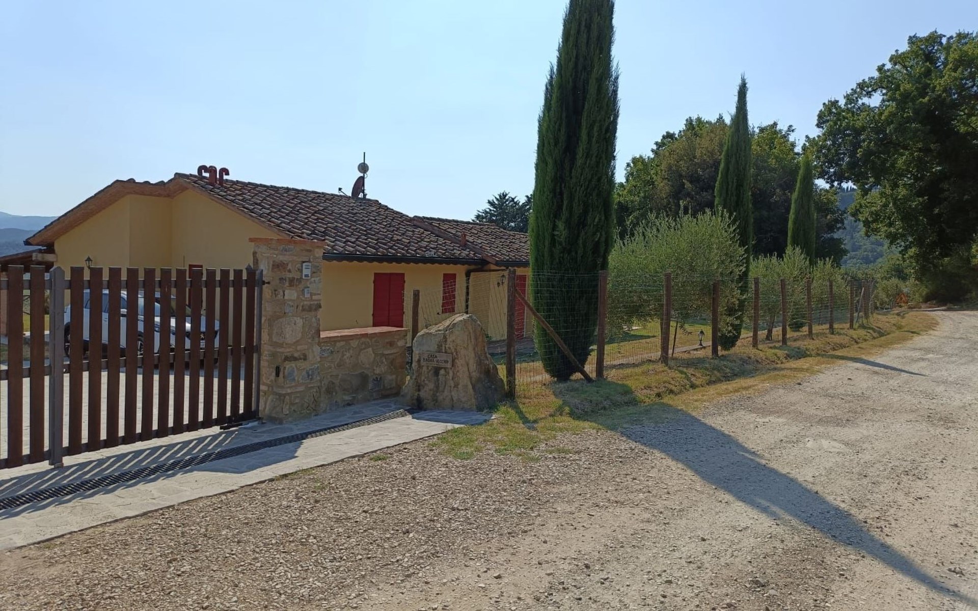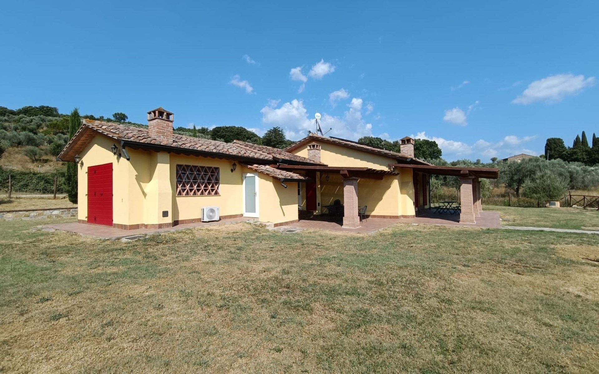 Klimaanlage in allen Zimmern und eine Fotovoltaikanlage installiert. Es ist ideal für diejenigen, die einen entspannten Urlaub im Herzen der Toskana verbringen möchten. Das Haus liegt nur 1600 m vom Dorf entfernt, in einem privaten Park von ca. 1.000 qm mit Olivenbäumen und Zypressen, komplett eingezäunt und mit einem herrlichen Panoramablick auf die grünen Hügel des Val di Cornia, in einer ruhigen, aber nicht isolierten Lage. Die Strände von Marina di Donoratico sind nur 22 km entfernt.