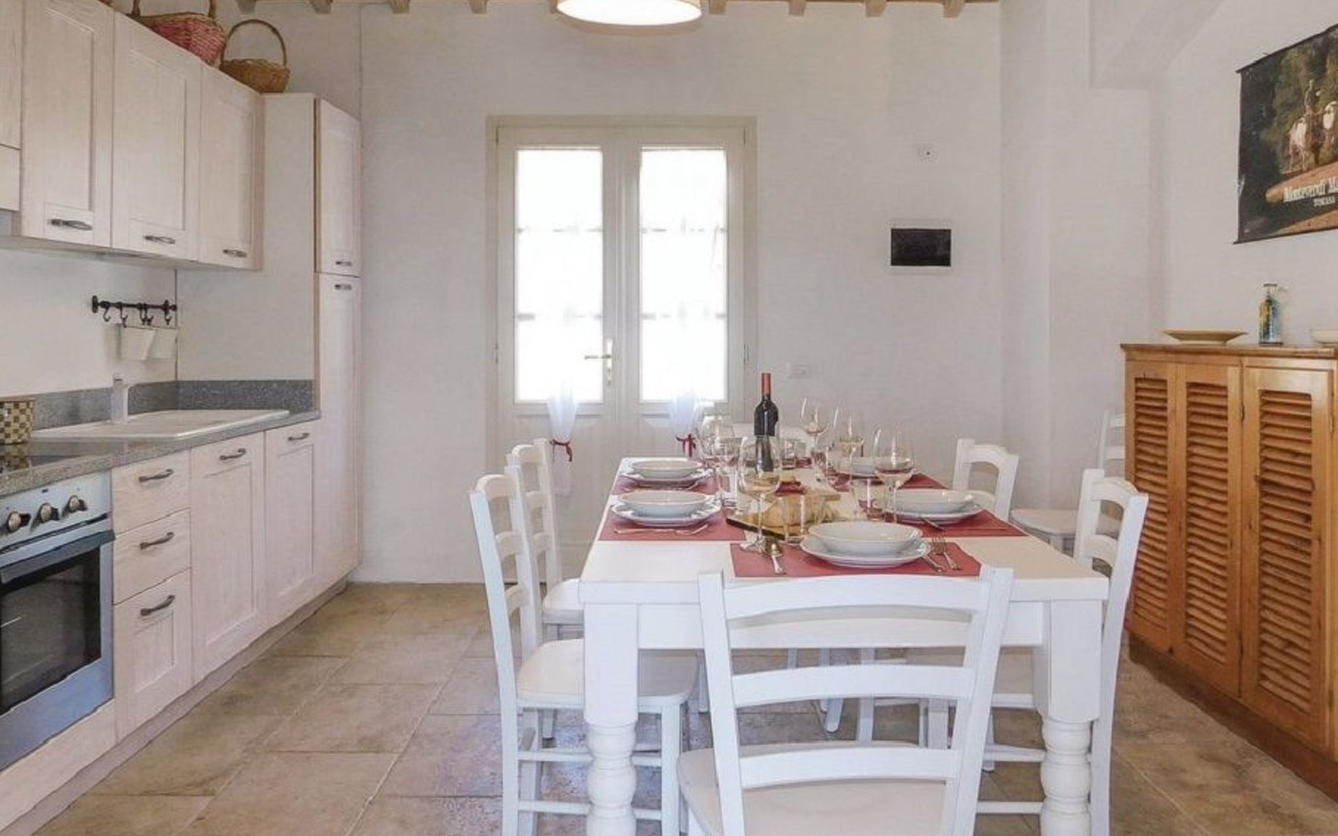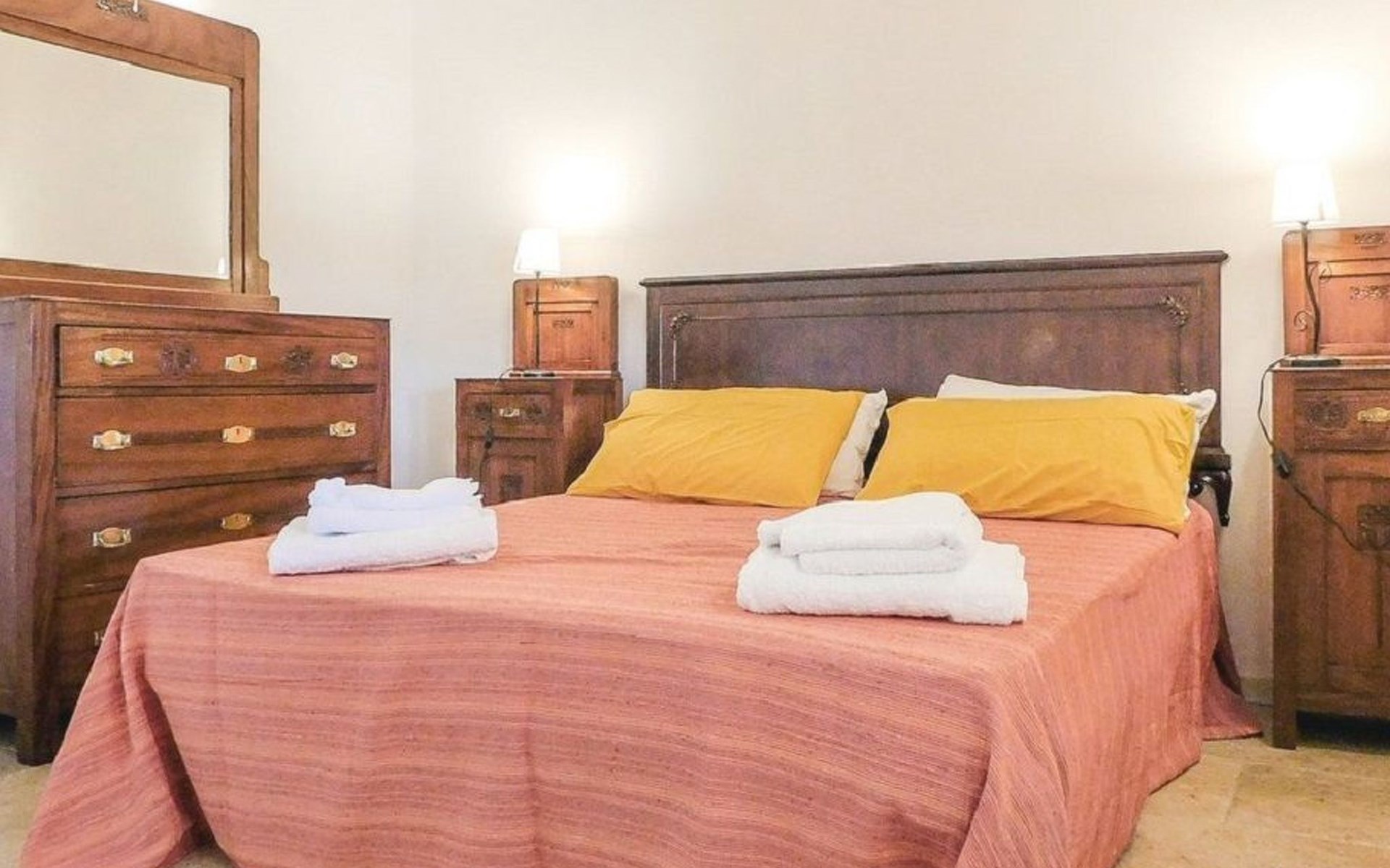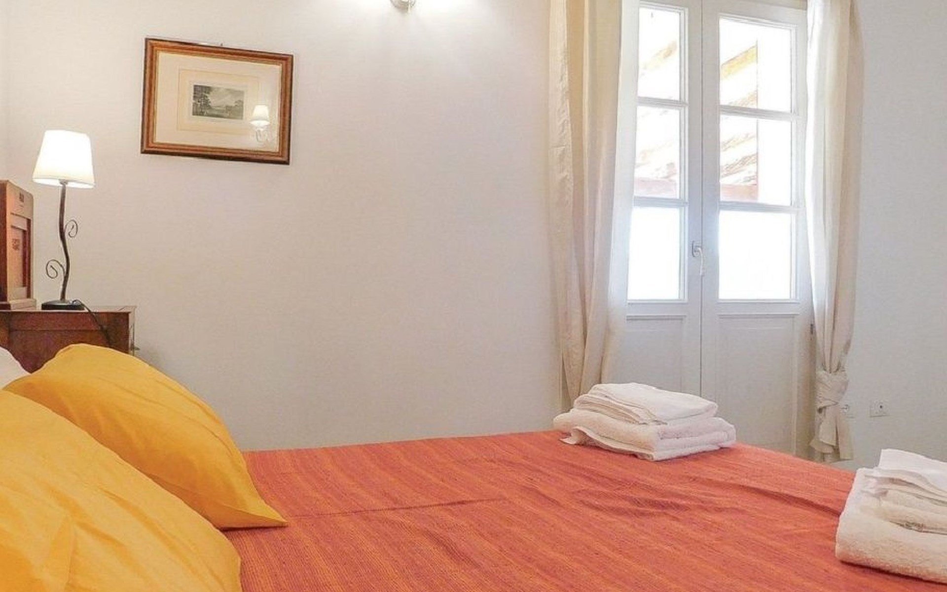 Die Unterkunft Das Haus besteht aus zwei Schlafzimmern mit Doppelbett, eines davon mit einem zusätzlichen Einzelbett, und einem Schlafzimmer mit zwei Einzelbetten, alle fein eingerichtet, drei Bäder mit Dusche, ein Wohnzimmer mit Sofa und Fernseher, eine Küche mit Elektroherd, Backofen, Kühlschrank mit Gefrierfach, Geschirrspüler, Mikrowelle, Wasserkocher, Toaster und Mokkakaffeemaschine ausgestattet. Wi-Fi-Internet. Das Innere ist auch mit Antiquitäten eingerichtet. Waschküche mit Waschmaschine. Für den Sommer 2024 haben wir in allen Zimmern eine Klimaanlage installiert